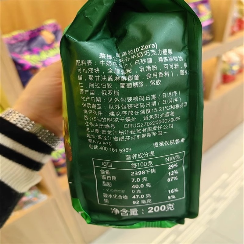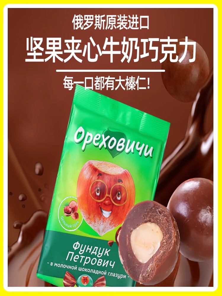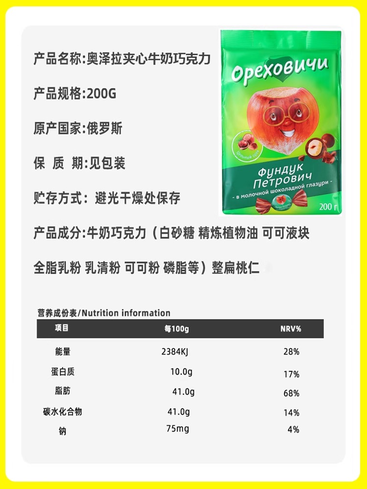 俄罗斯进口奥泽拉榛仁夹心牛奶巧克力糖果零食200g/袋