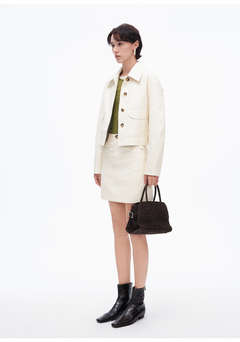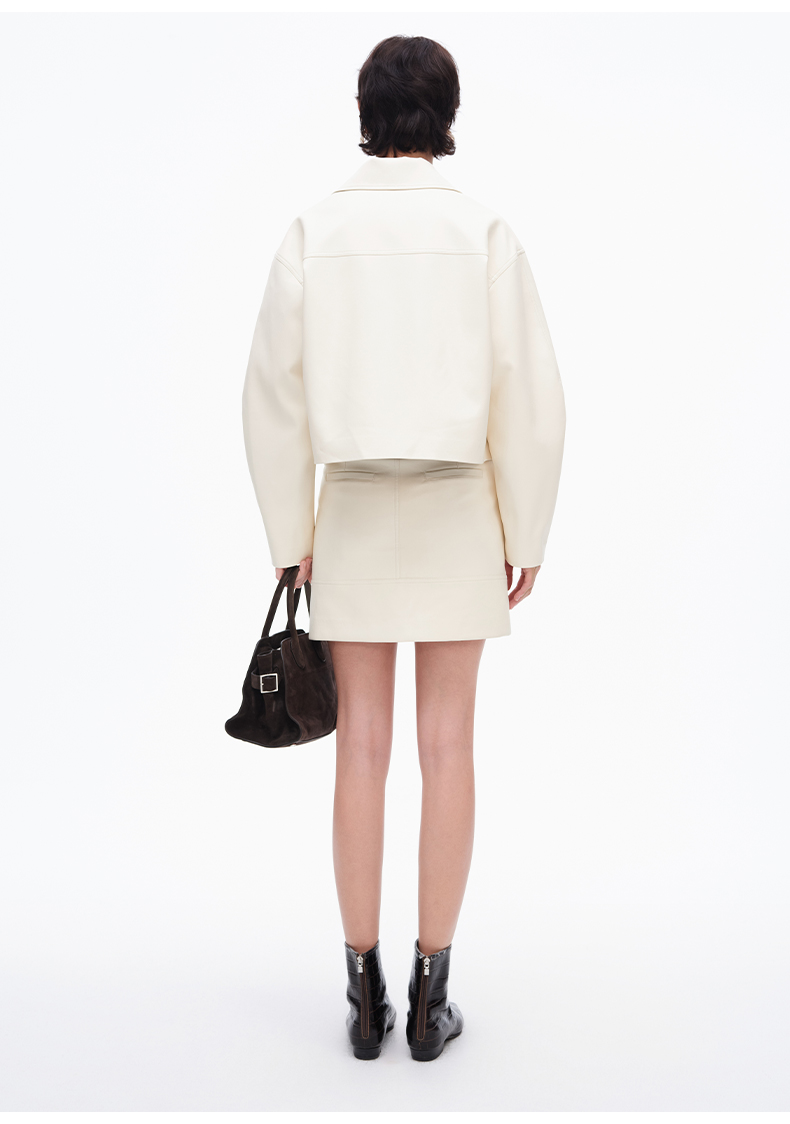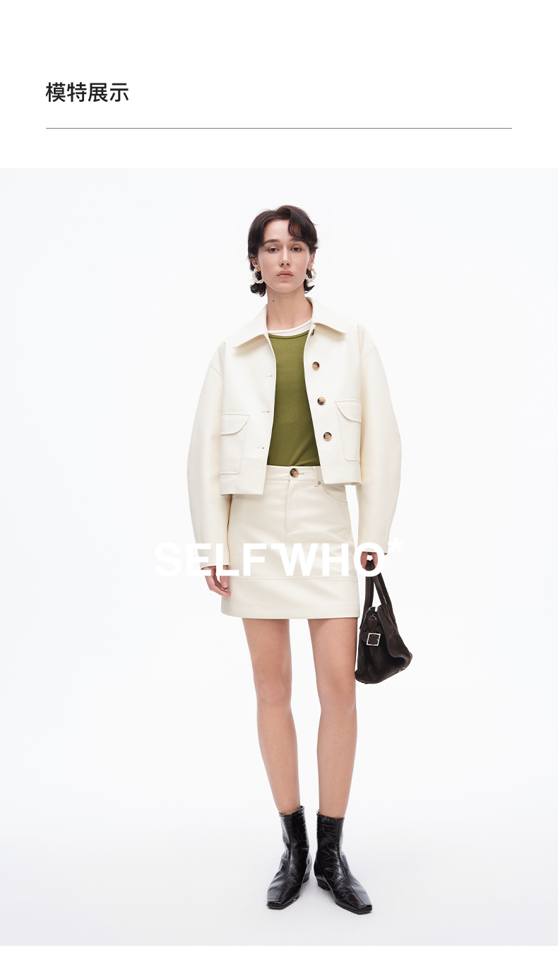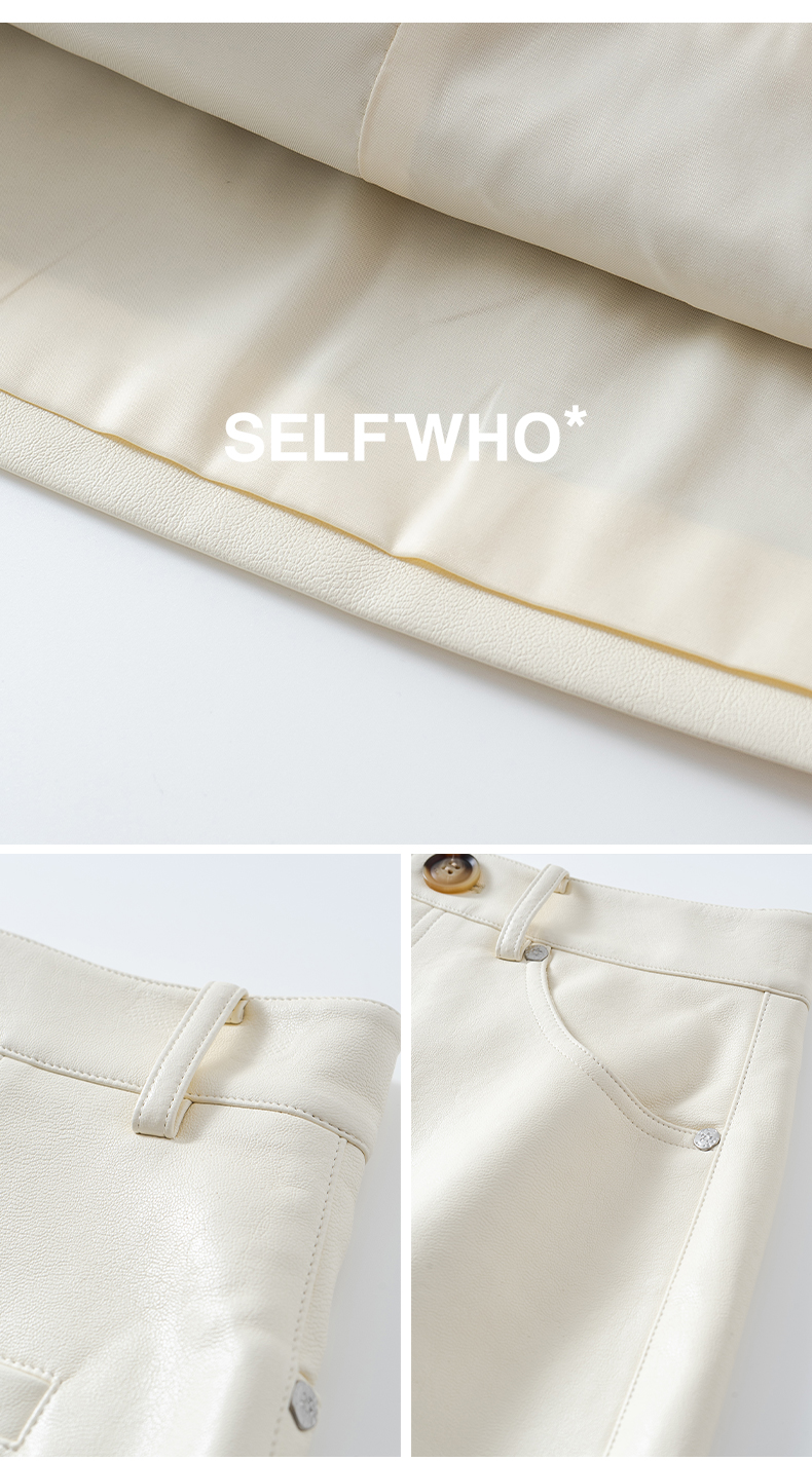 SELFWHO复古经典米白色pu皮短裙女2025春季新款高腰包臀a字半身裙