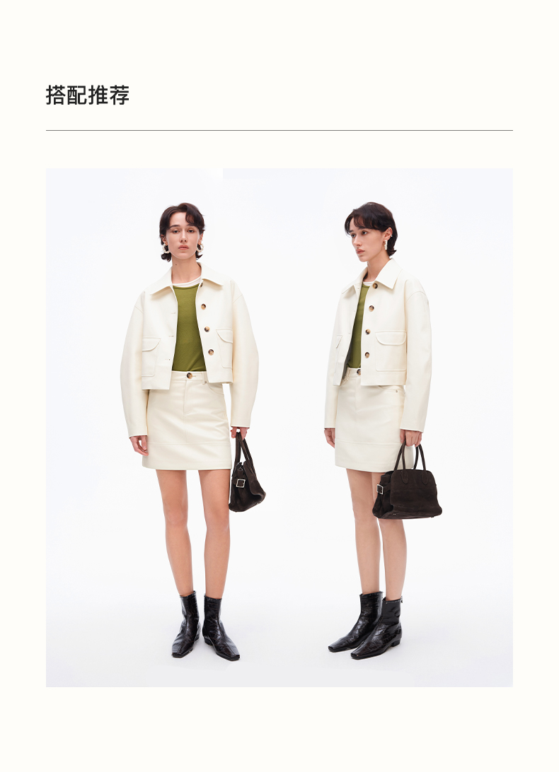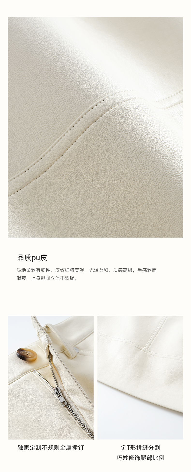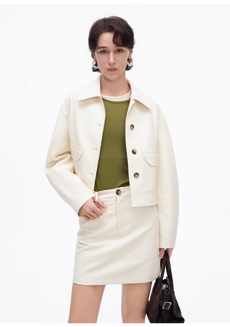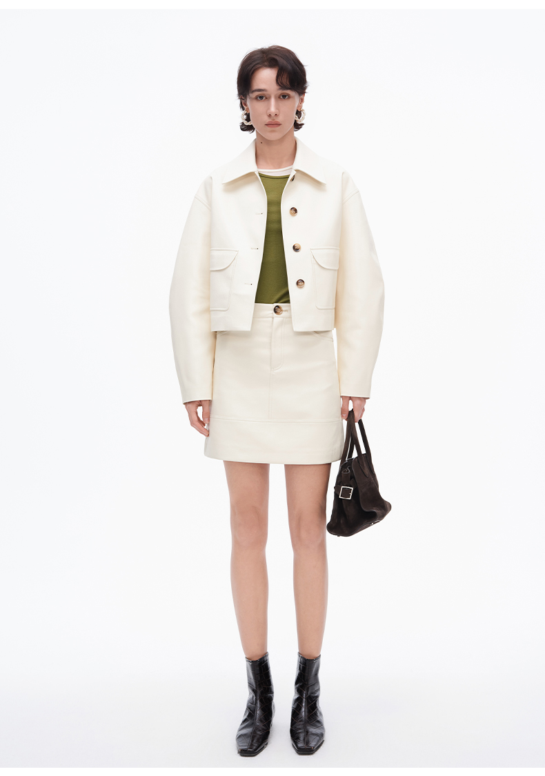 SELFWHO复古经典米白色pu皮短裙女2025春季新款高腰包臀a字半身裙