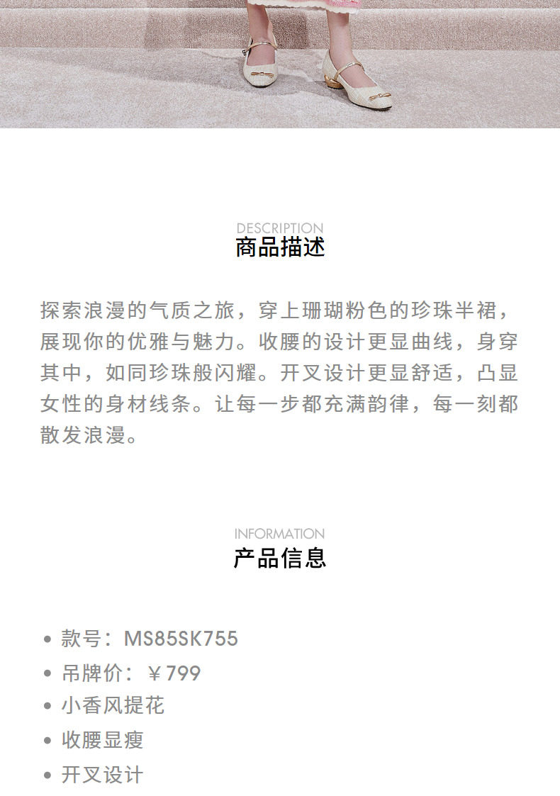 天虹发货【商场同款】MAXRIENY浪漫复古感针织半裙修身收腰鱼尾长裙(货号:MS85SK755)