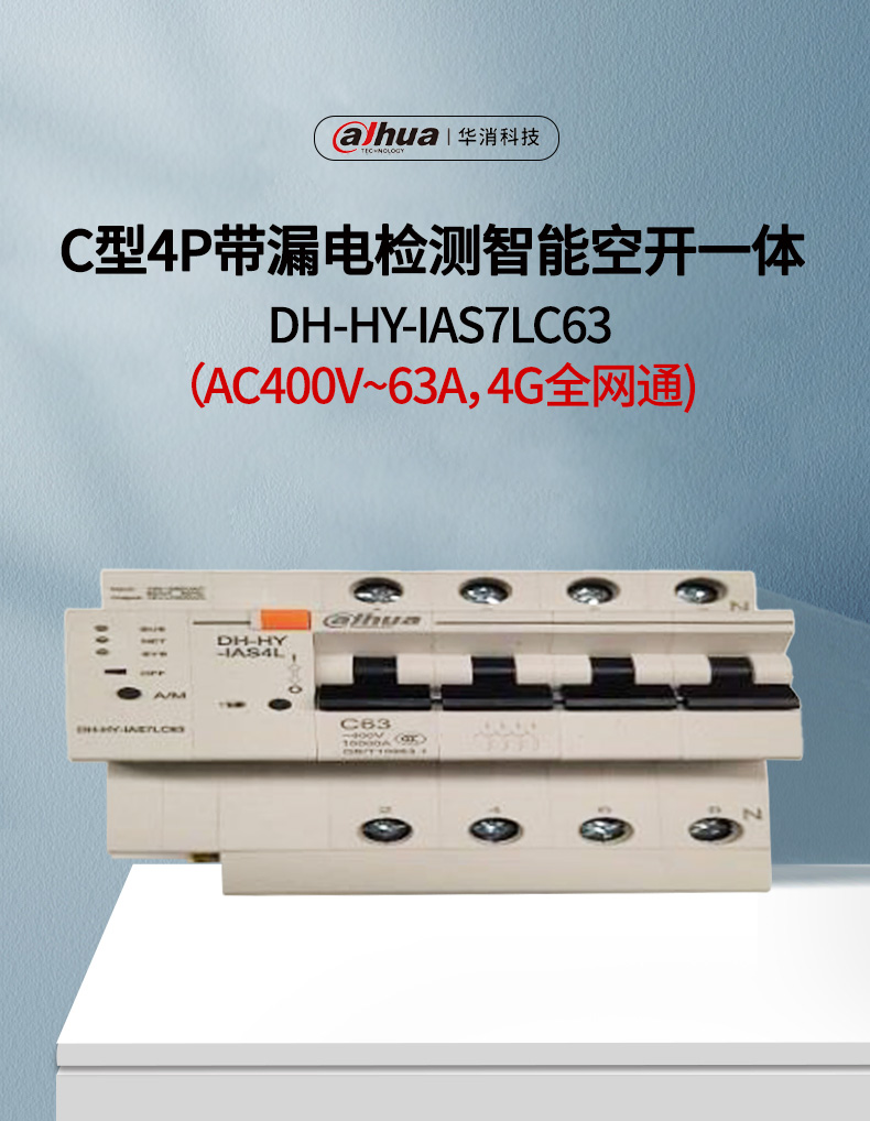 C型4P带漏电检测智能空开一体机DH-HY-IAS7LC63(AC400V~63A,4G全网通)