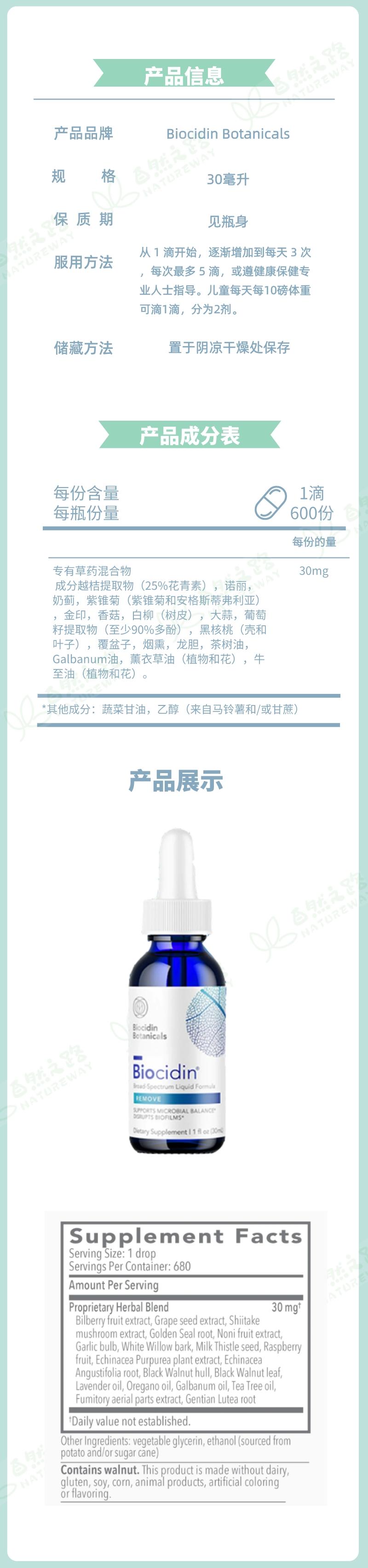 美国Bio-Botanical Biocidin杀菌滴剂 SIBO SIFO