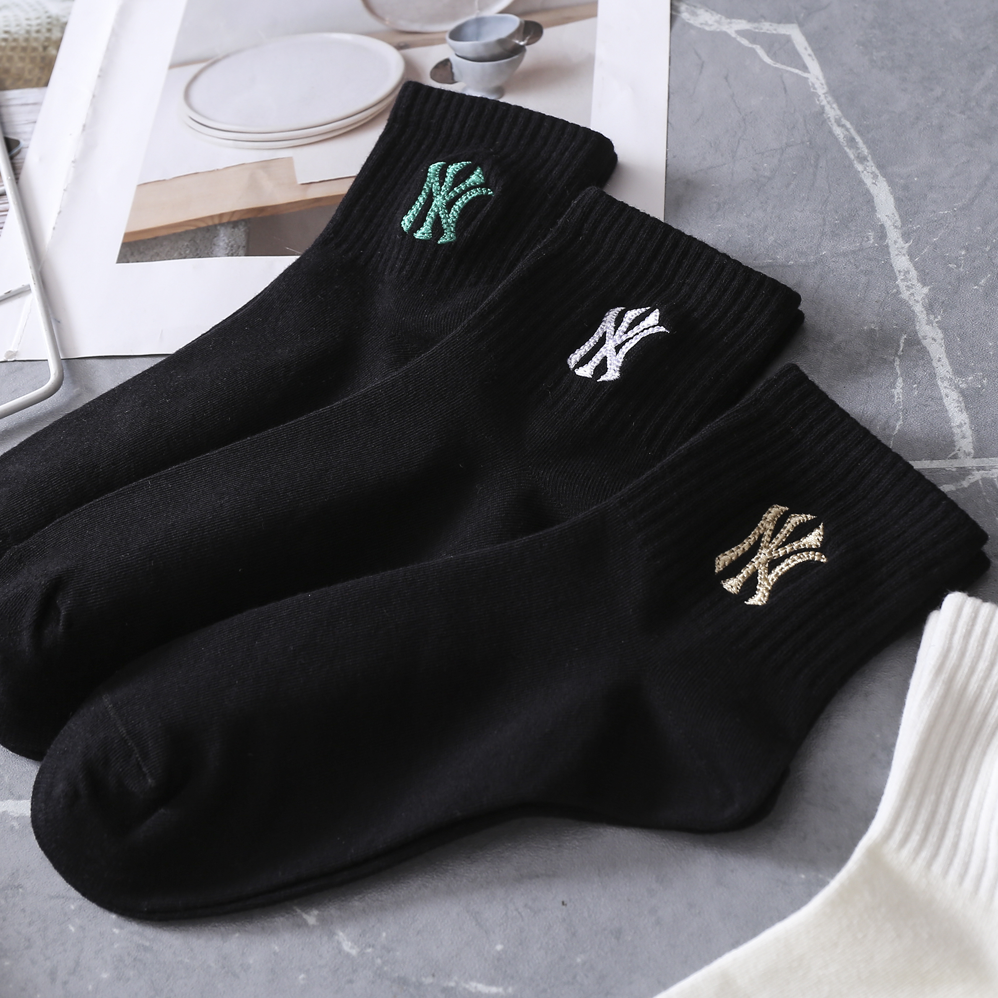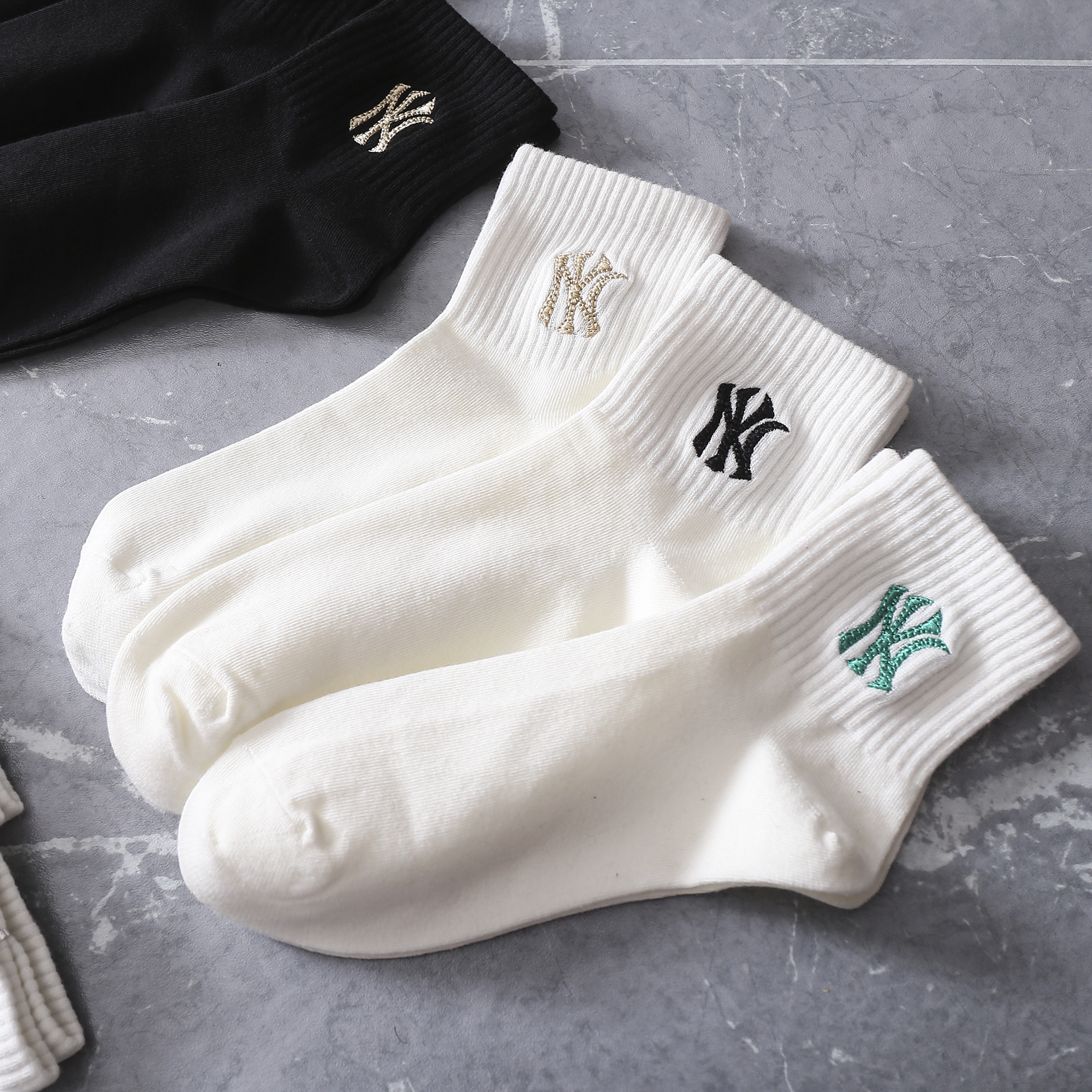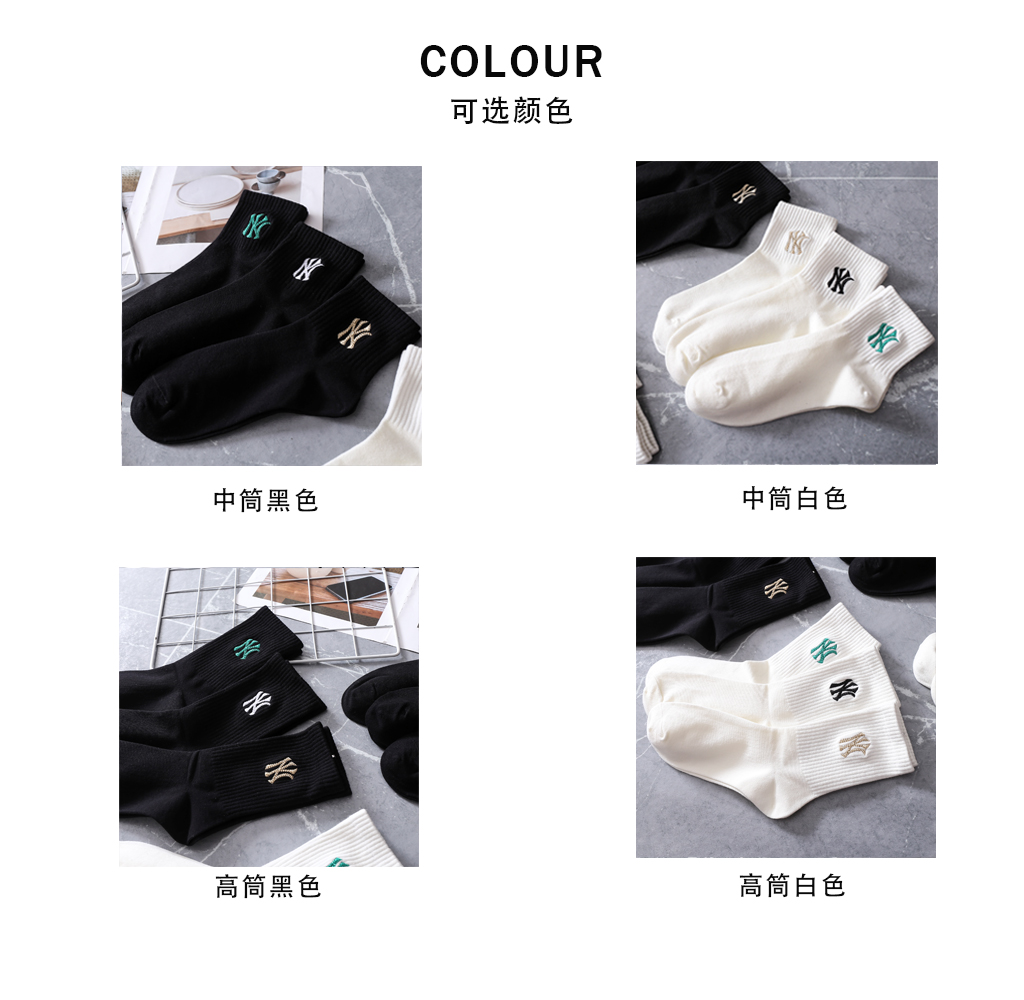 【三双装】MLB纯色袜子 黑白两色 舒适透气 均码【四季可穿】