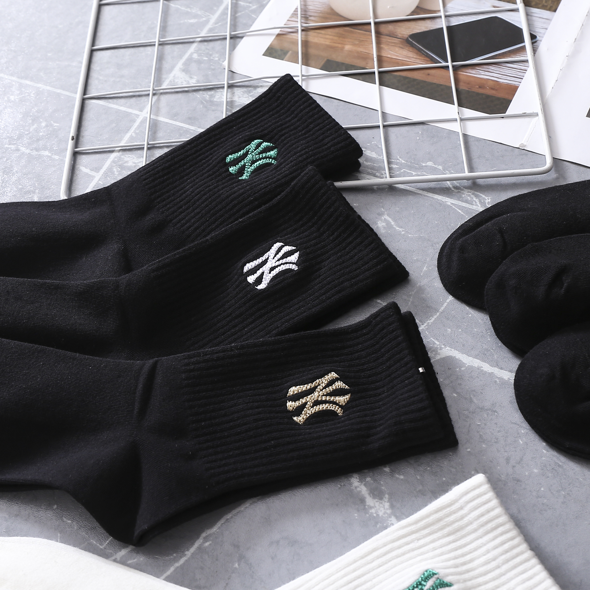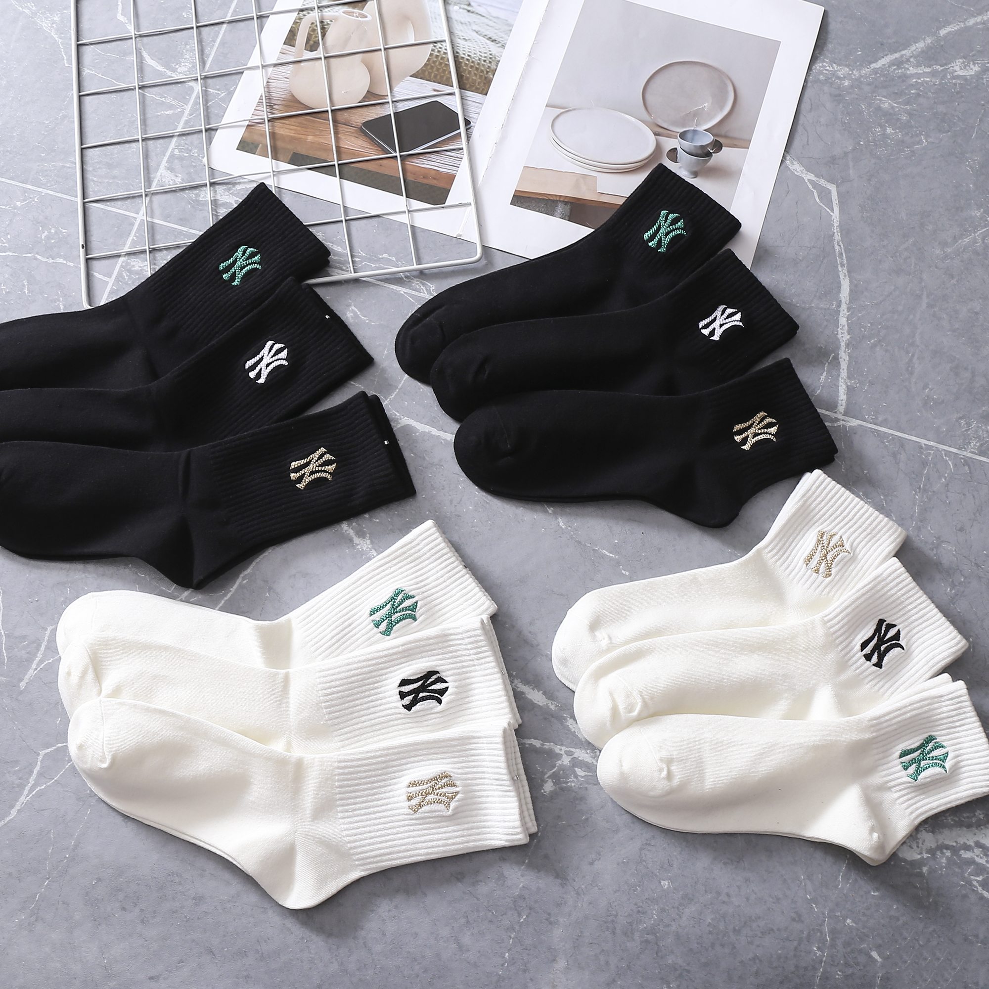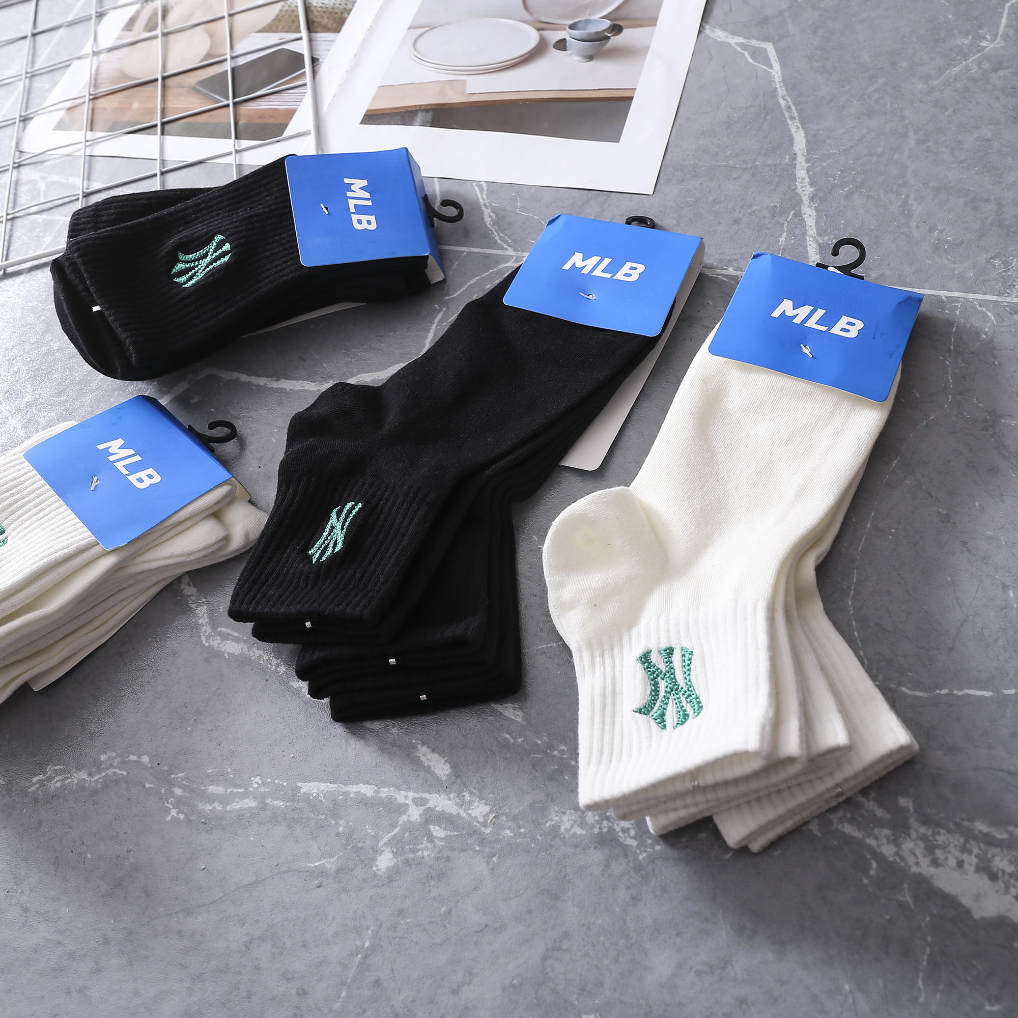 【三双装】MLB纯色袜子 黑白两色 舒适透气 均码【四季可穿】