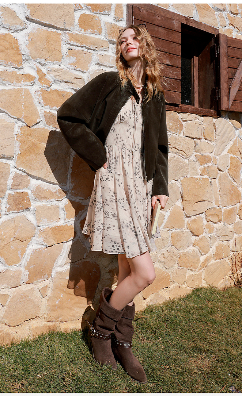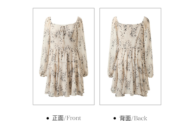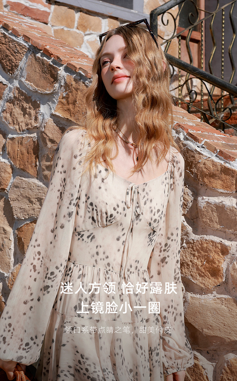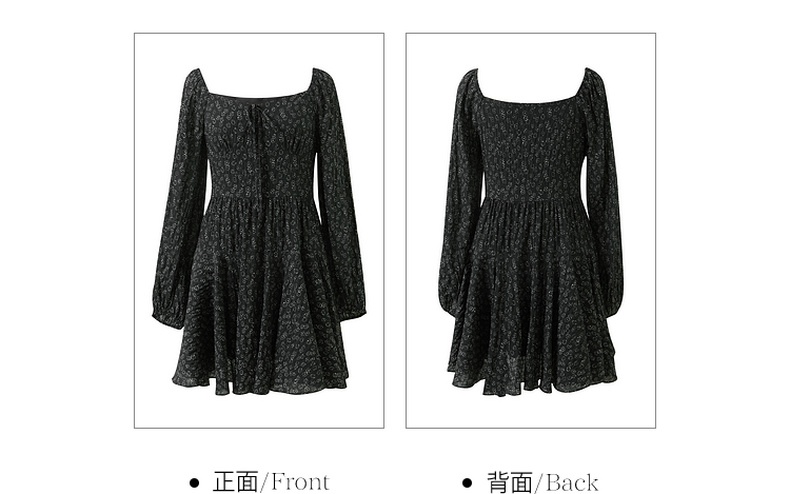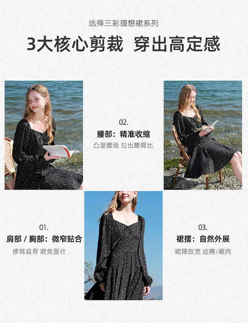 三彩2026春季新款方领收腰碎花裙法式连衣裙A字裙短裙气质浪漫M