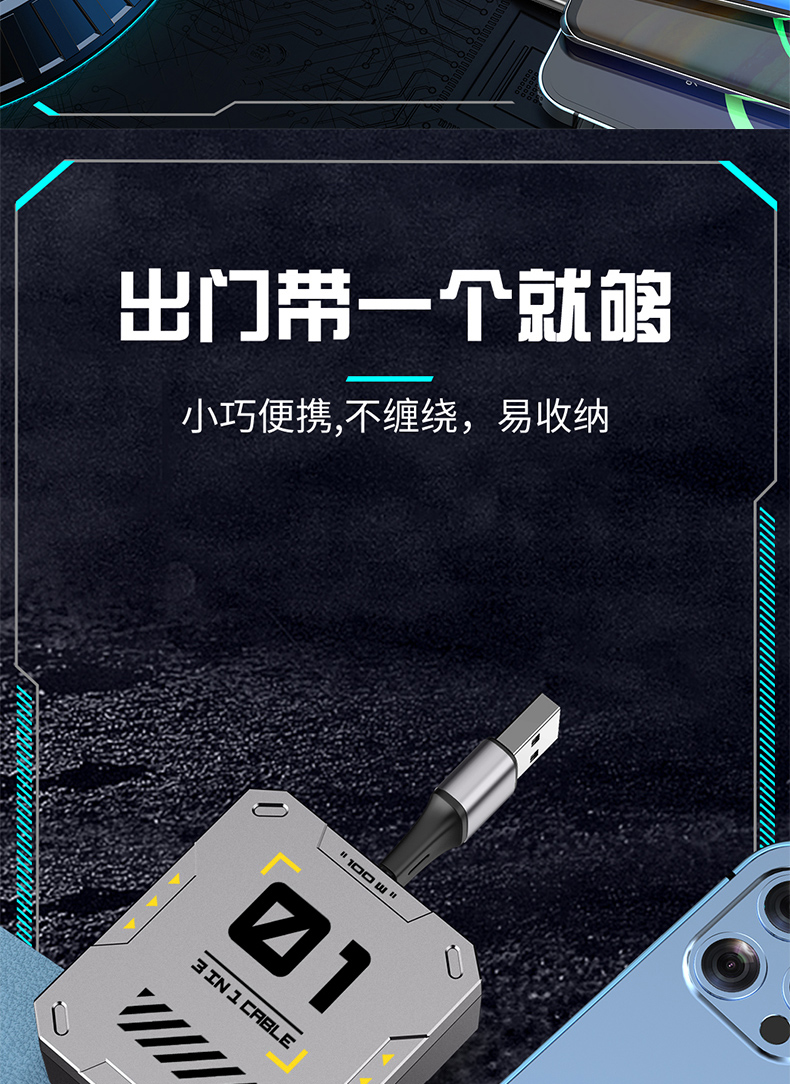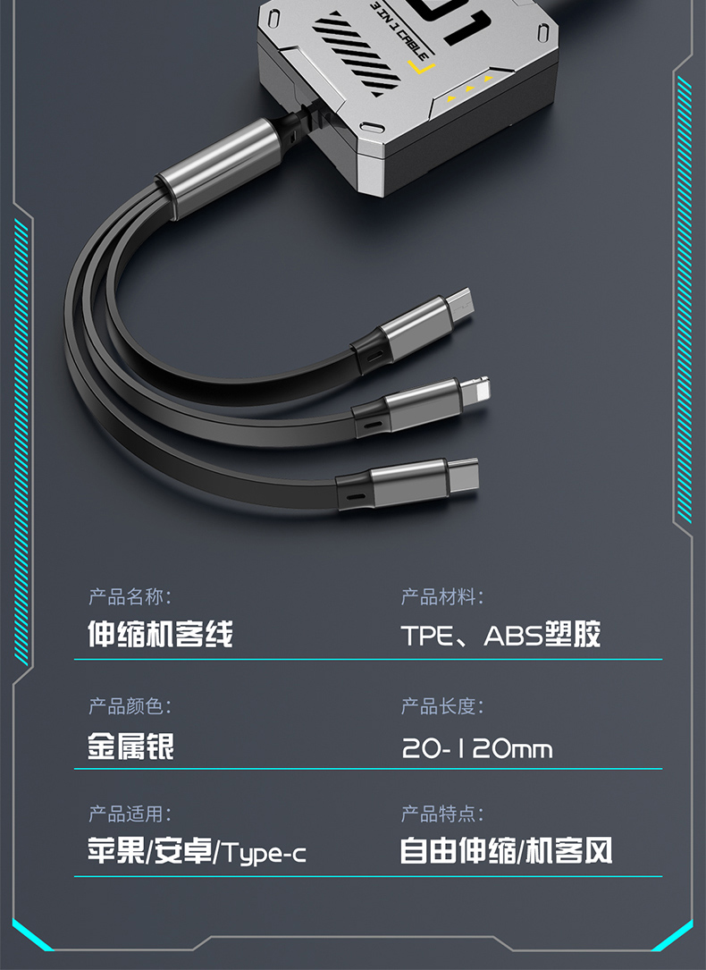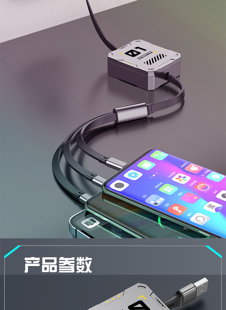 错山OLYMMONS机甲款三合一超级快充数据线Z-03