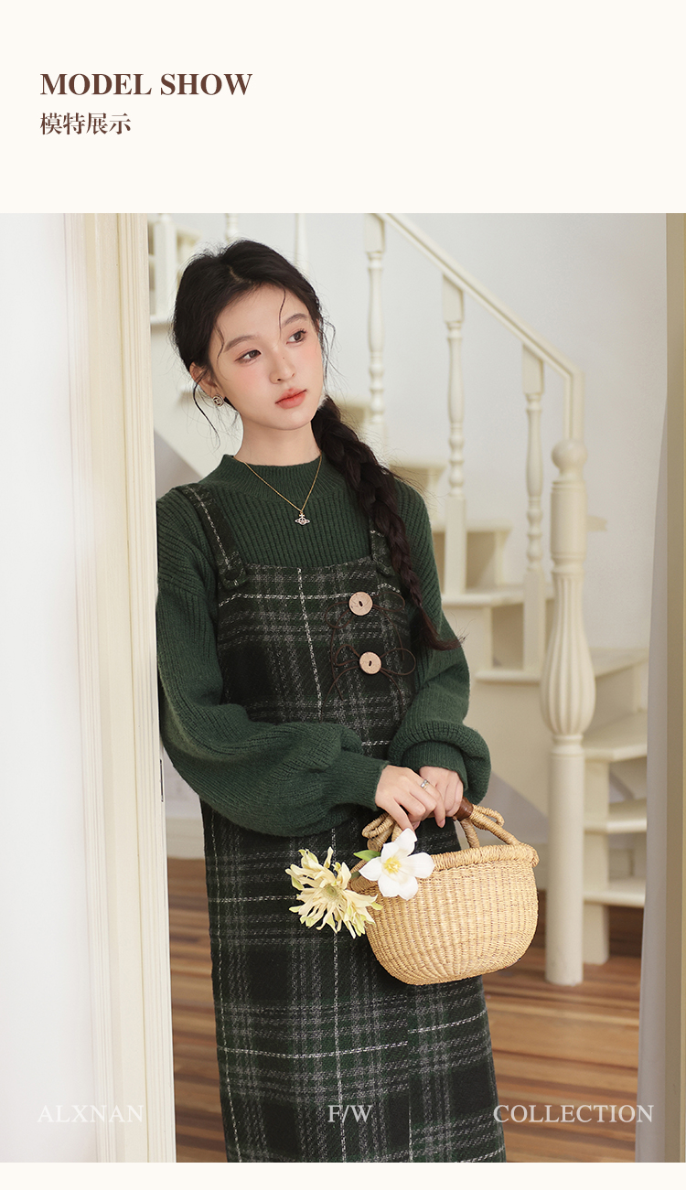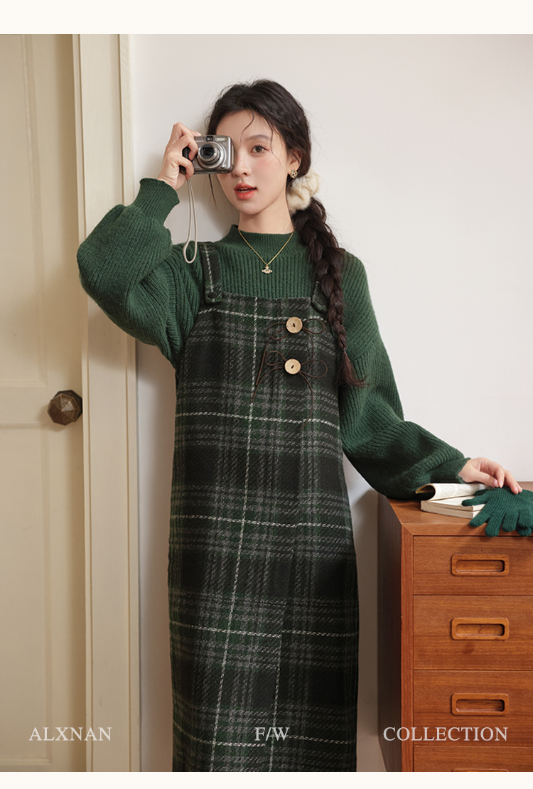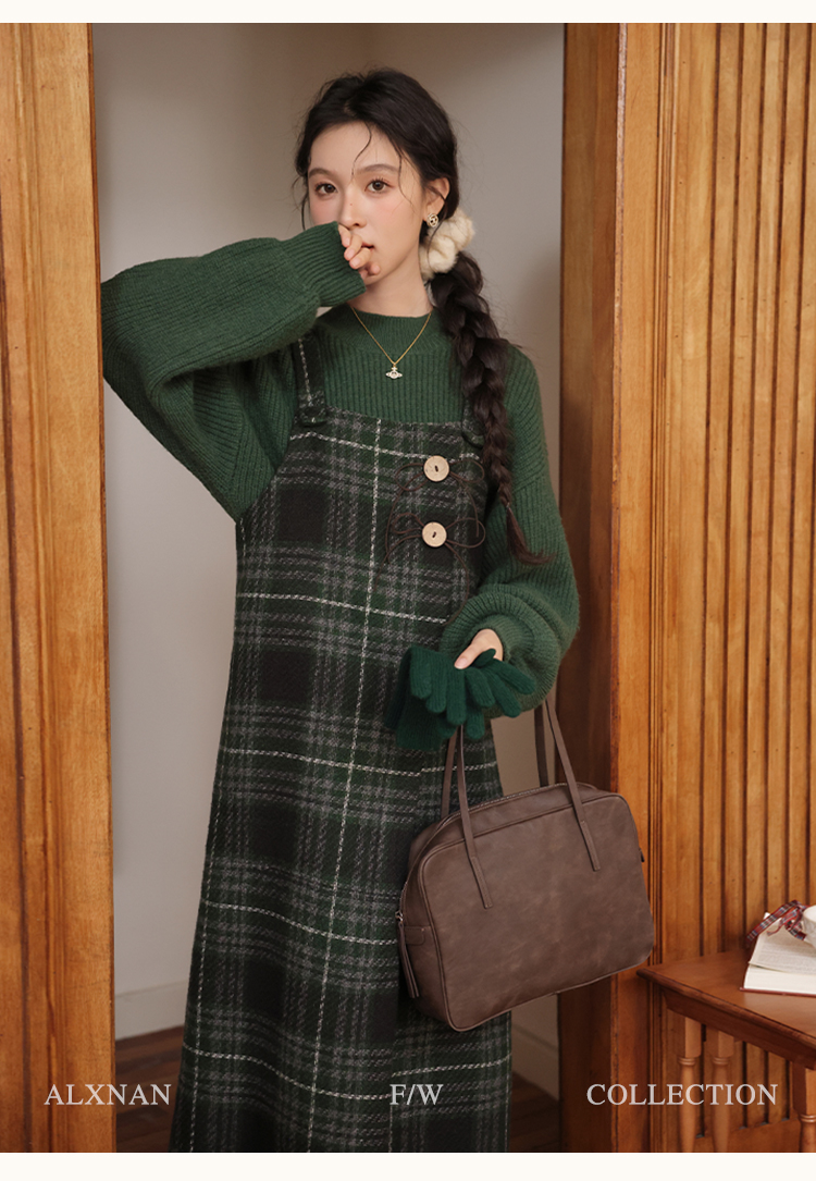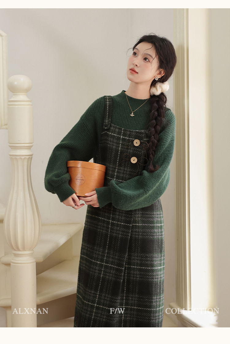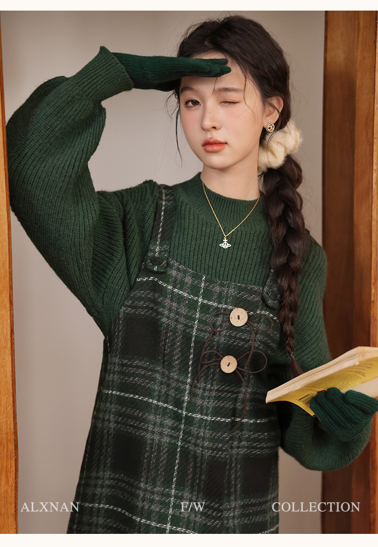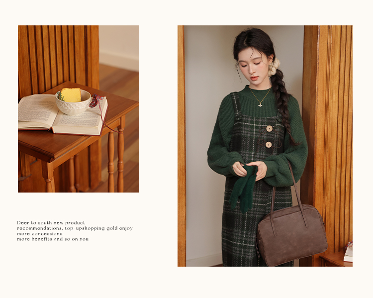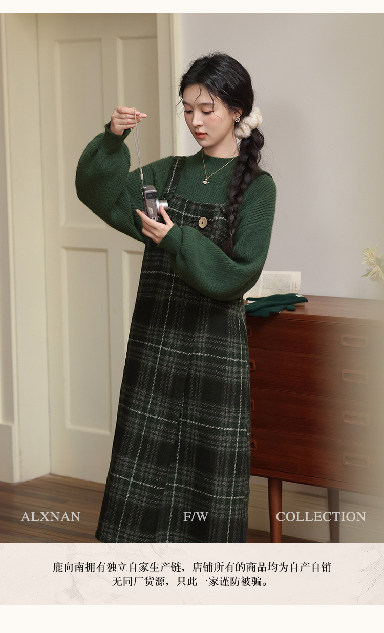 鹿向南「巴黎晨曦」设计感复古气质红色假两件斗篷针织毛衣女秋冬