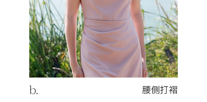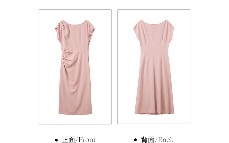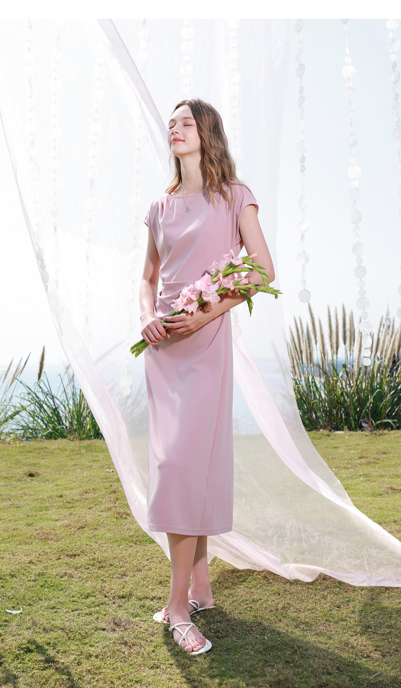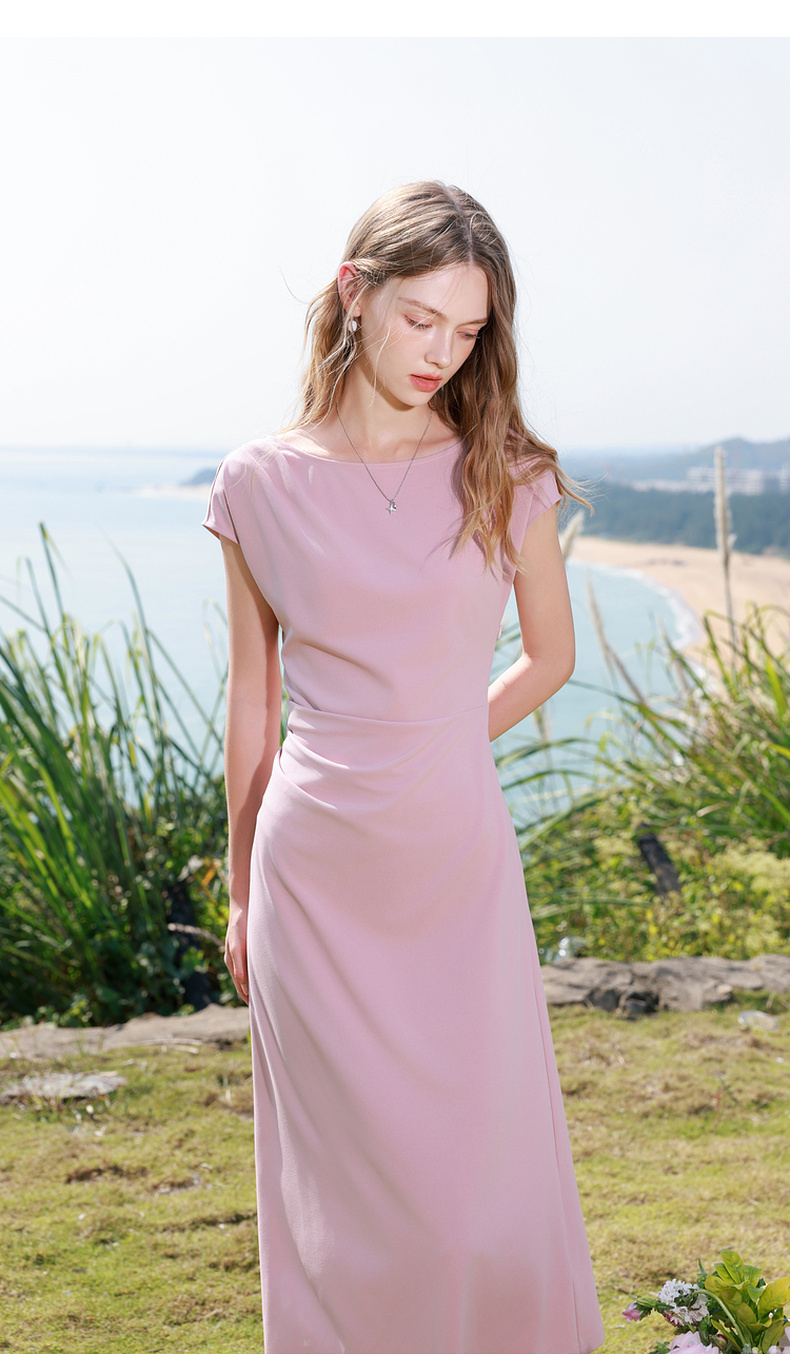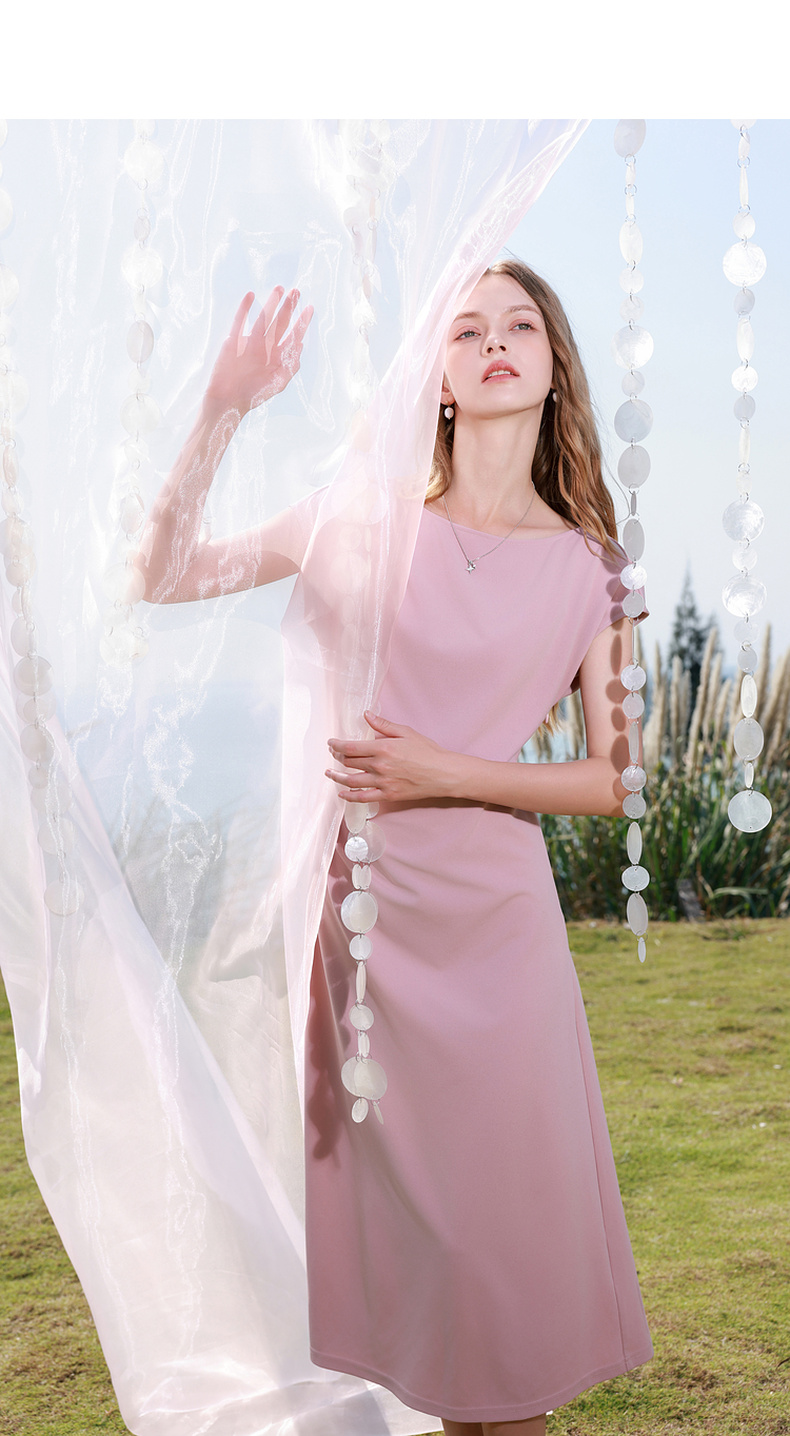 三彩2026春季新款优雅连衣裙一字领收腰A字裙中长轻礼服M