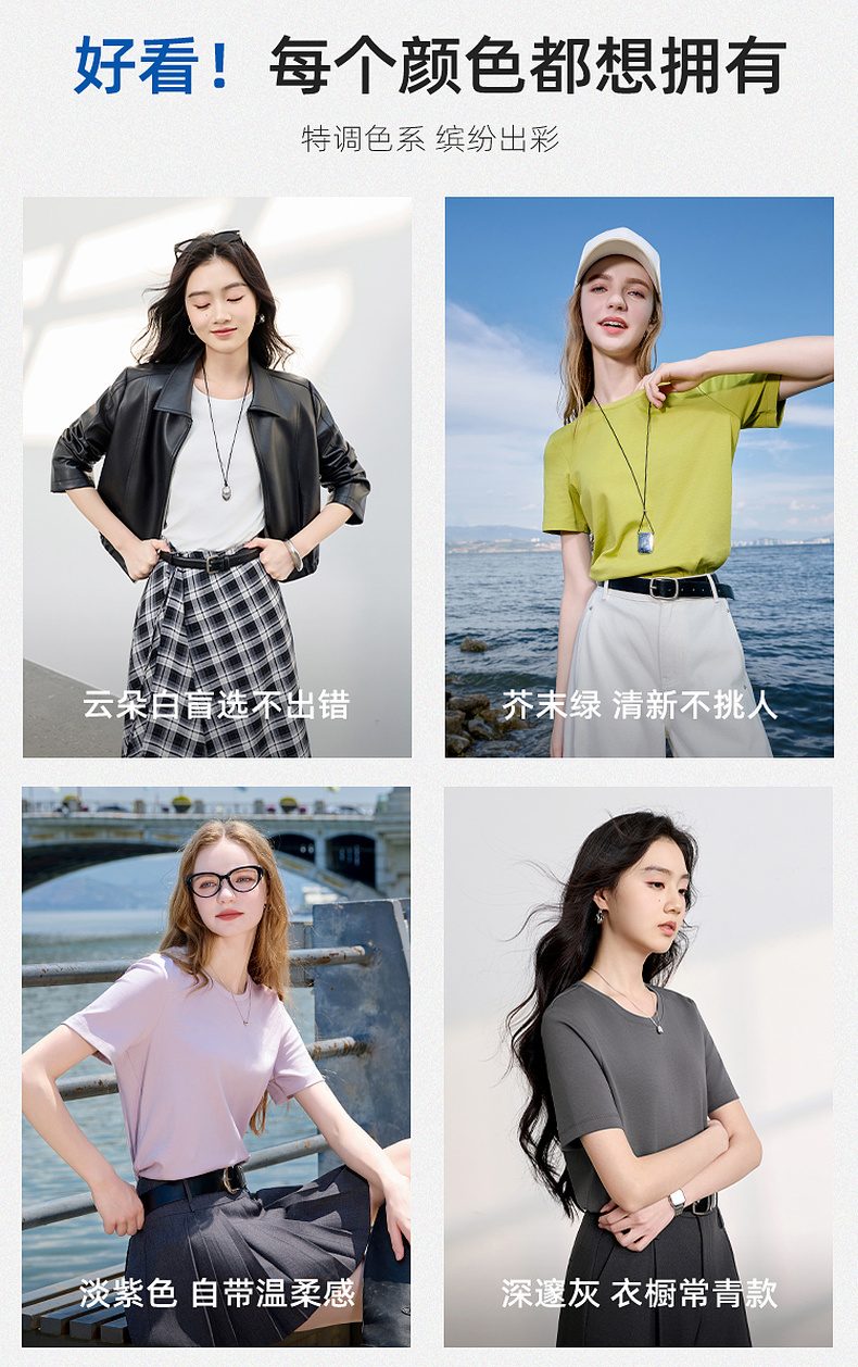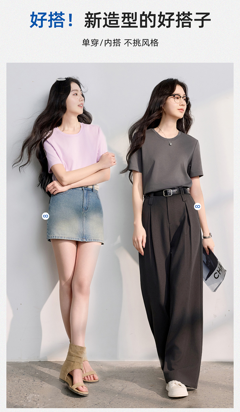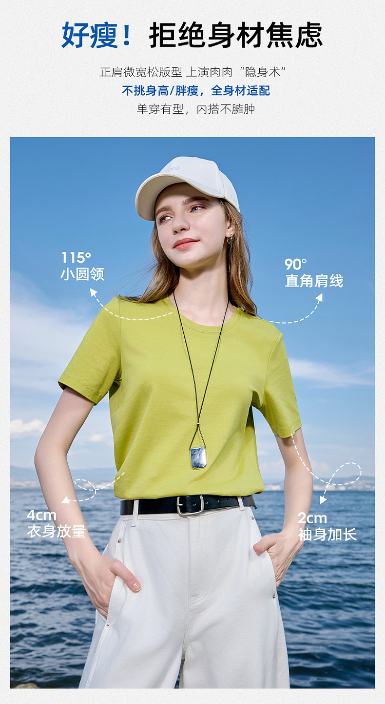 【匹马棉】三彩2026春季新款圆领正肩短袖T恤纯色基础套头衫休闲Z