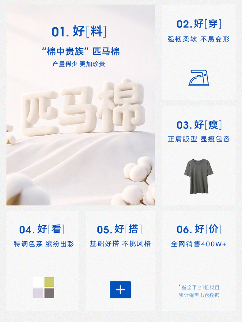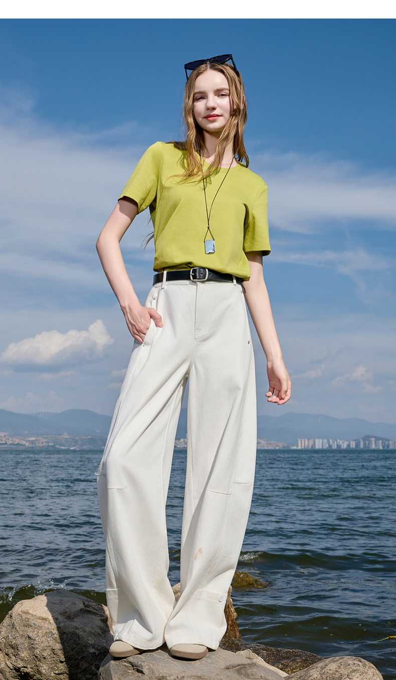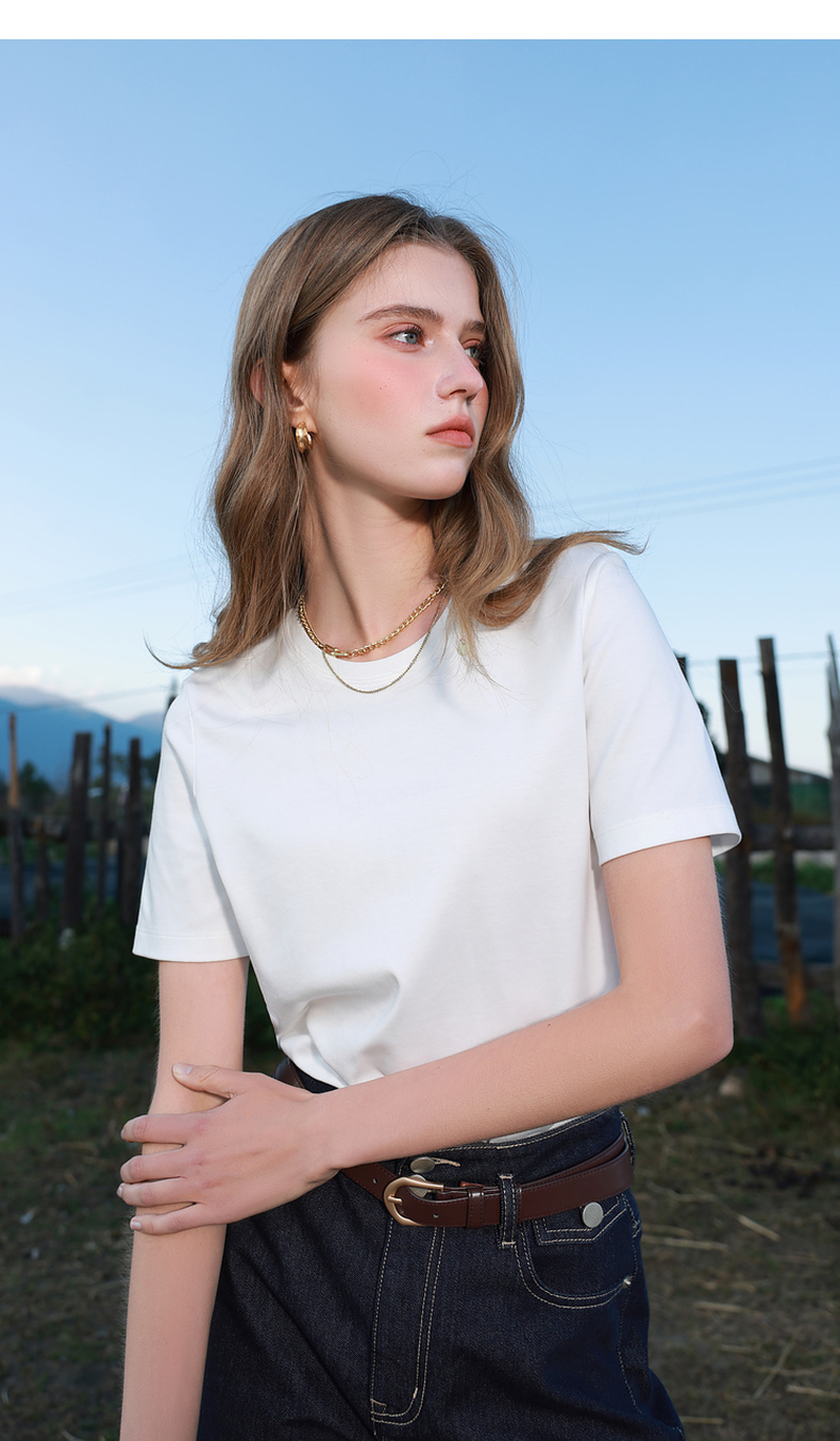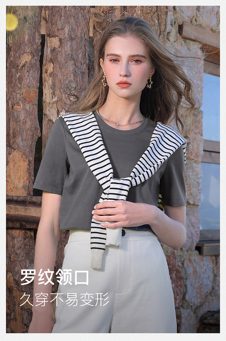【匹马棉】三彩2026春季新款圆领正肩短袖T恤纯色基础套头衫休闲Z