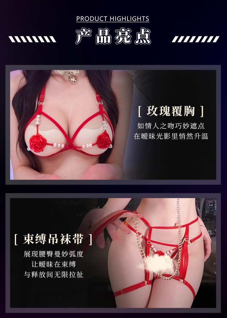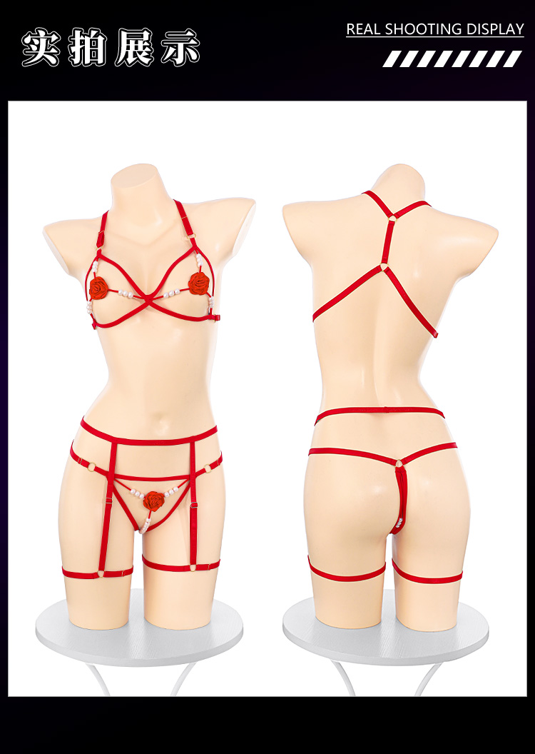 【情趣内衣】霏慕 珠联璧合玫瑰三点式套装7924