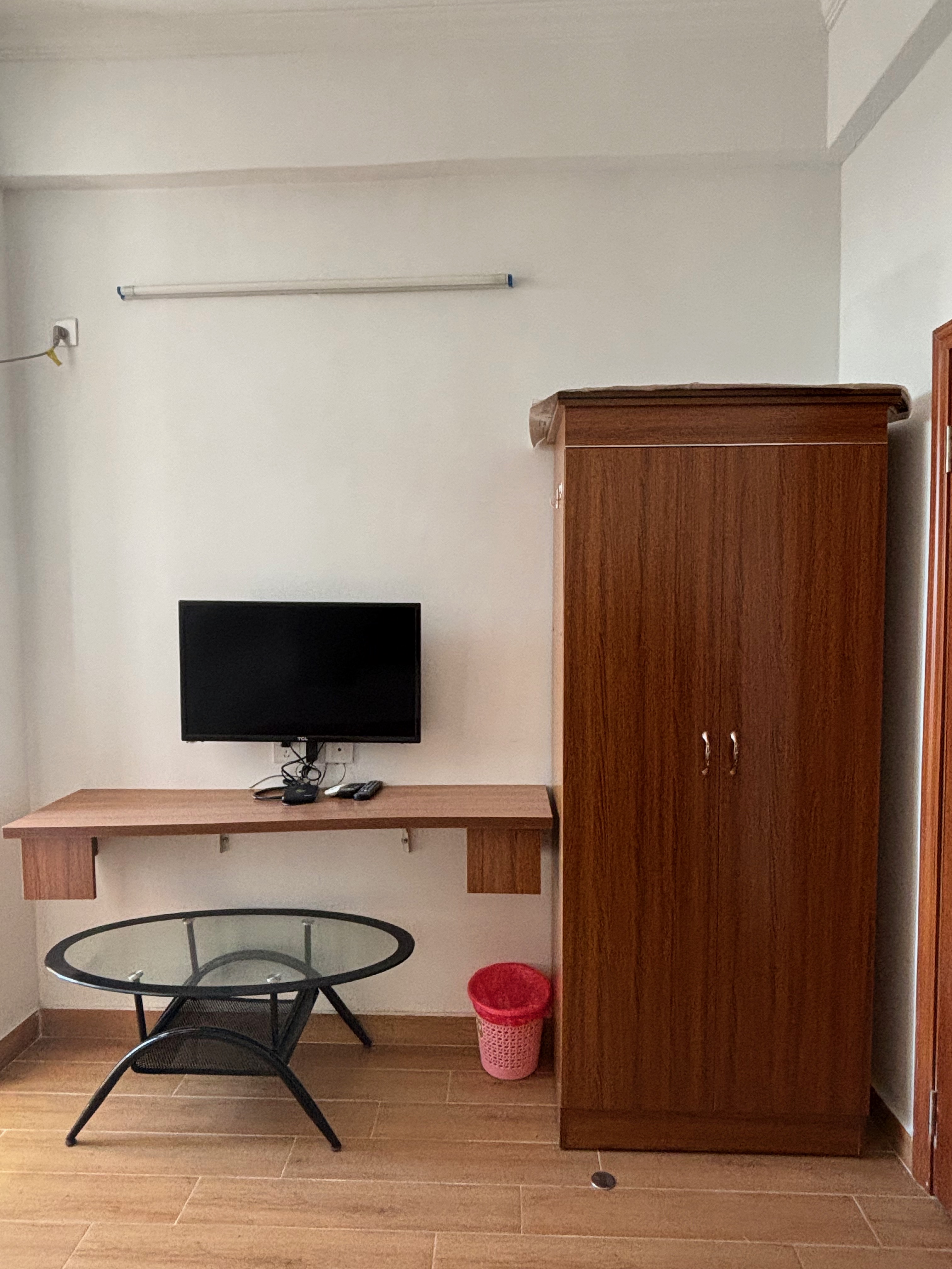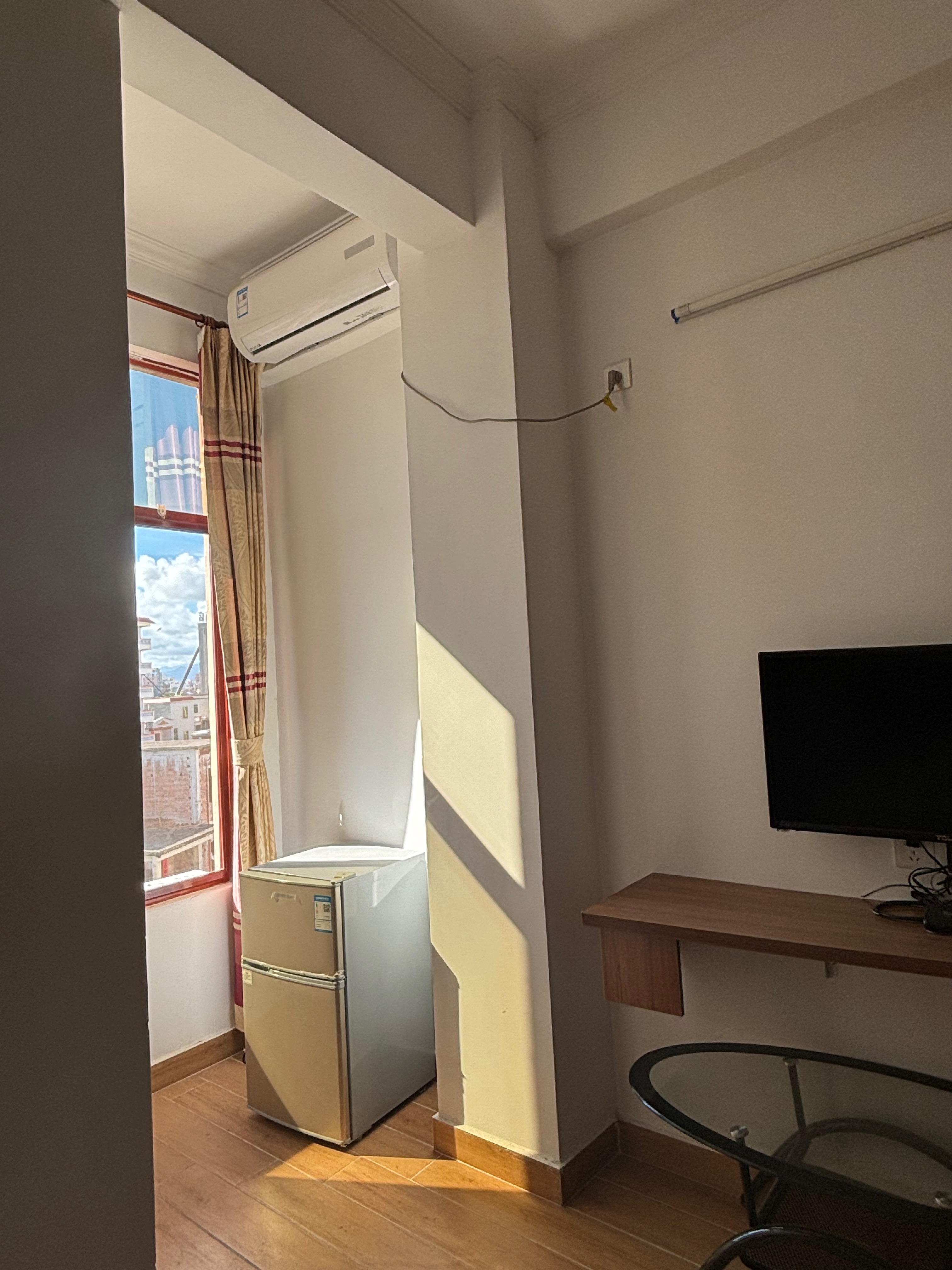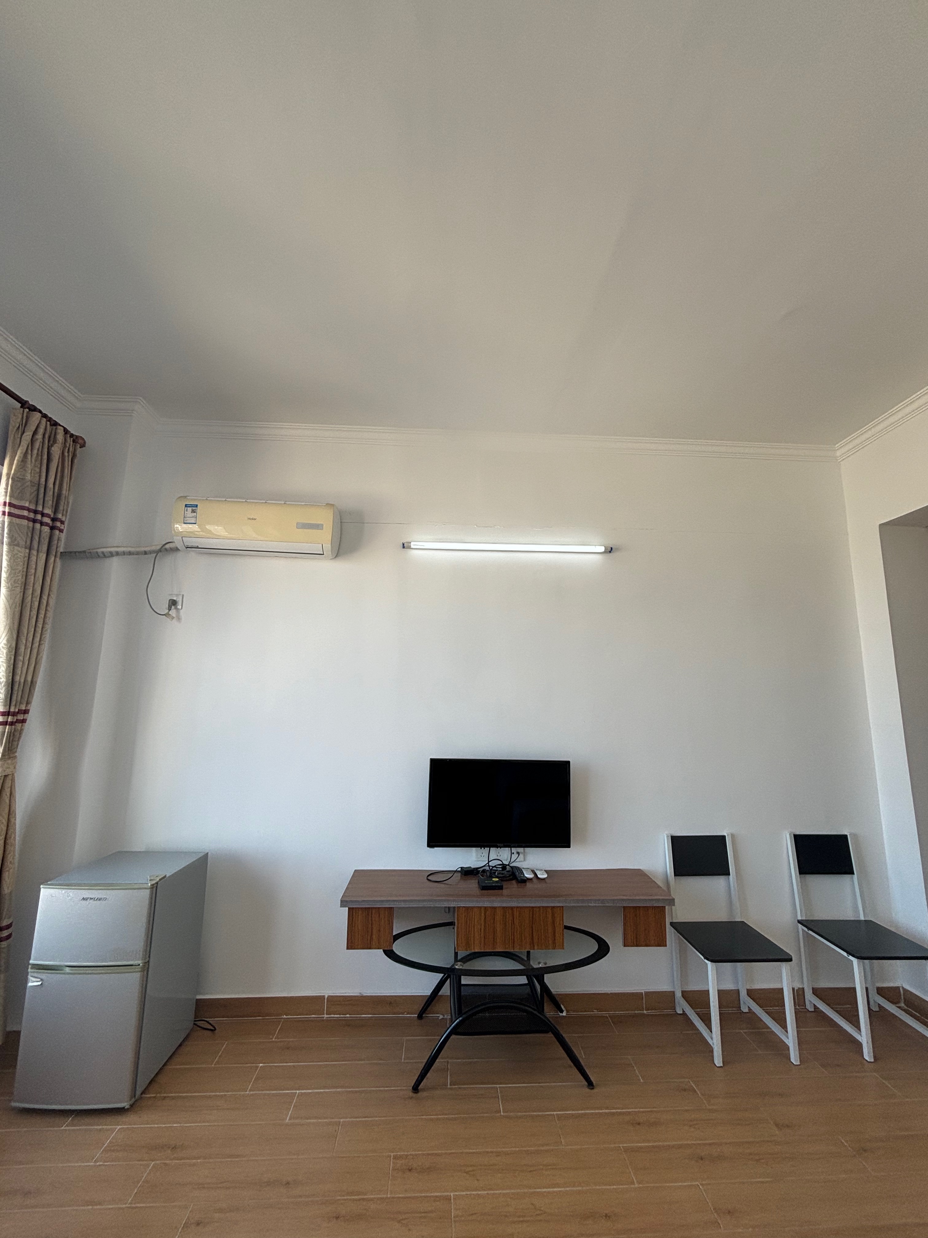【房间配套设施】房间设施设备齐全,设有空调、24小时热水、数字电视、宽带上网、独立冰箱等,每层都有洗衣房。