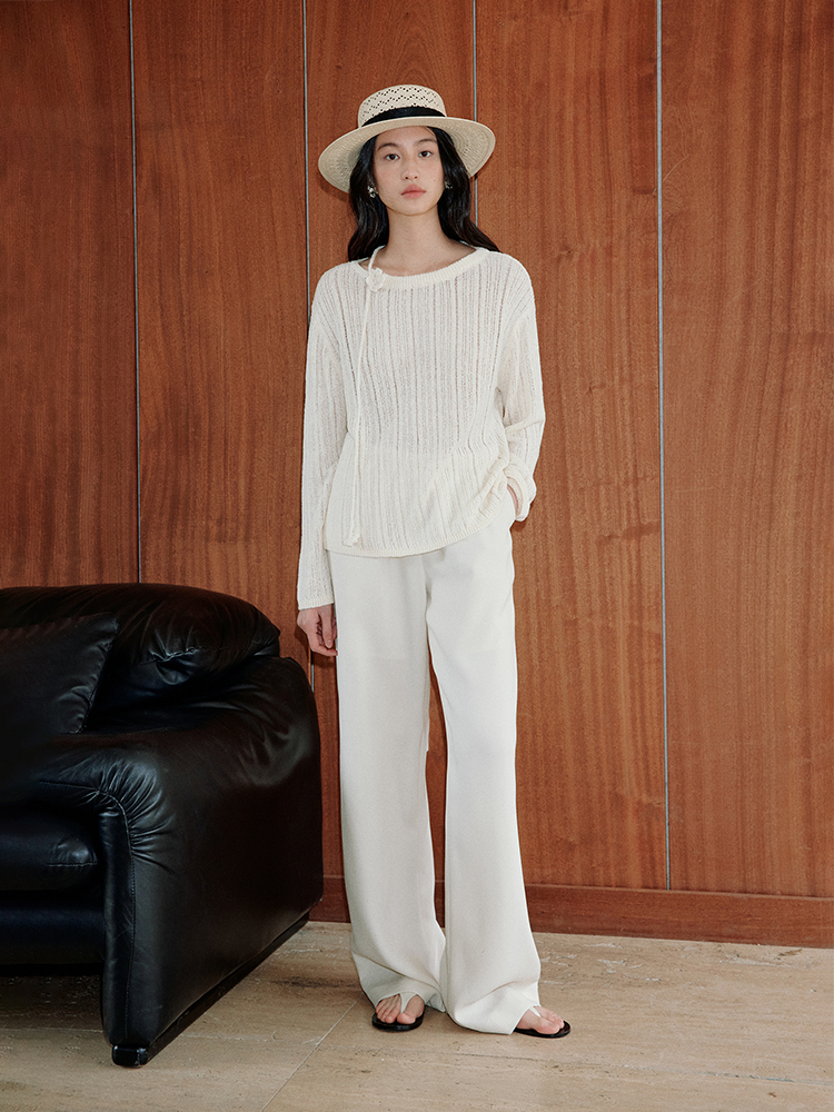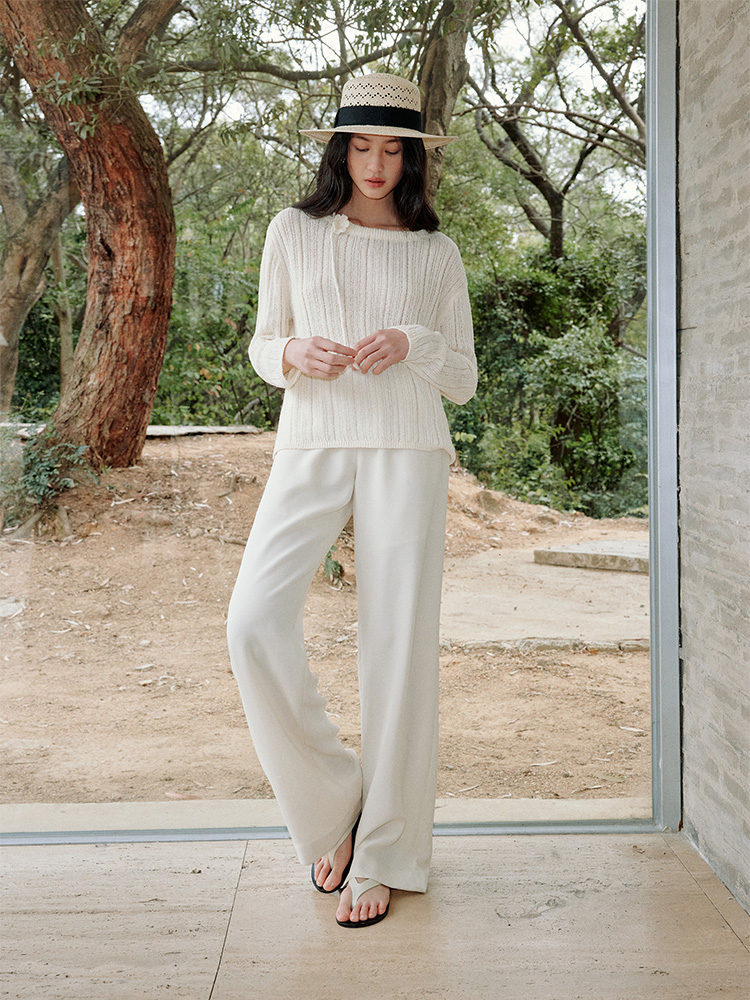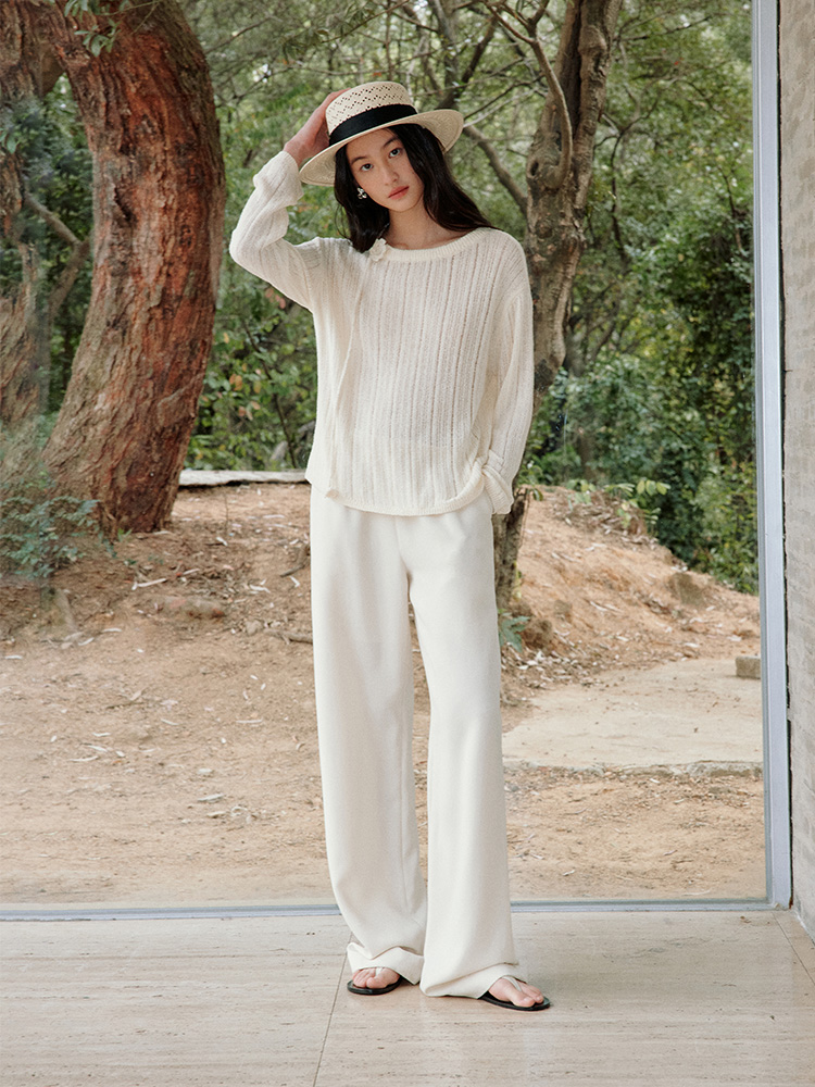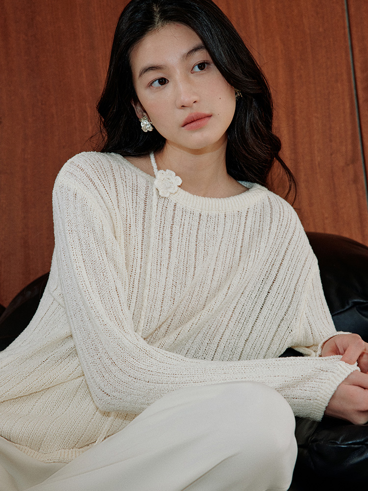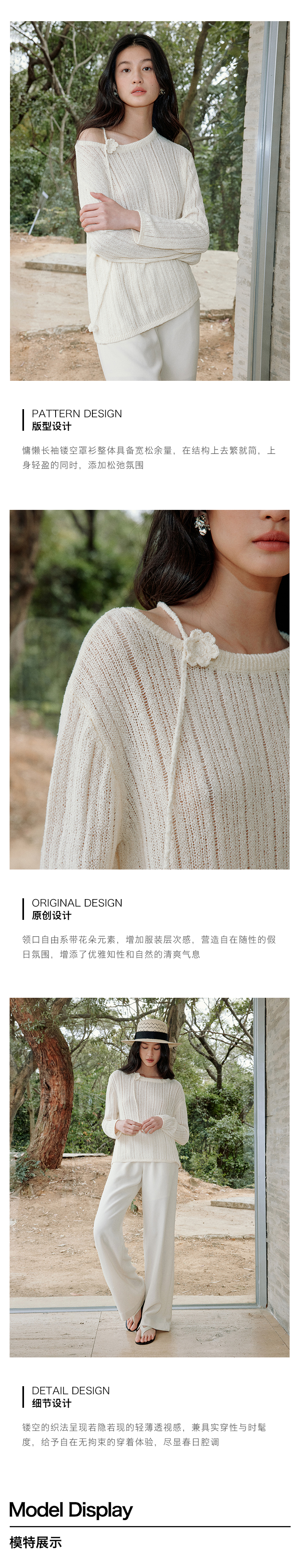 ForPoem 现货 25/SS原创设计春夏薄款透气镂空系带花针织罩衫