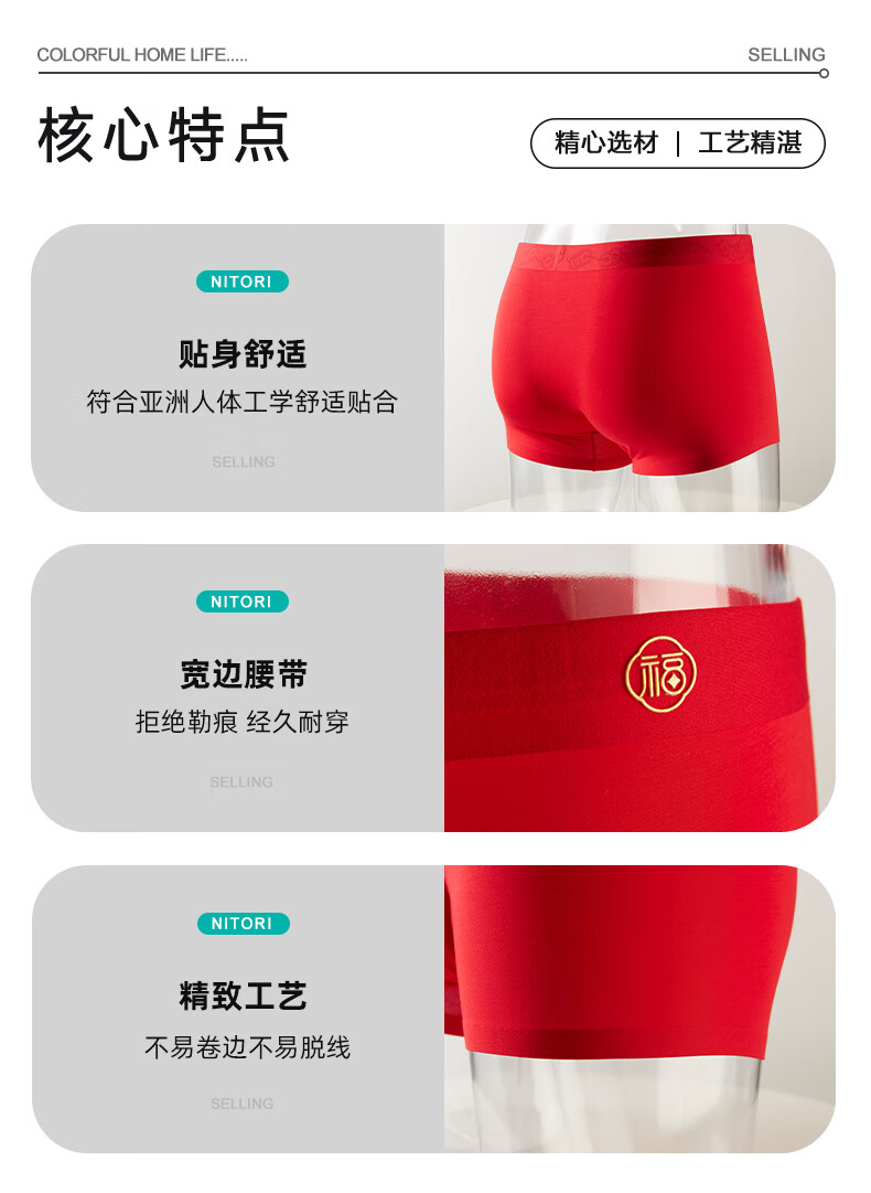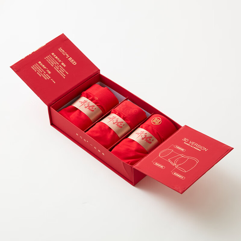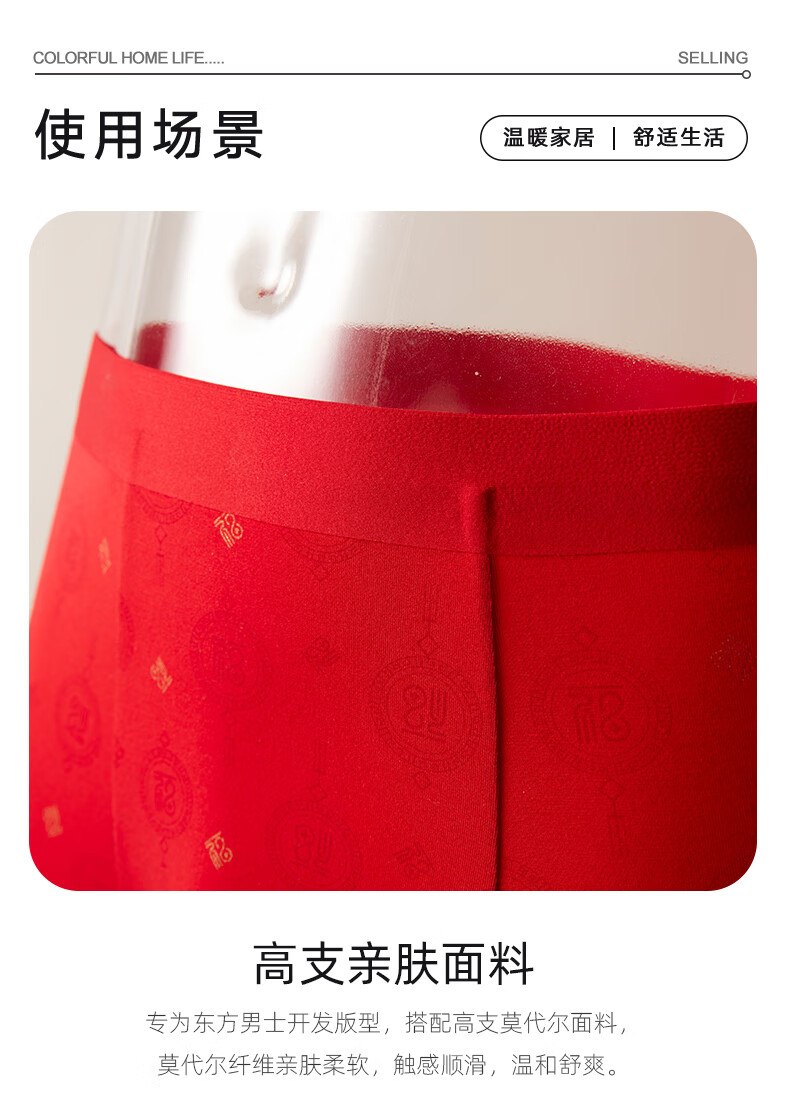 平角裤头透气四角红色内裤本命年男士短裤 腰缠万贯