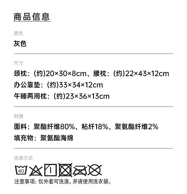 颈枕/腰垫/办公靠垫/午睡两用枕 低反弹 针织 灰色2