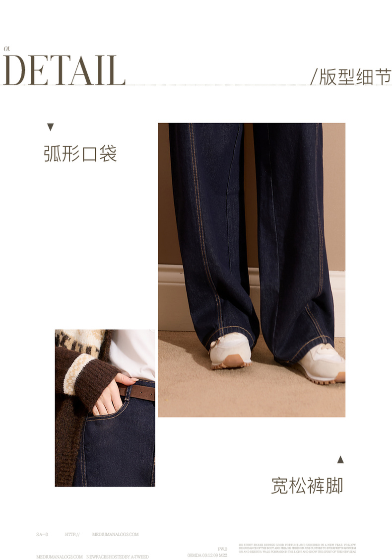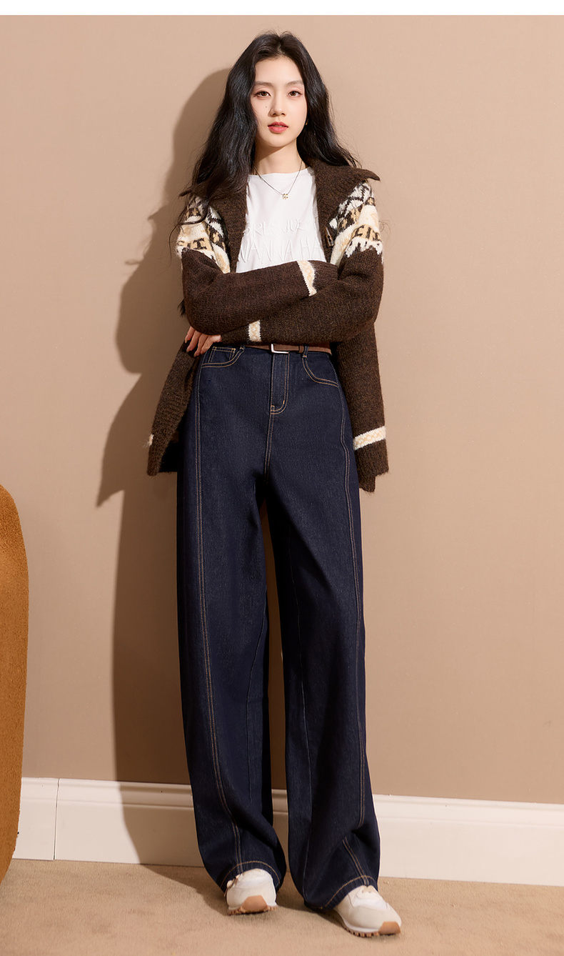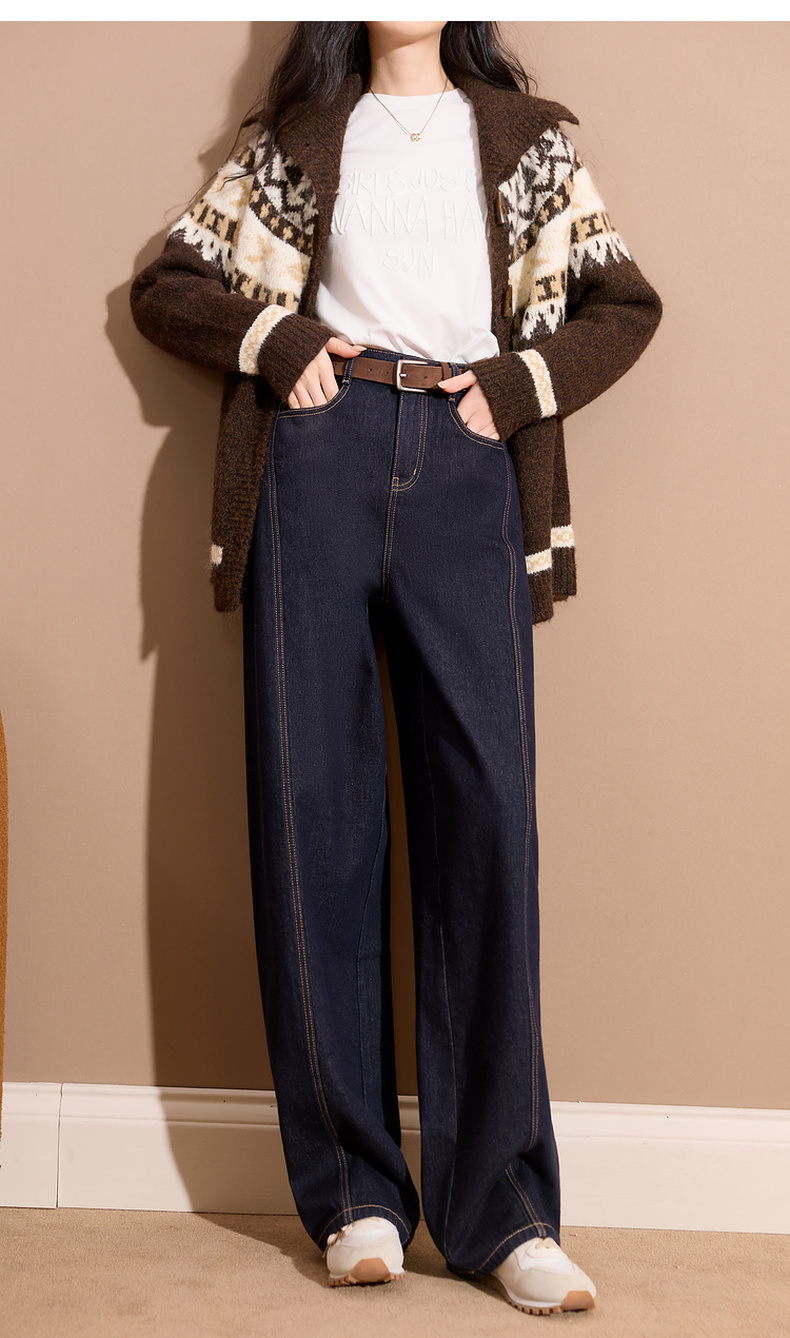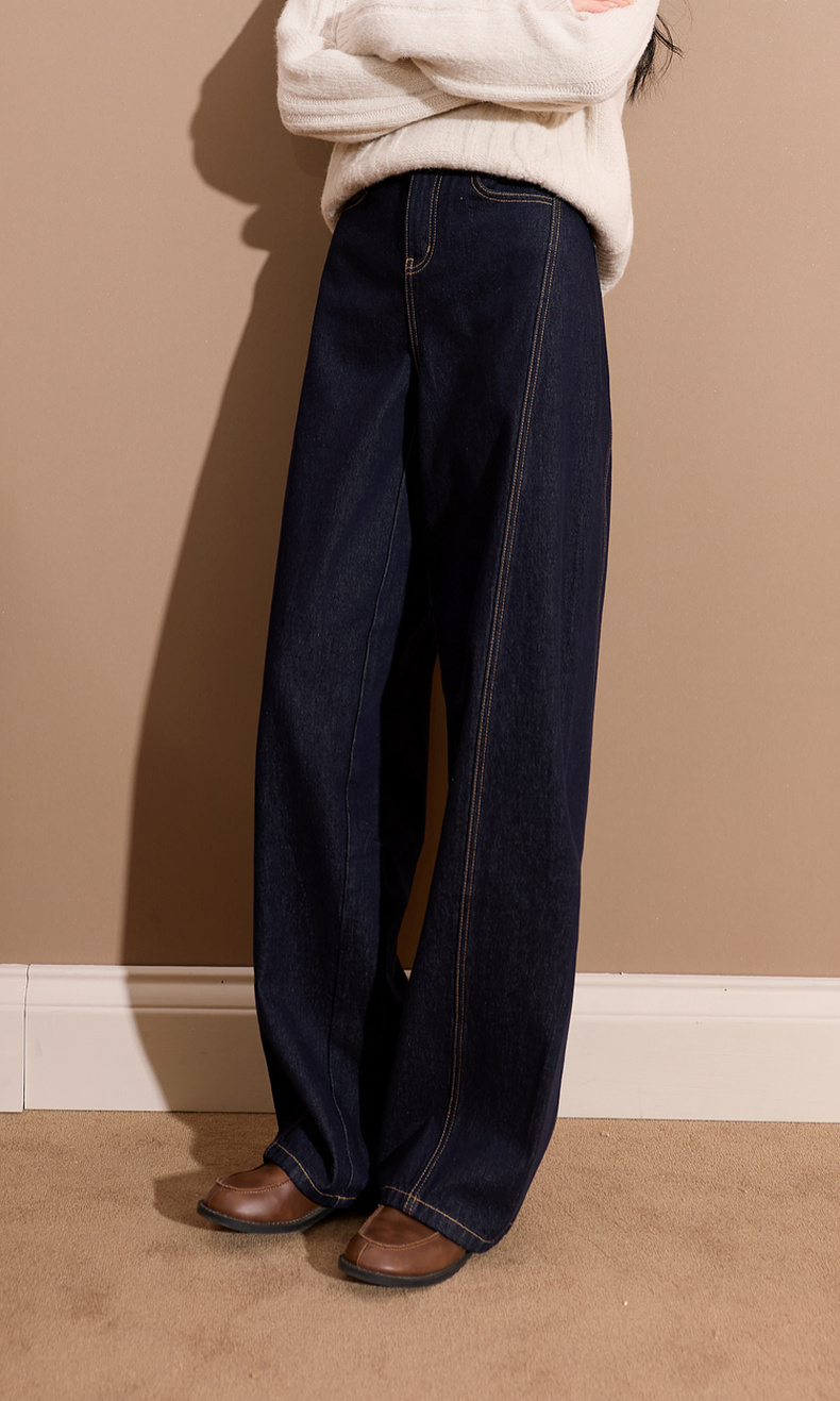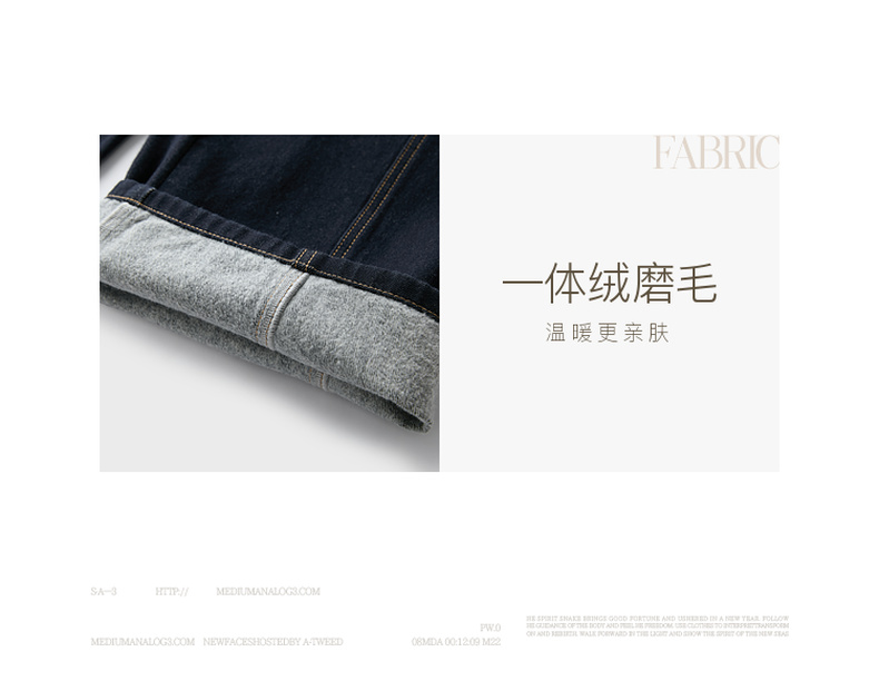 【100棉】三彩2025冬季新款一体绒磨毛牛仔裤休闲宽松镰刀裤长裤S