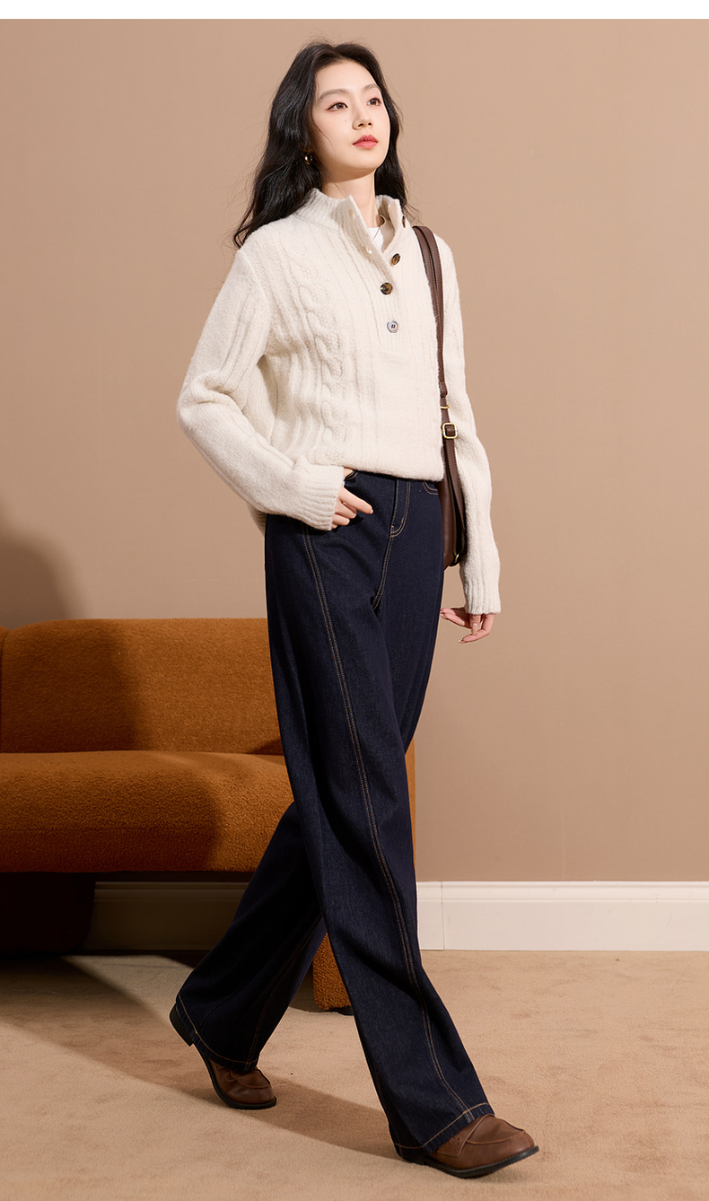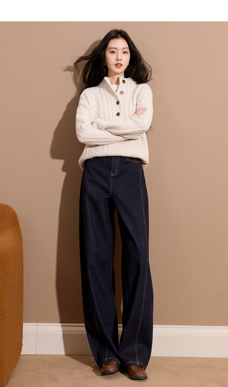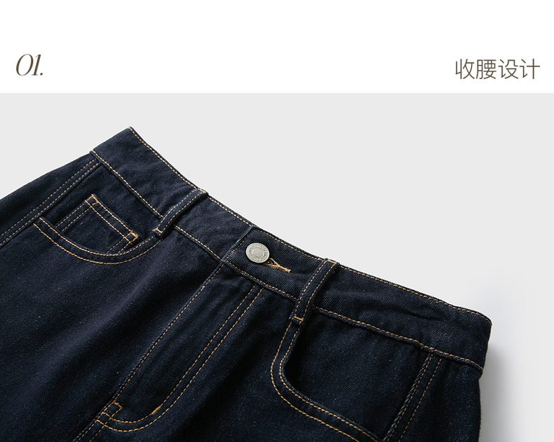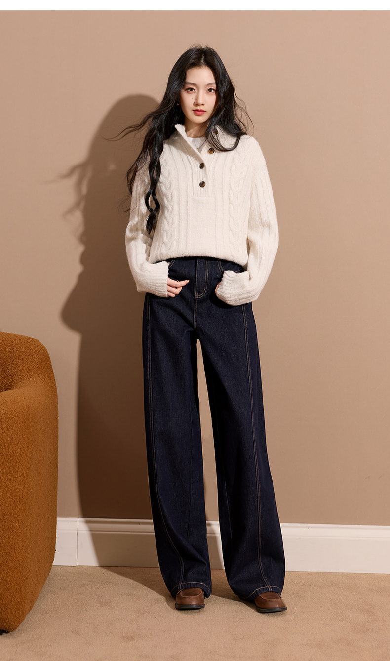【100棉】三彩2025冬季新款一体绒磨毛牛仔裤休闲宽松镰刀裤长裤S