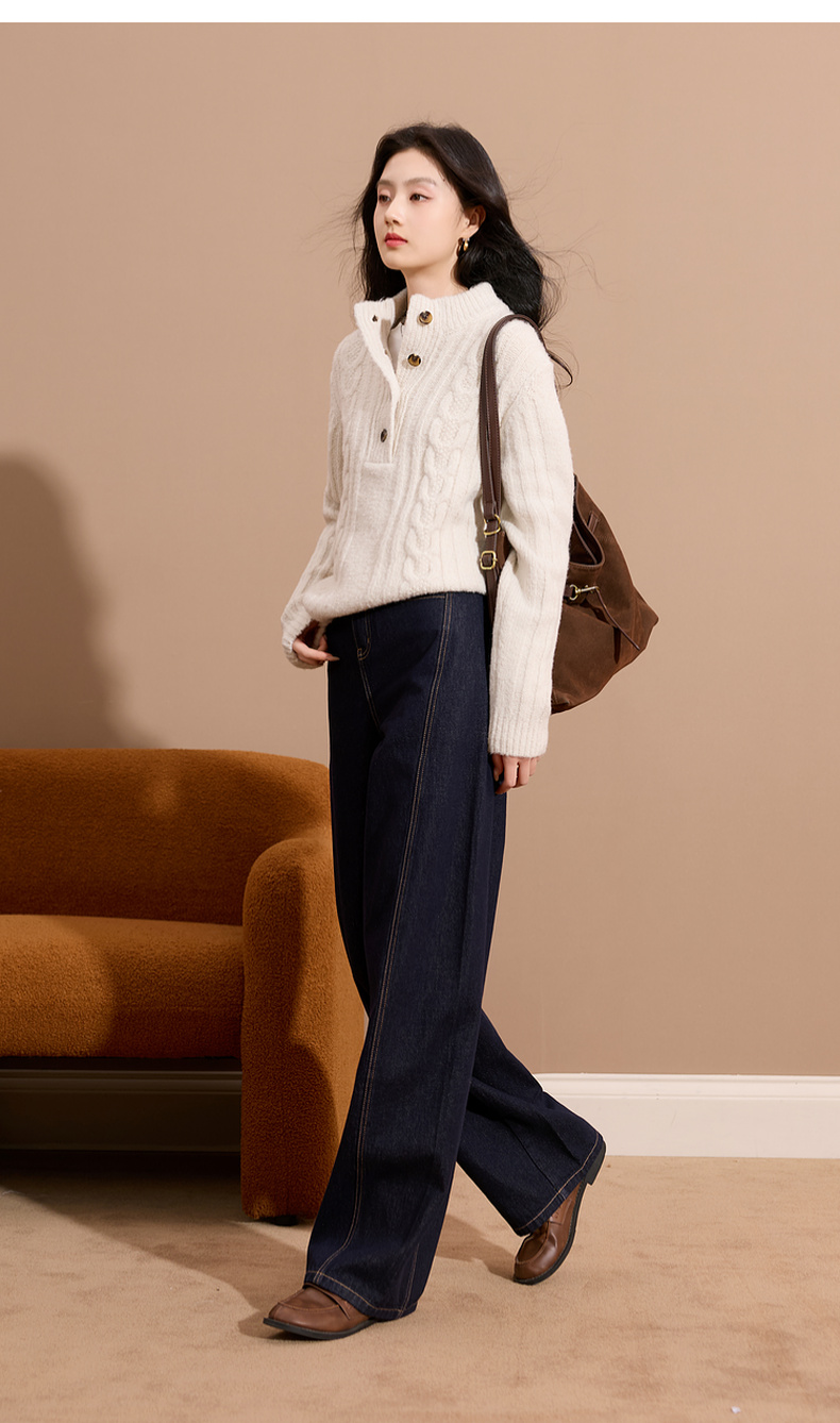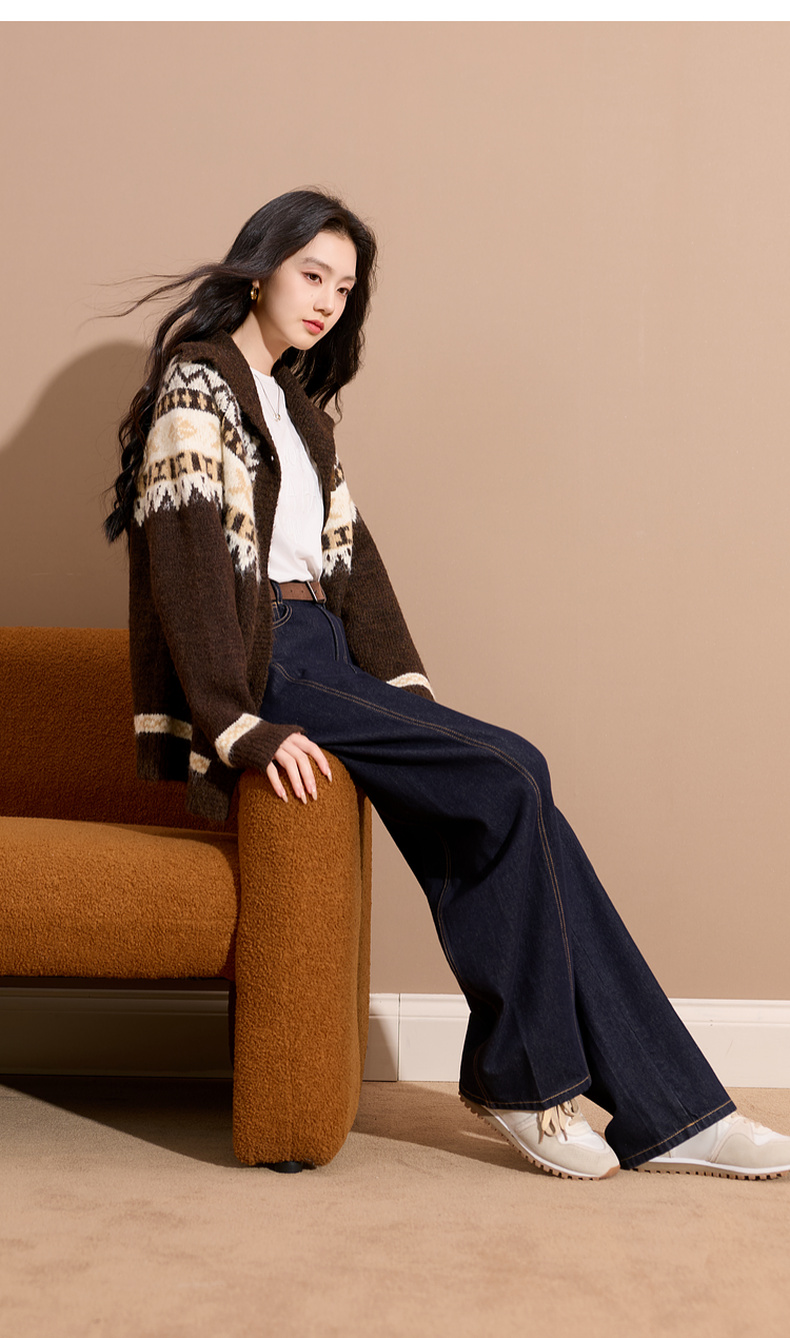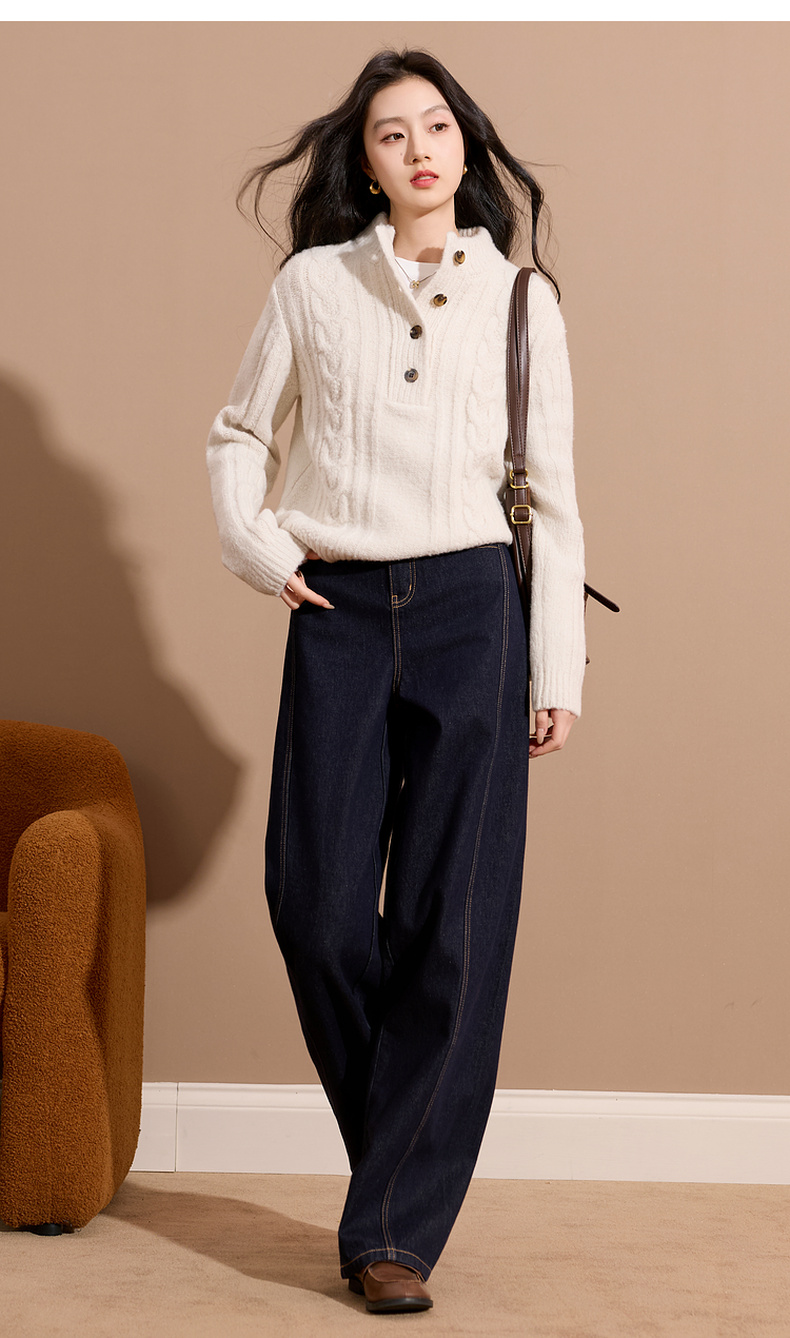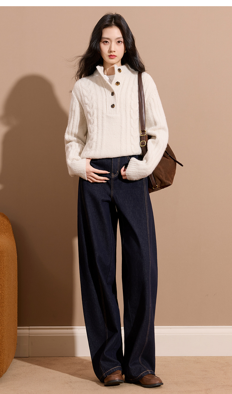【100棉】三彩2025冬季新款一体绒磨毛牛仔裤休闲宽松镰刀裤长裤S