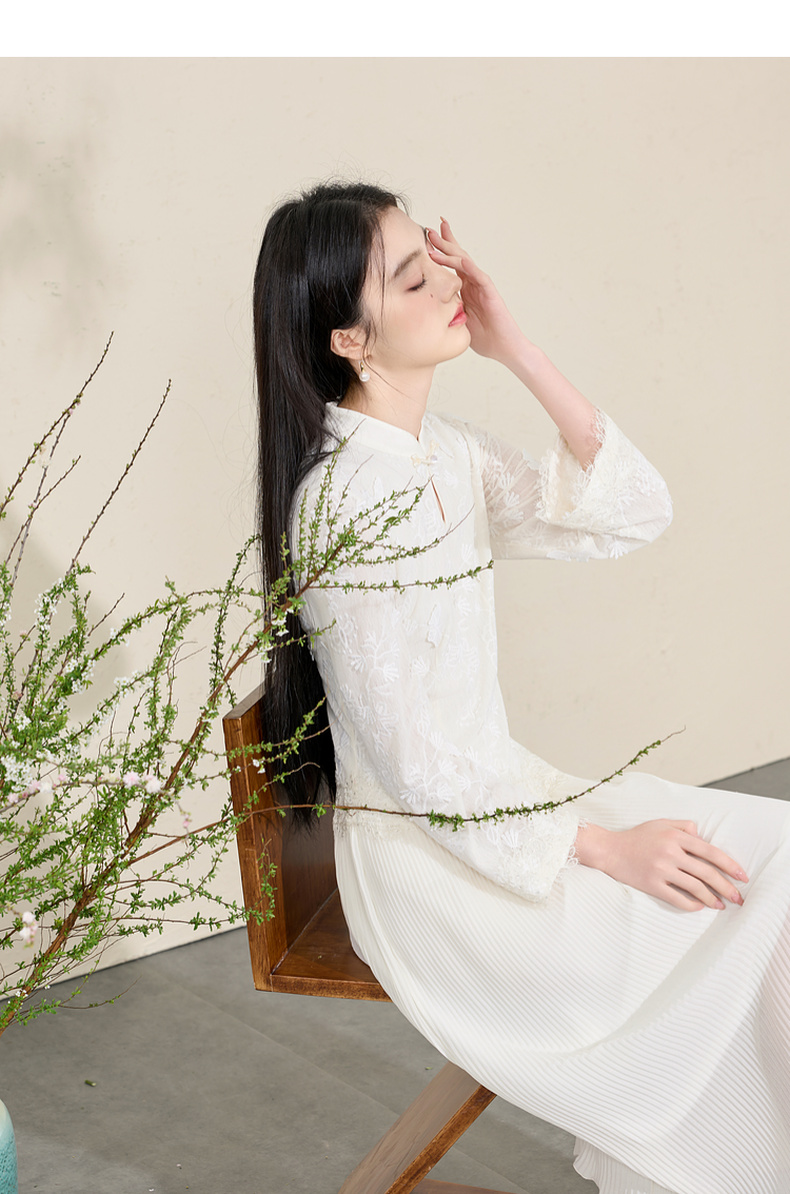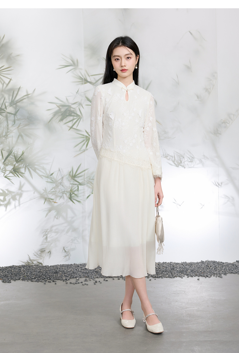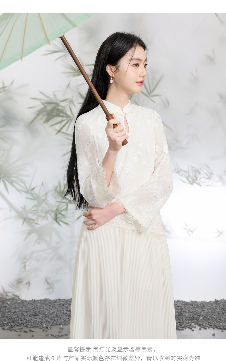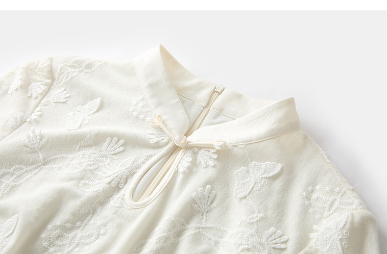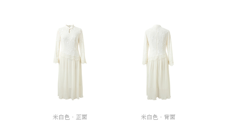 三彩【晓梦迷蝶】2026春季新款新中式连衣裙拼接九分袖长裙C
