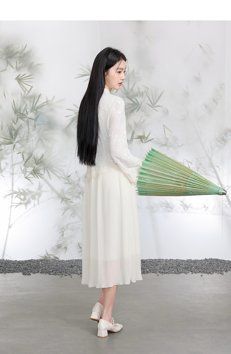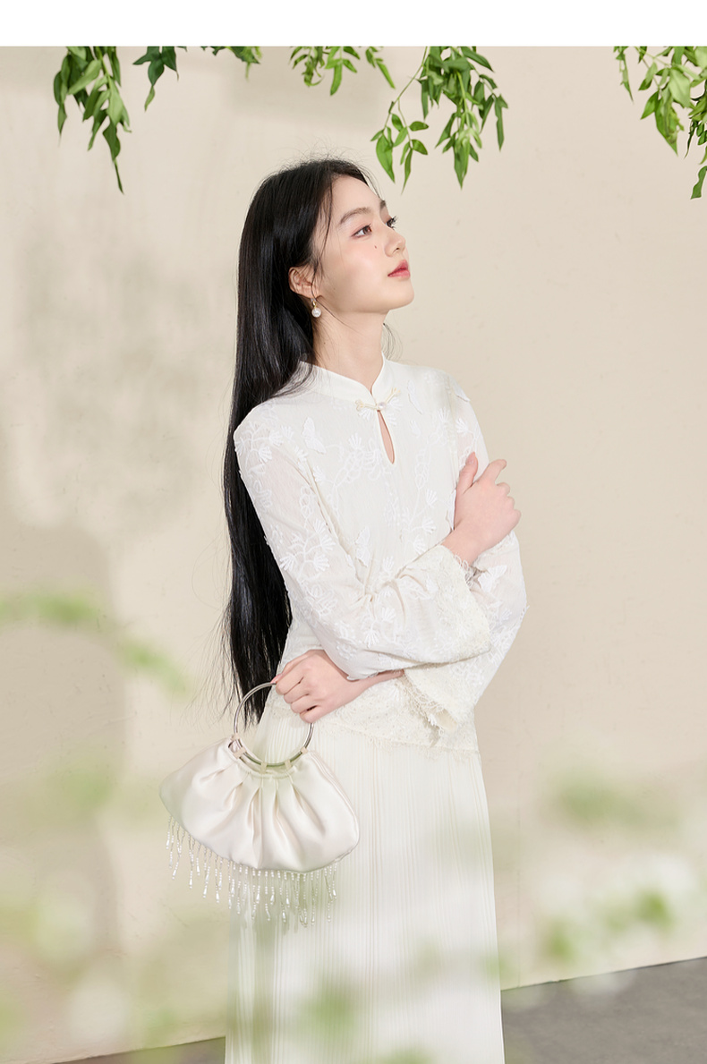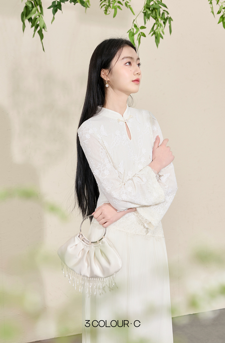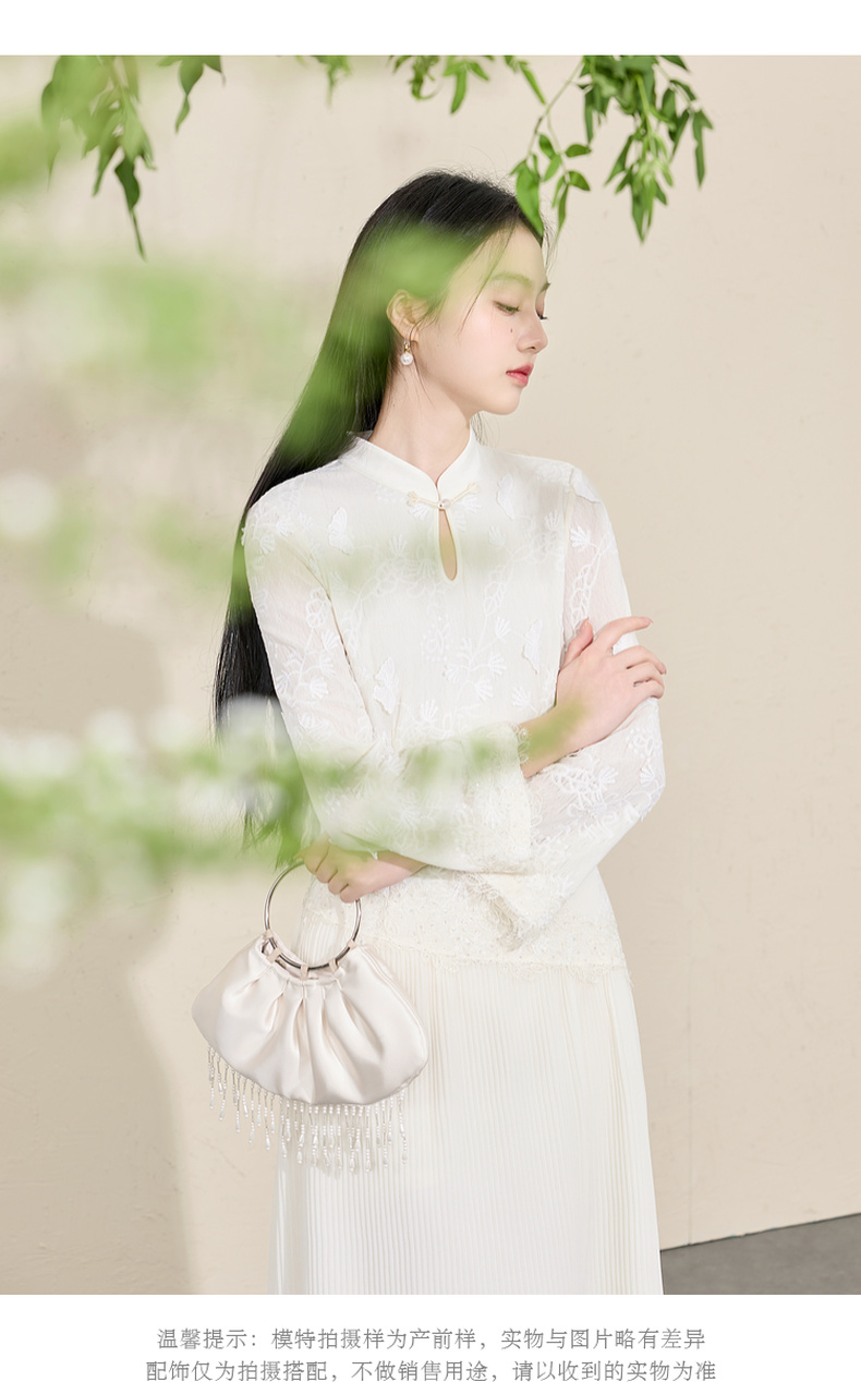 三彩【晓梦迷蝶】2026春季新款新中式连衣裙拼接九分袖长裙C