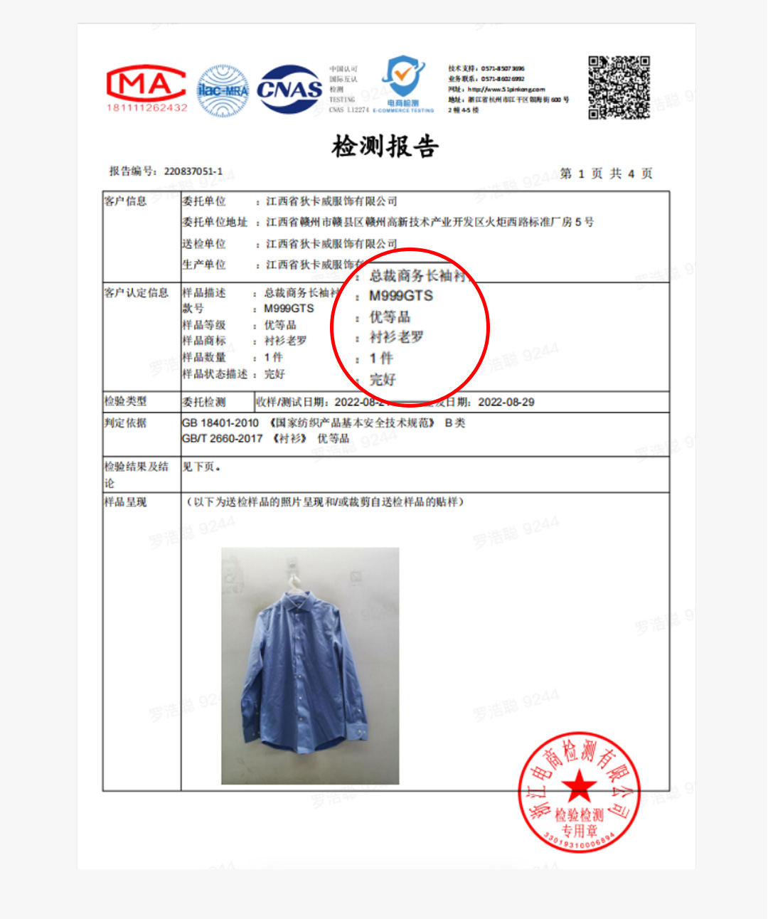 【凌志系列】100支DP抗皱免烫长袖衬衫M999GTS