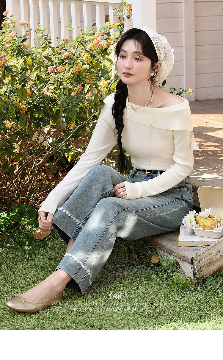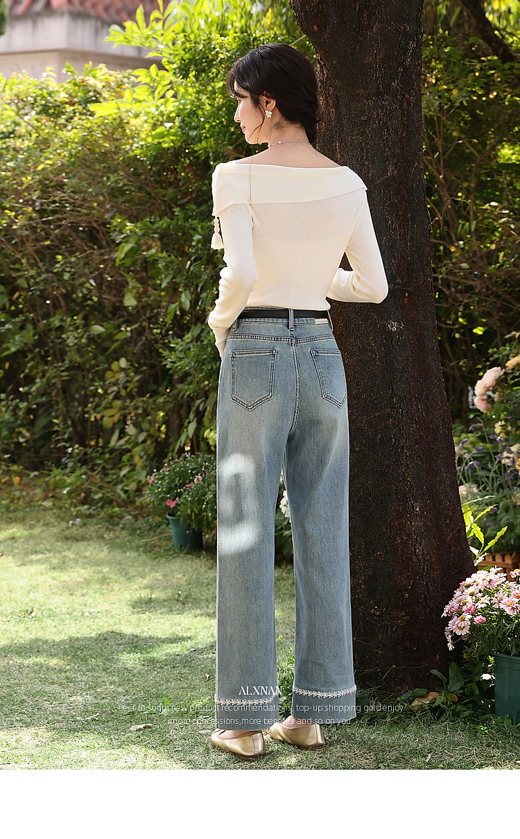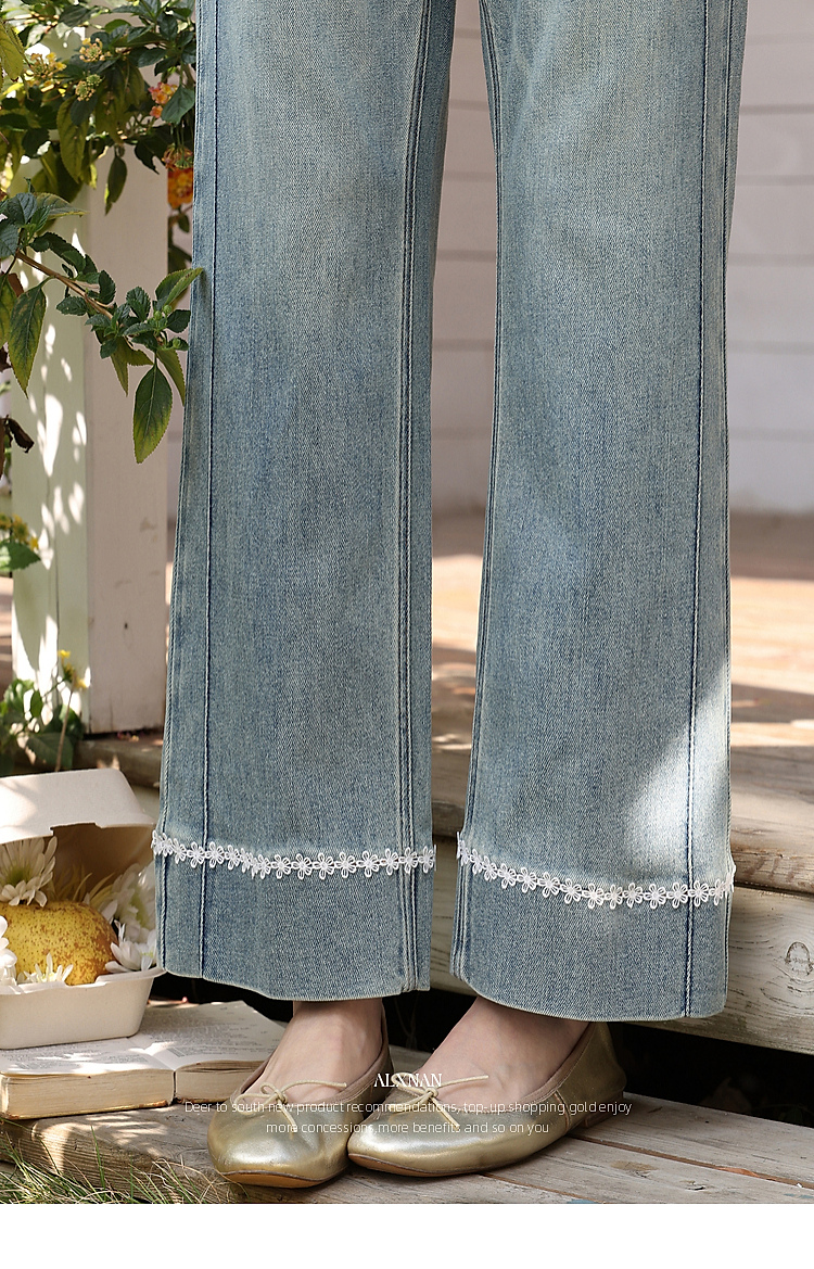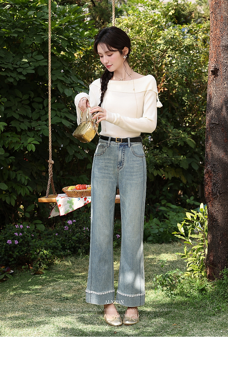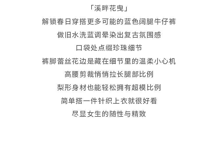 鹿向南「溪畔花曳」蓝色直筒牛仔裤春季新款时尚宽松阔腿长裤子女
