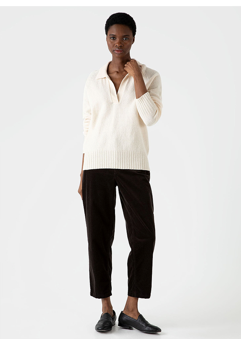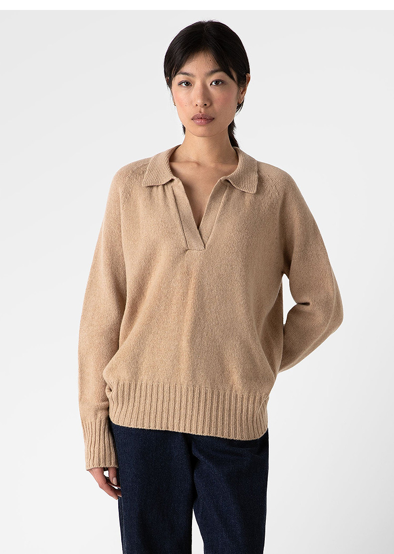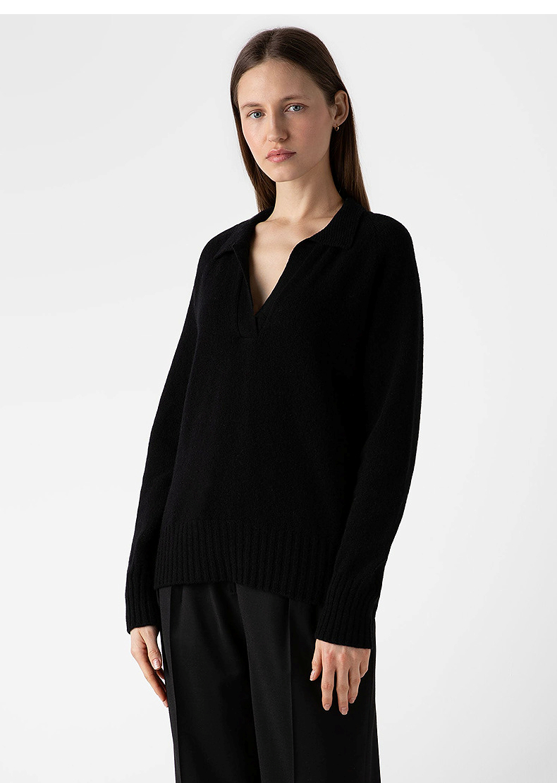 SUNSPEL女士秋冬羊羔毛Polo领针织衫套头衫