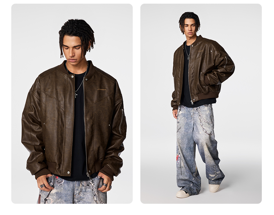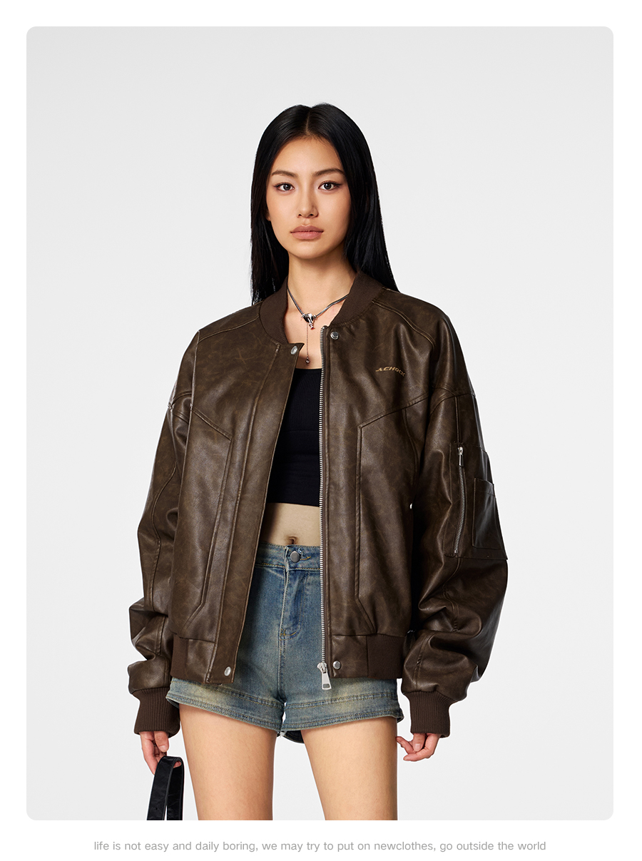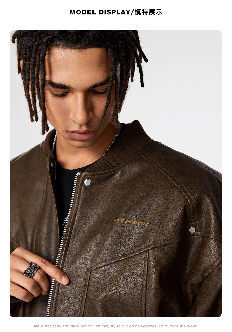 【Achock官方店】立领机车皮衣男2024新款潮牌复古美式皮夹克外套