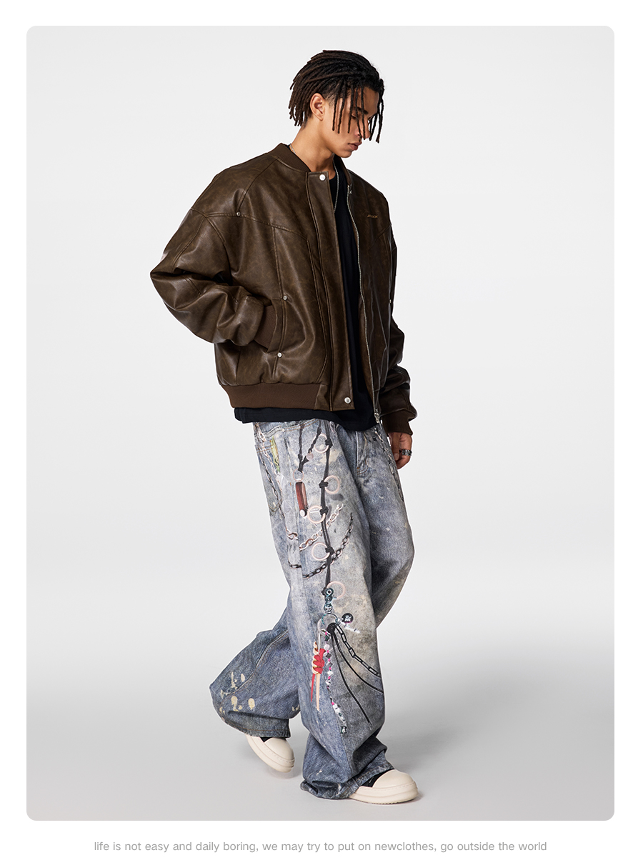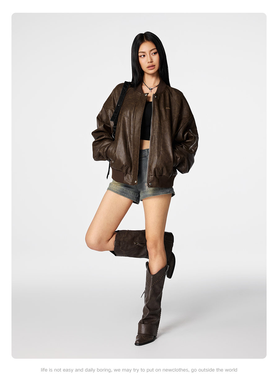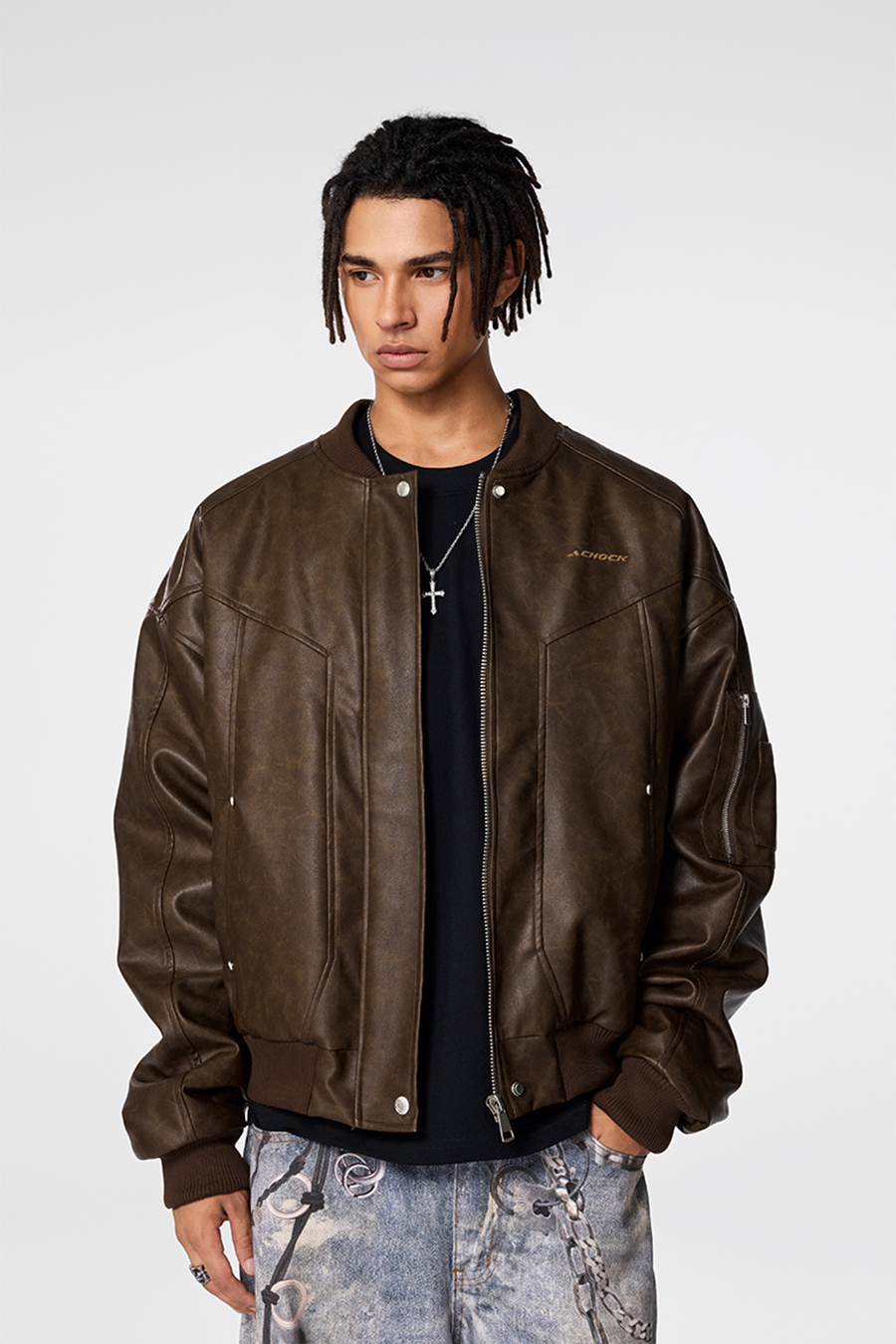【Achock官方店】立领机车皮衣男2024新款潮牌复古美式皮夹克外套