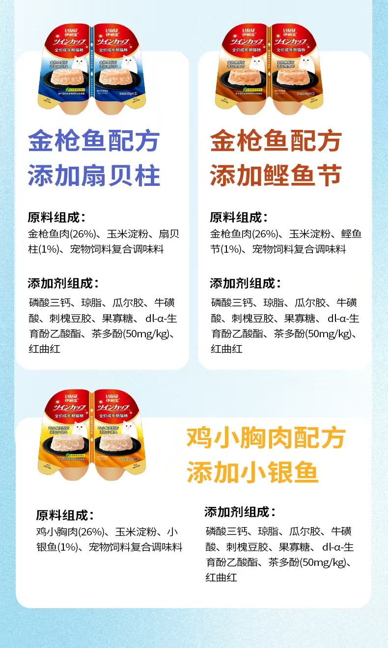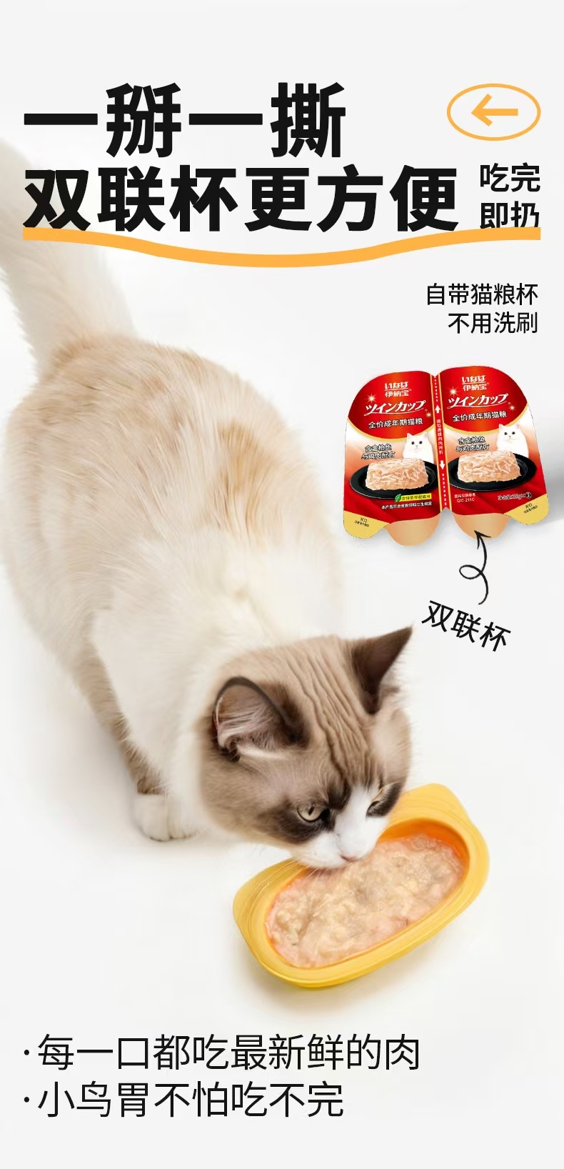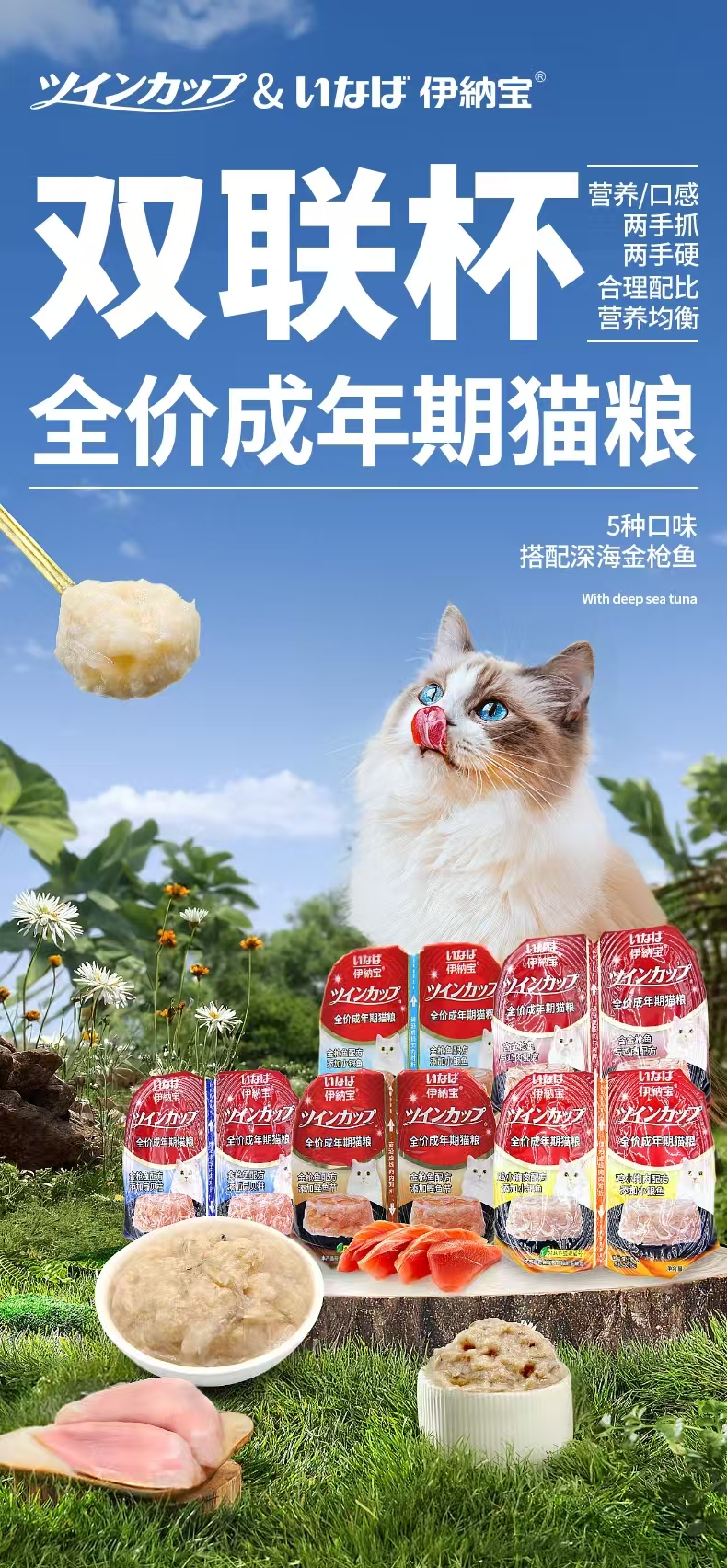 伊纳宝全价成年期猫粮双联杯 鸡小胸肉配方添加小银鱼35g*2*48/箱