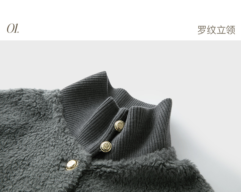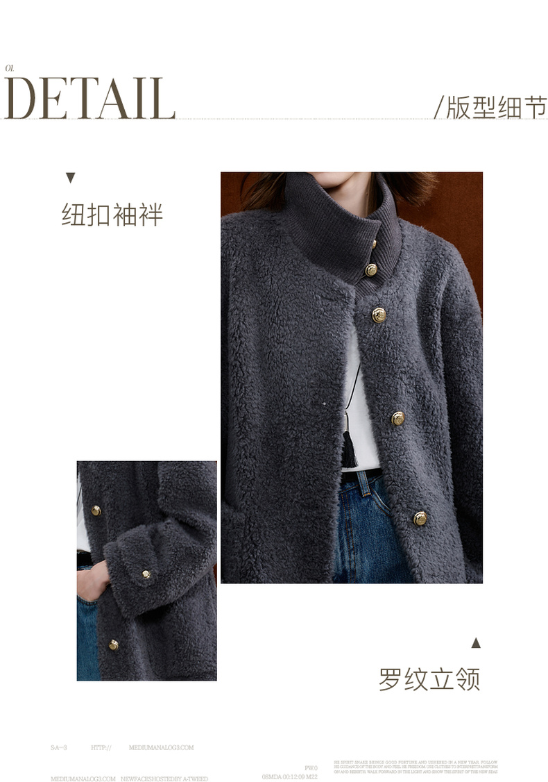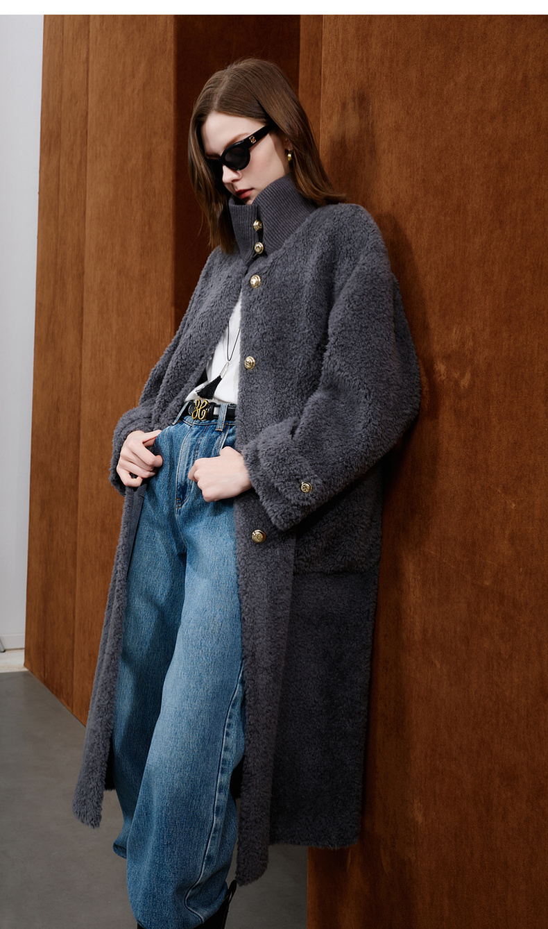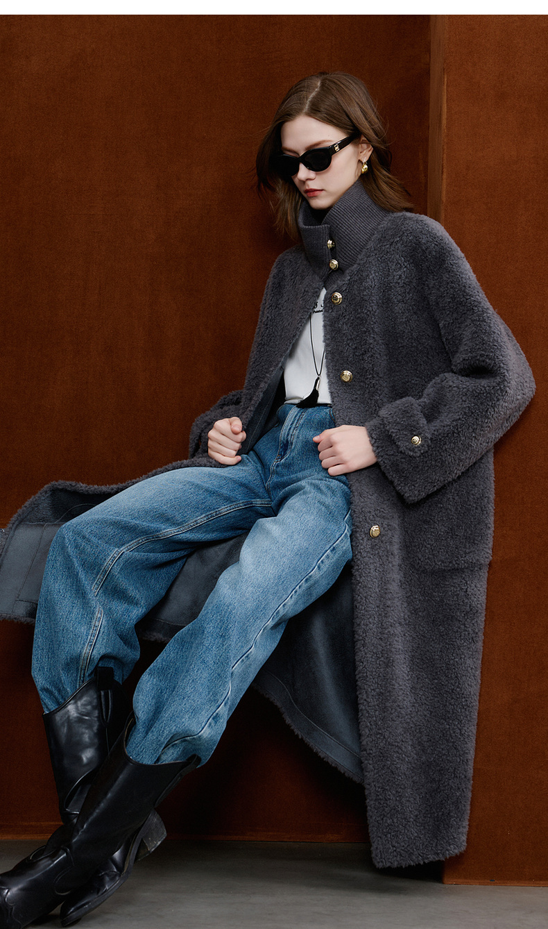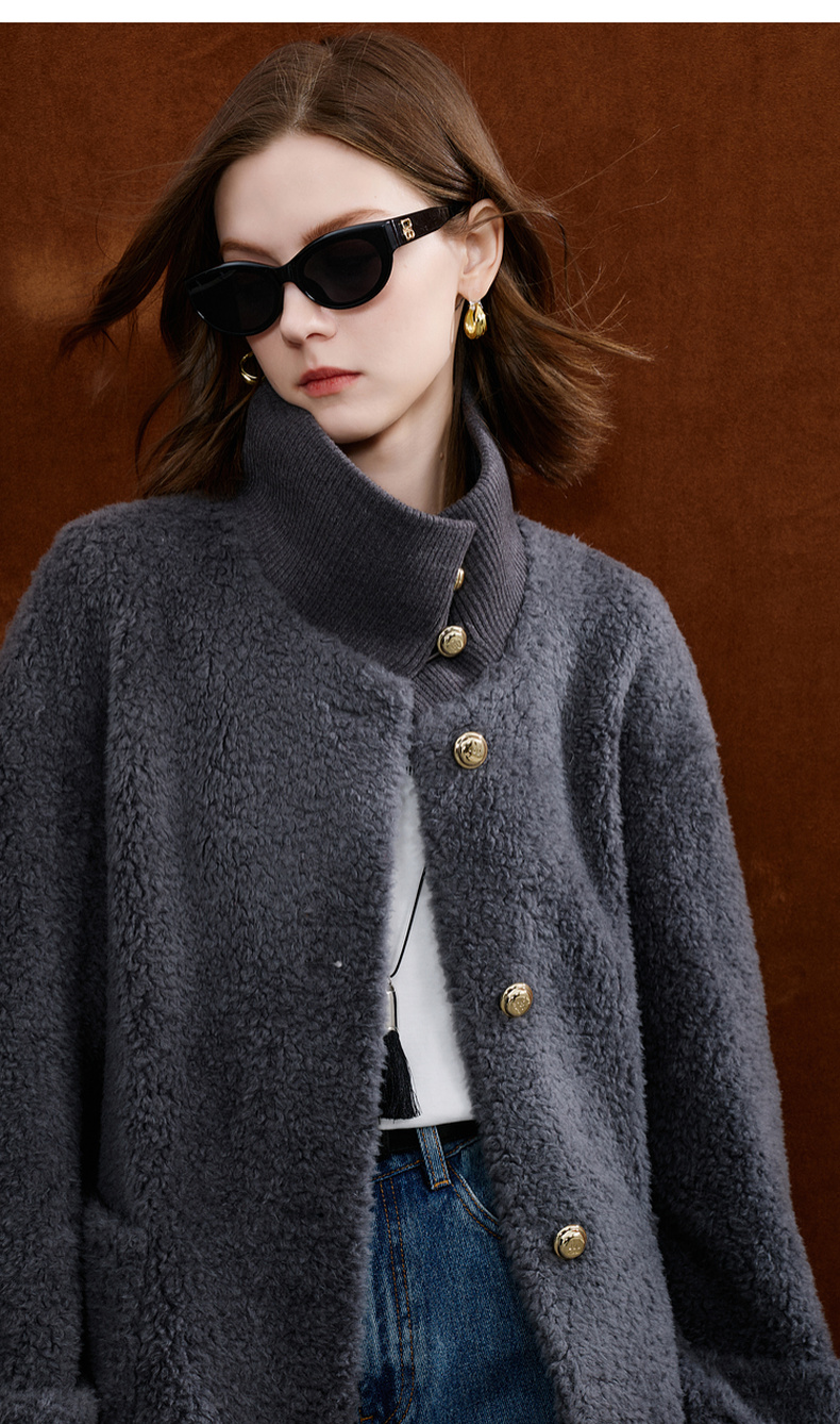 三彩2025冬季新款绵羊毛复合皮草毛毛外套立领仿皮草长款宽松M