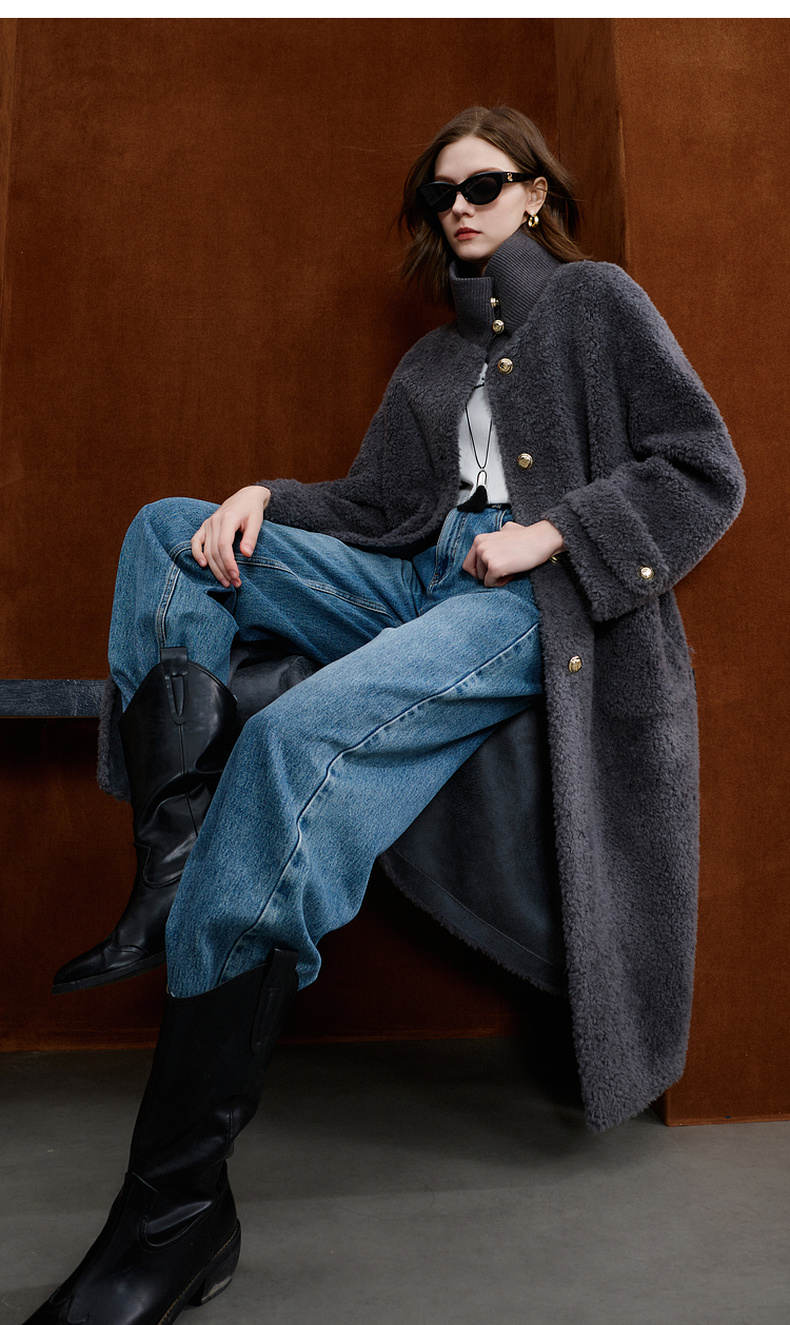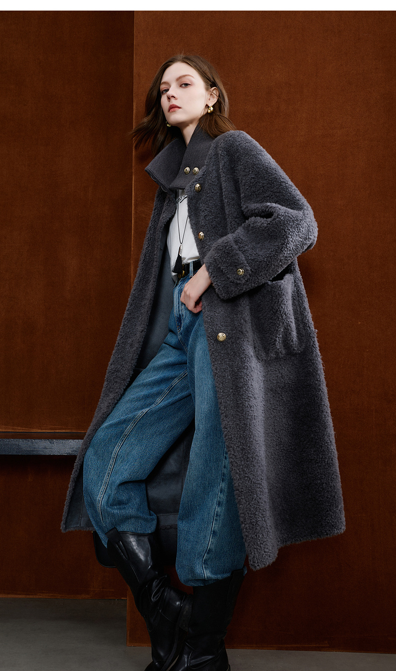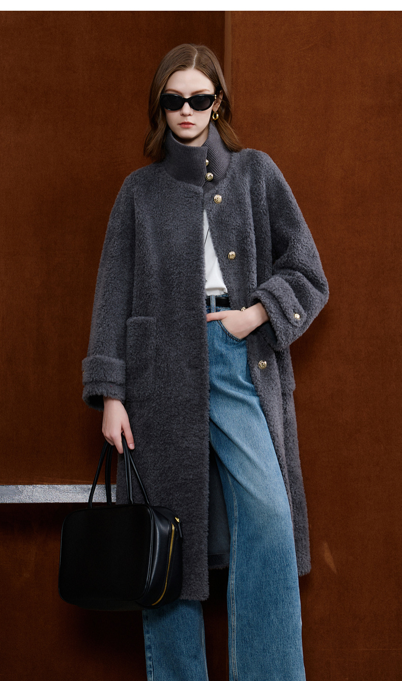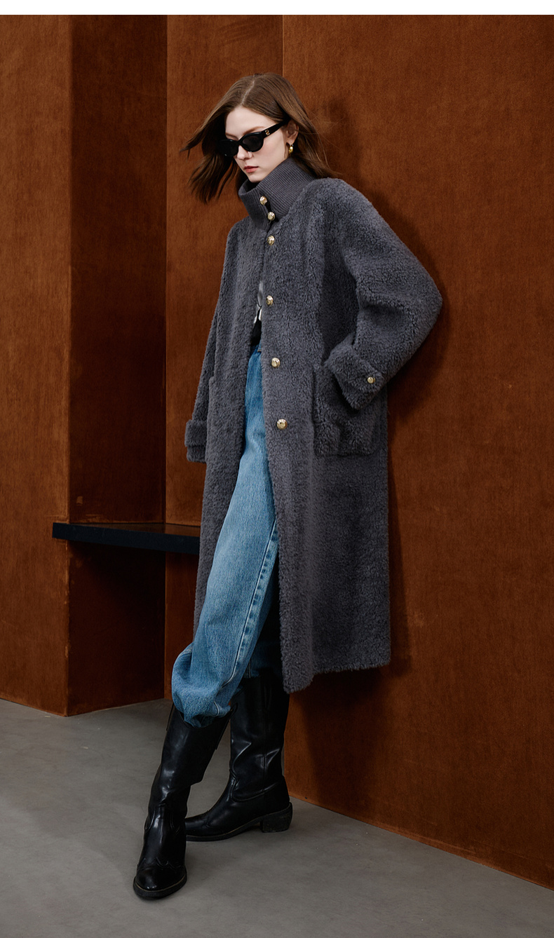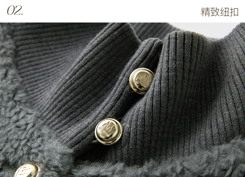 三彩2025冬季新款绵羊毛复合皮草毛毛外套立领仿皮草长款宽松M