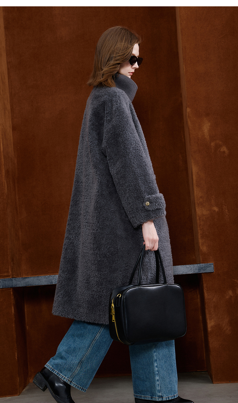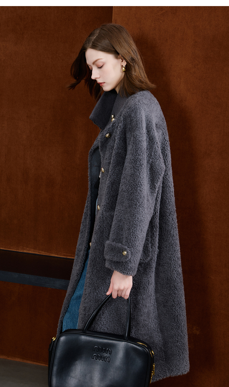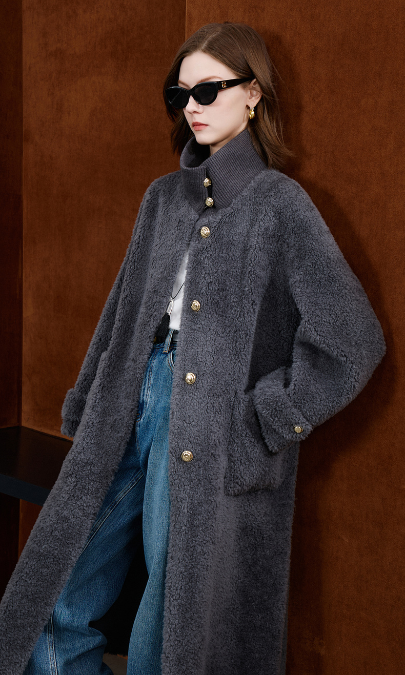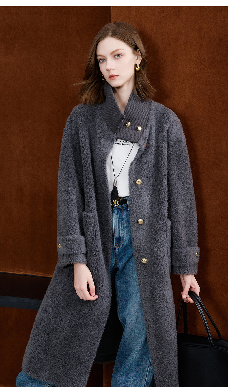 三彩2025冬季新款绵羊毛复合皮草毛毛外套立领仿皮草长款宽松M