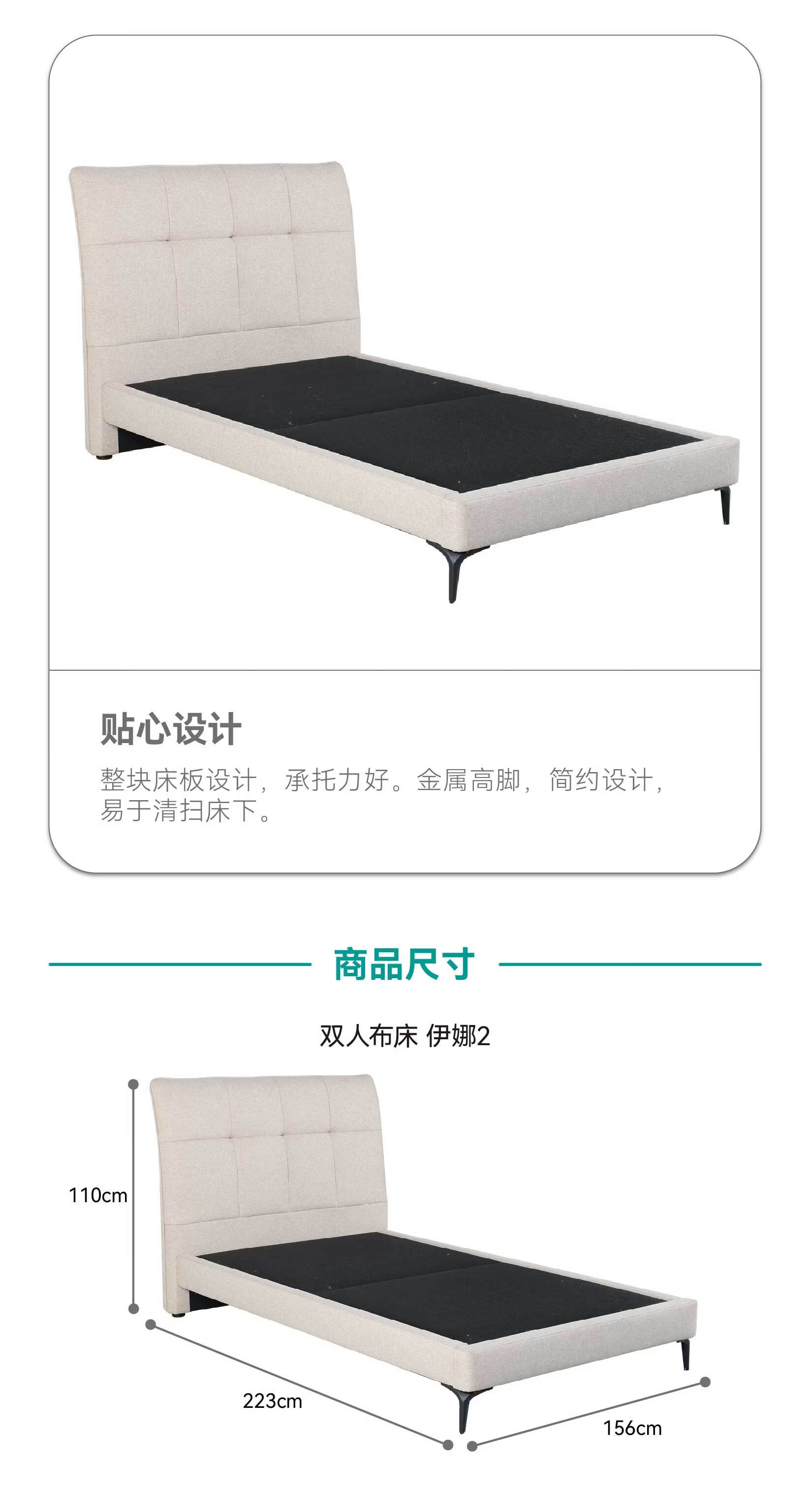 【家具】卧室简约软包布艺床 伊娜2