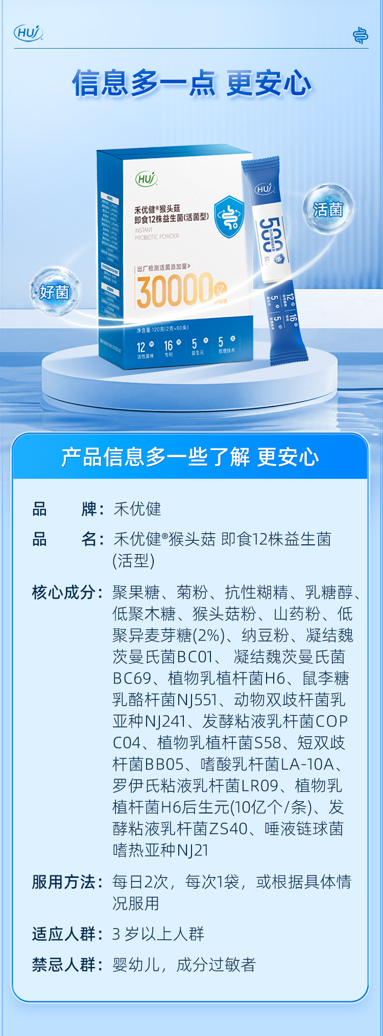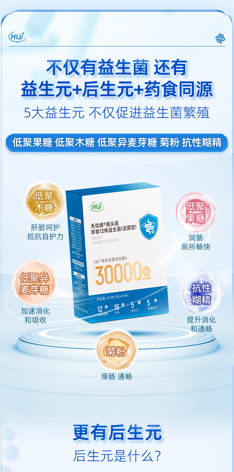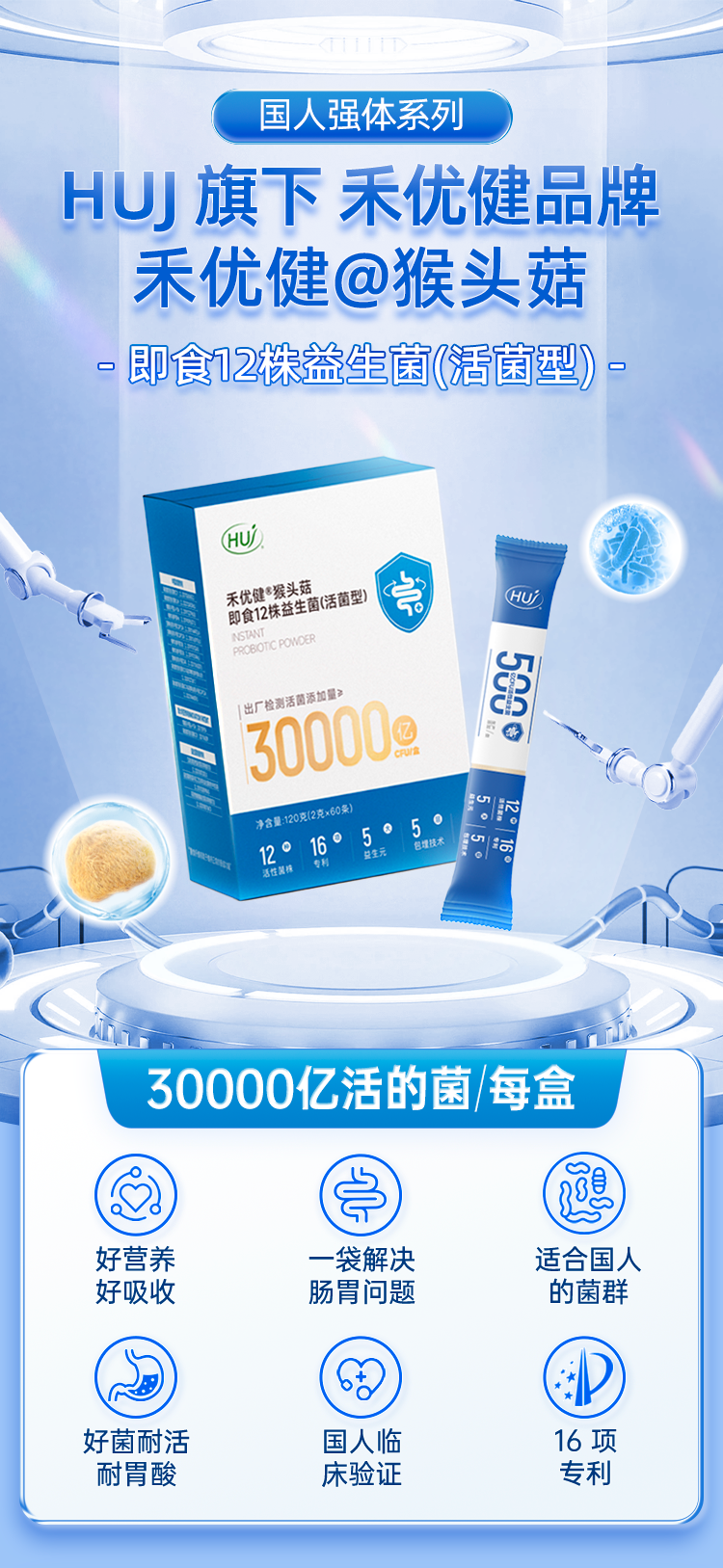 【8.31直播专享价 5大益生元】HUJ 猴头菇即食12株益生菌 2g*60条/盒 符合国人体质临床验证
