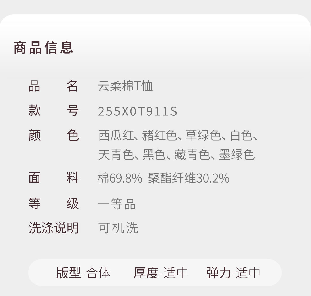 【冰锋二号】水柔新疆长绒棉5A抗菌透气吸湿T恤255X0T911S[T]
