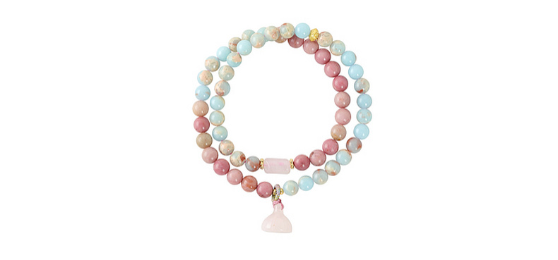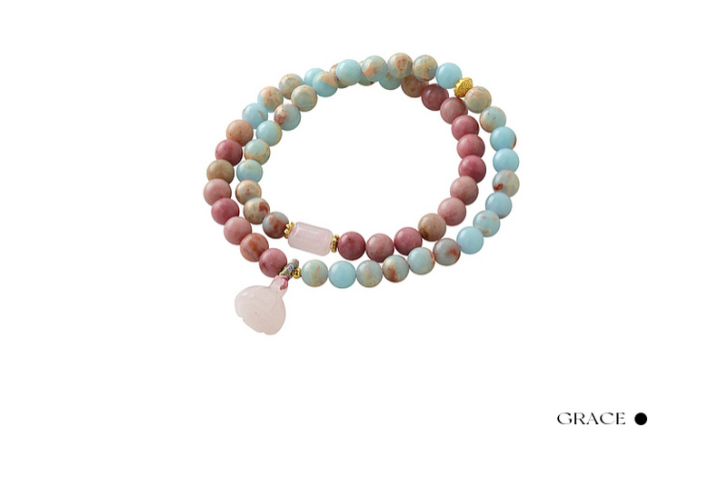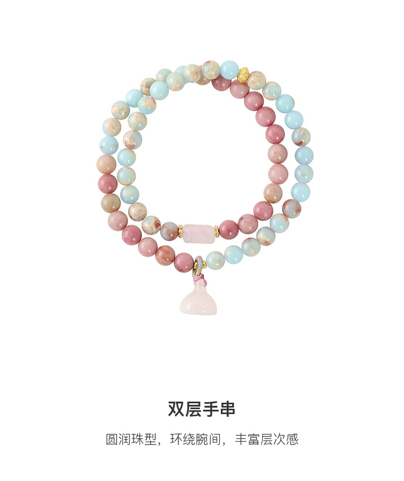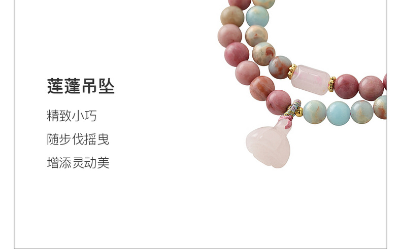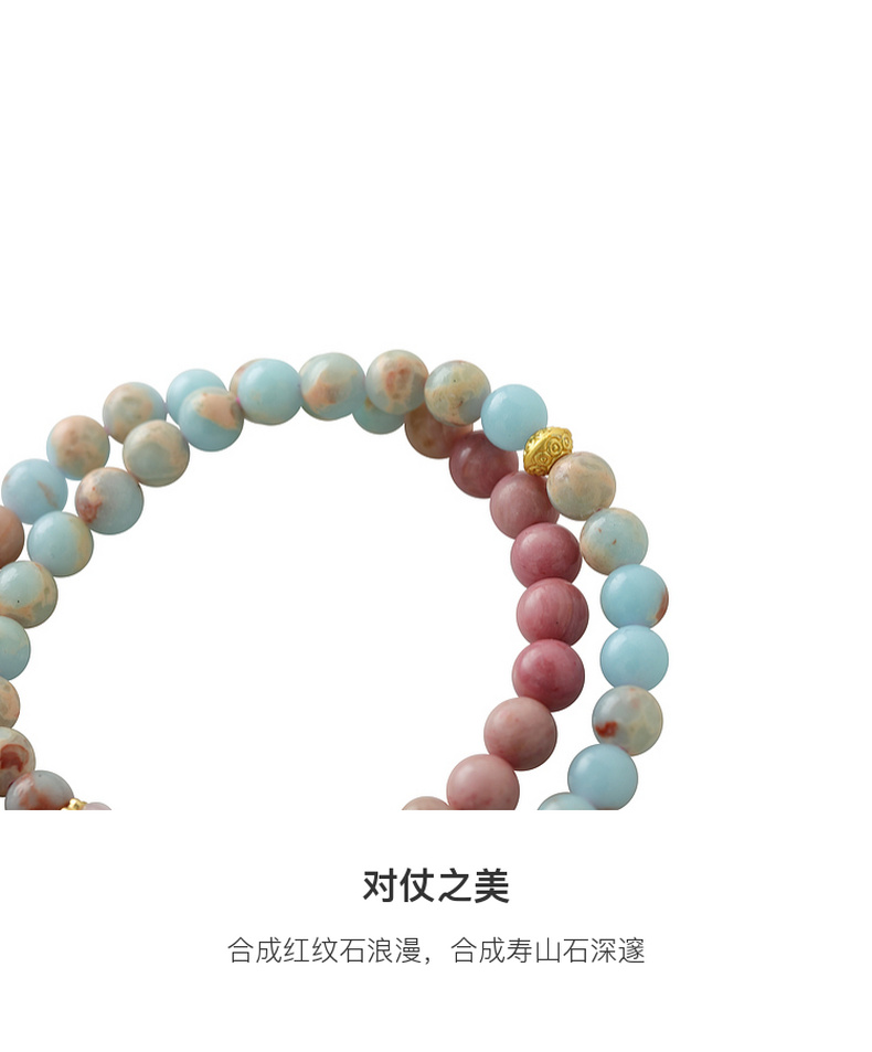 三彩2026新款新中式双层叠戴合成寿山石红纹石平安莲蓬手串手链