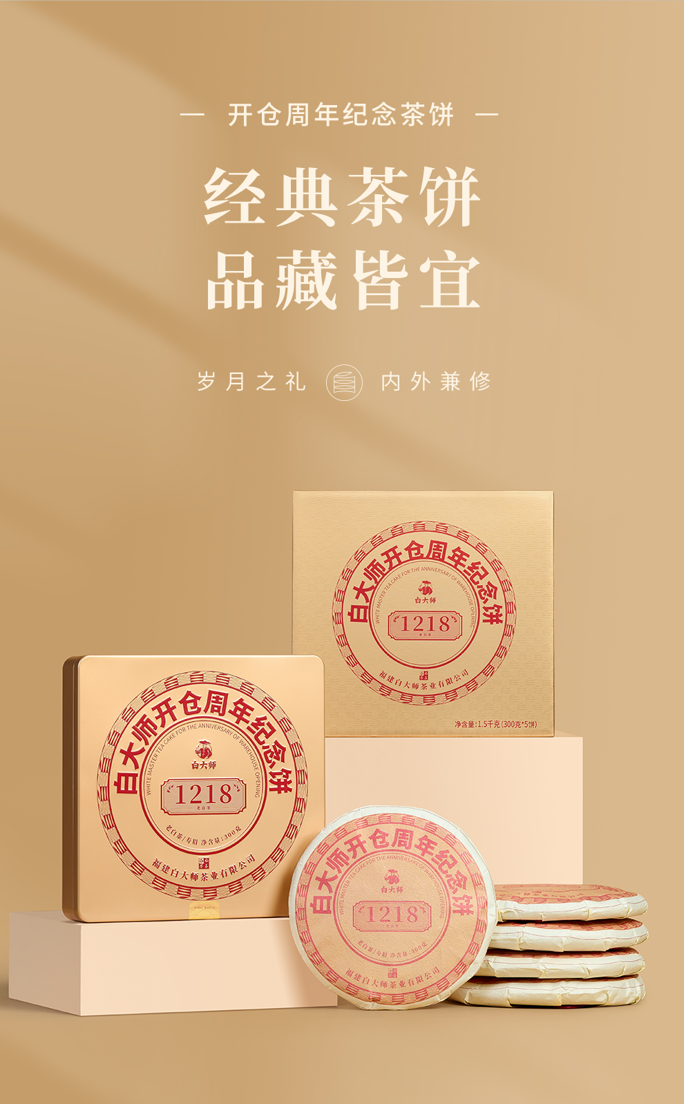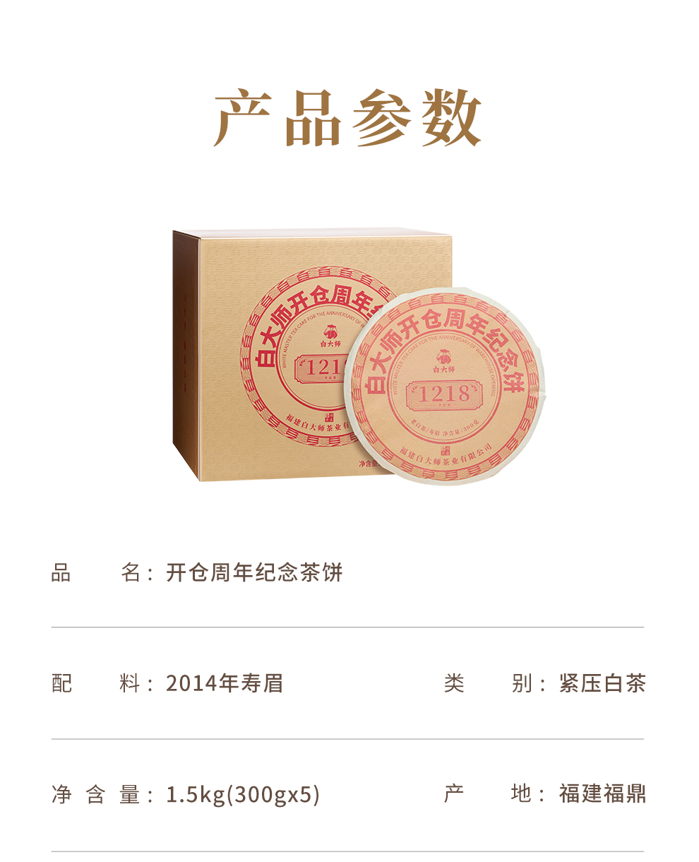 白大师福鼎白茶正宗高山开仓纪念2014年寿眉茶饼送礼盒5饼装1500g