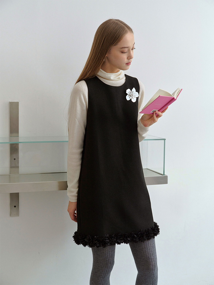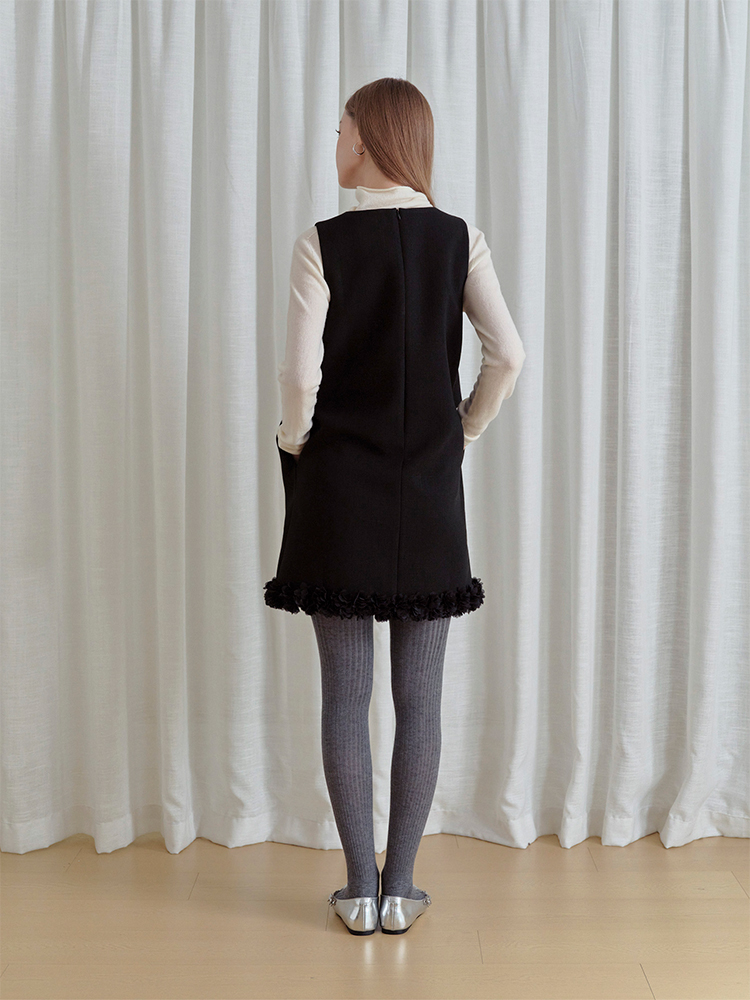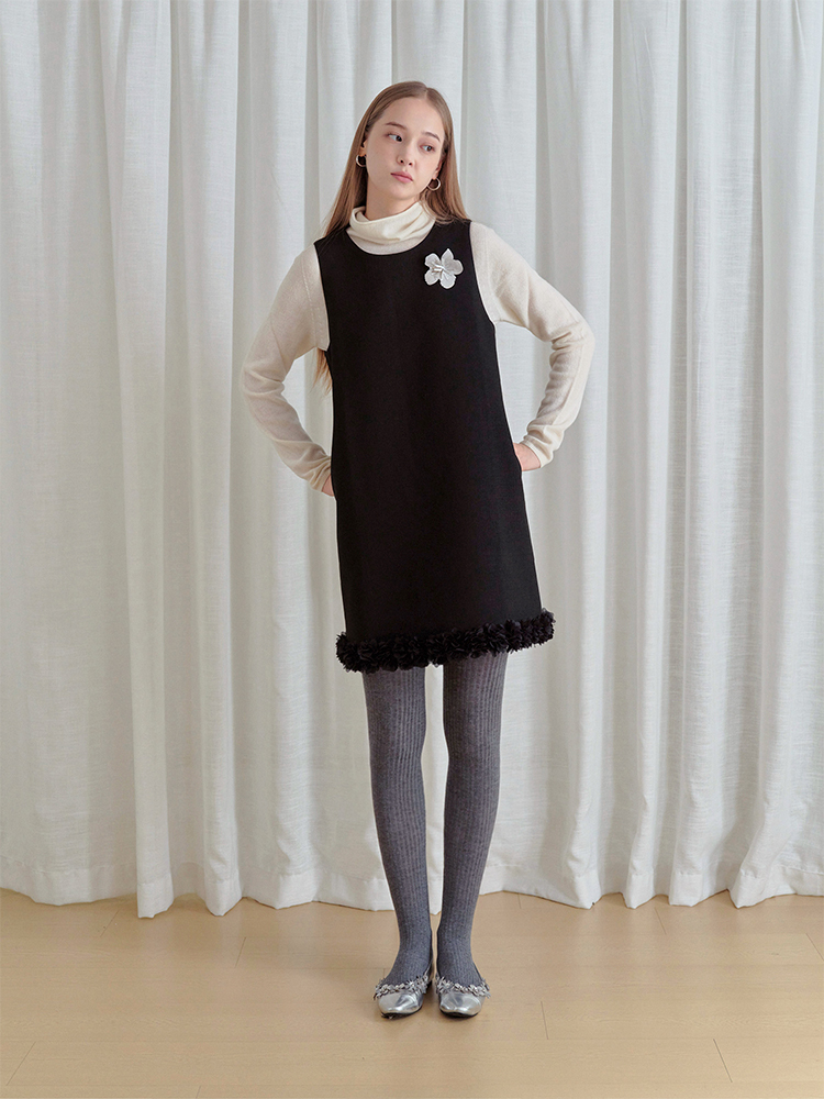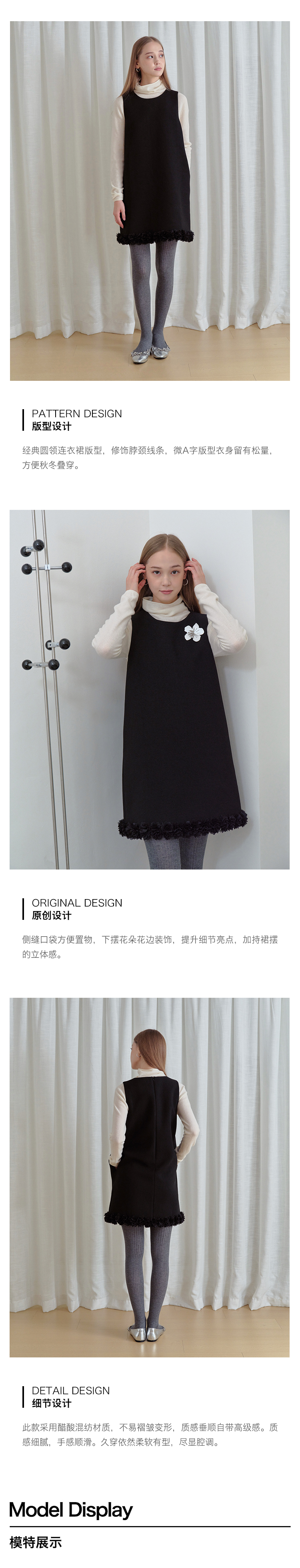 ForPoem 现货 25/FW原创设计圆领醋酸花边底摆背心连衣裙