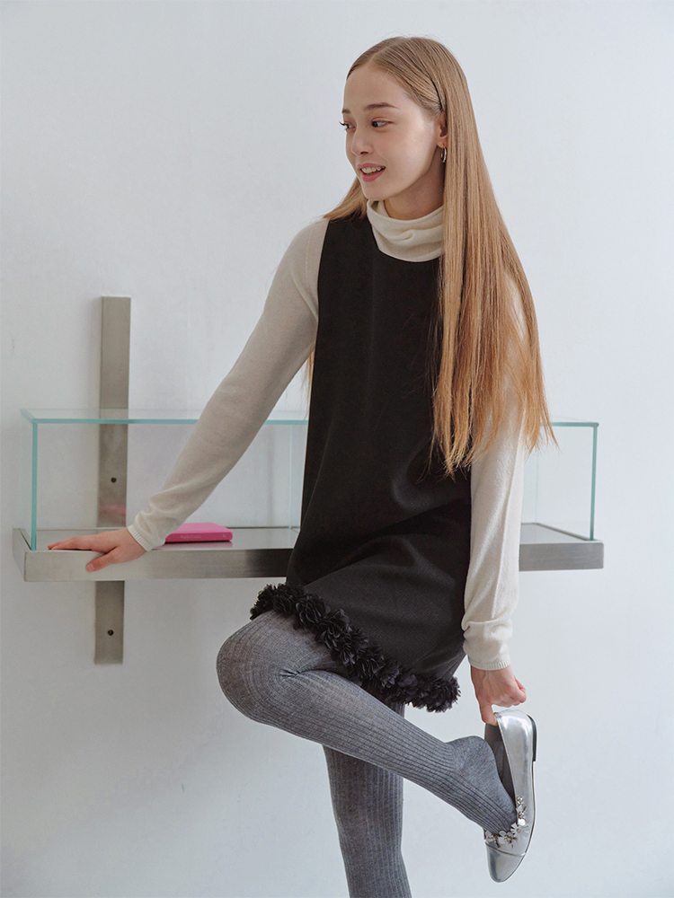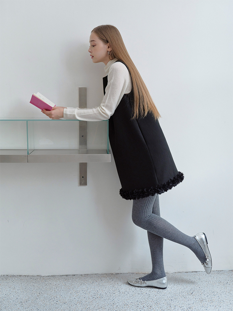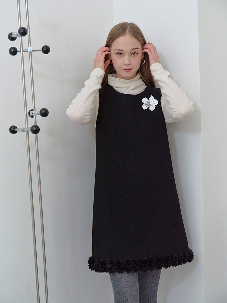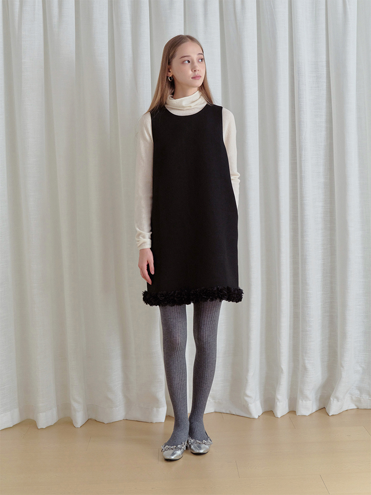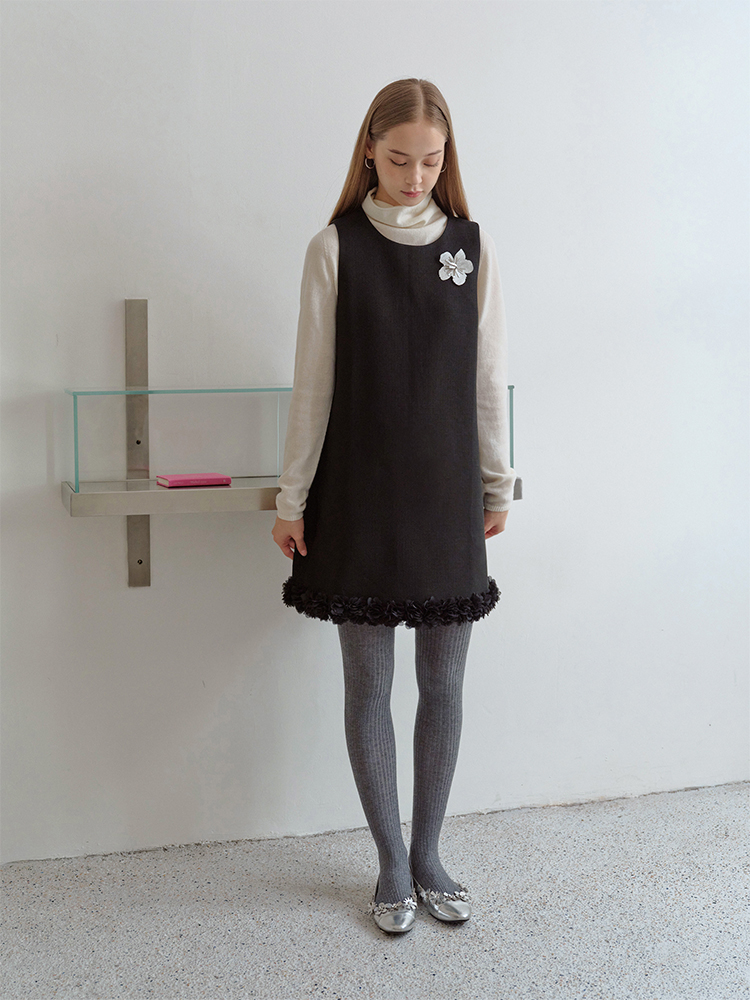 ForPoem 现货 25/FW原创设计圆领醋酸花边底摆背心连衣裙