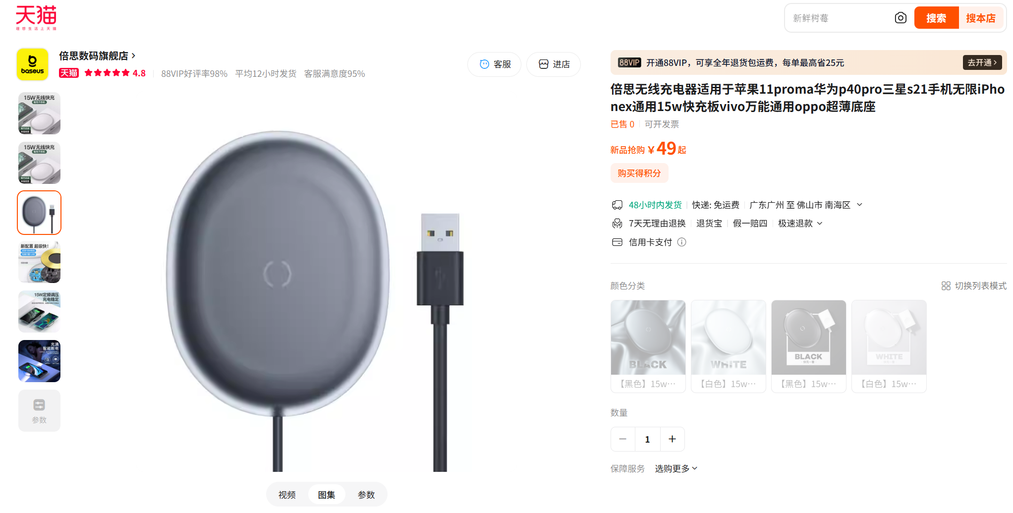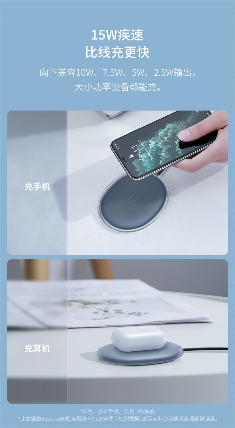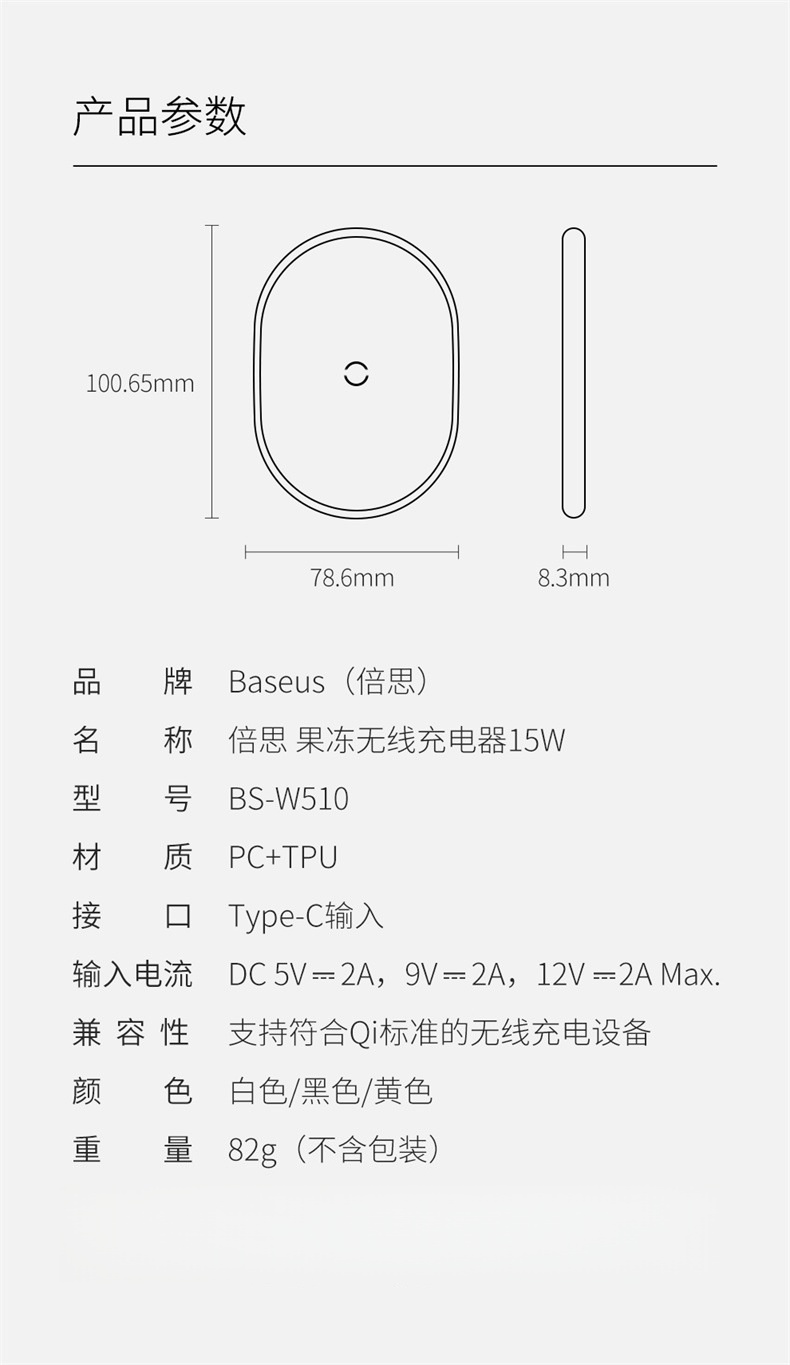 Baseus/倍思 15W果冻无线充电器 BS-W510 Type-C接口 轻薄便携美观