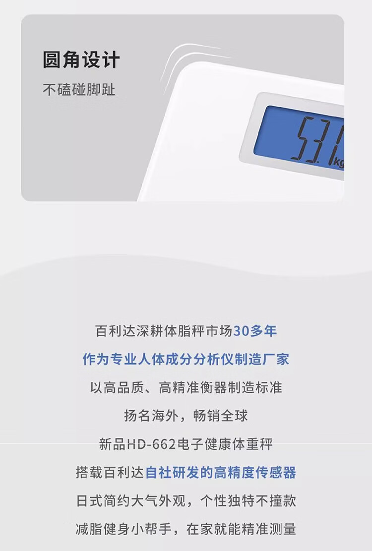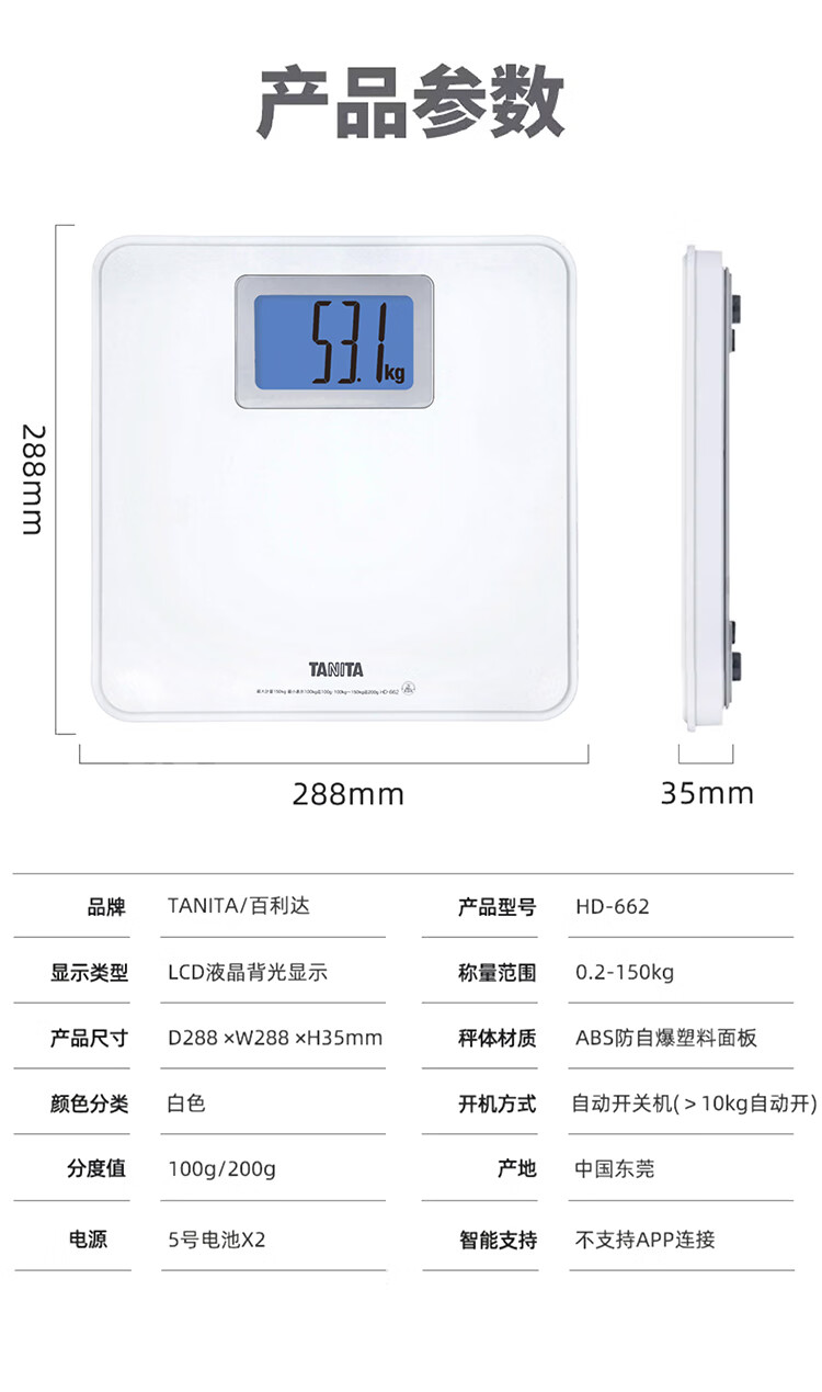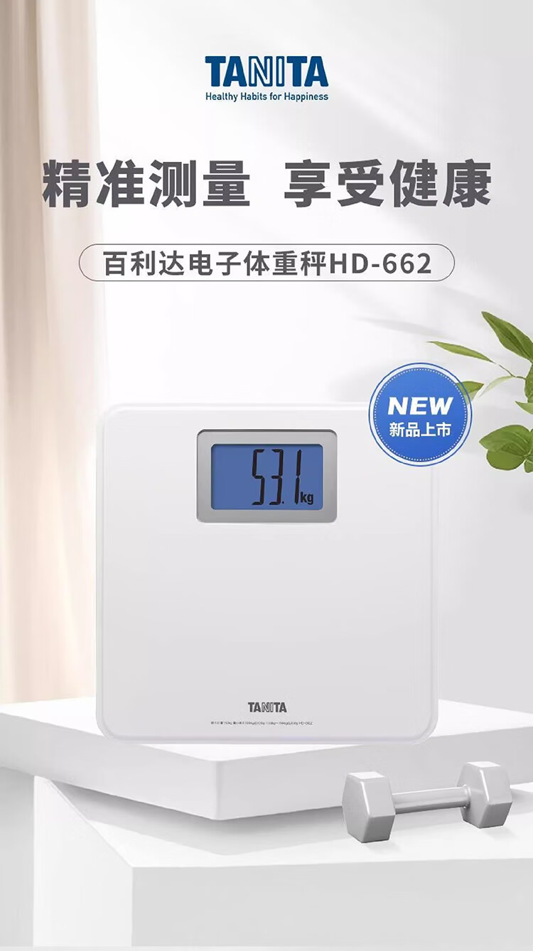 百利达(TANITA)新品HD-662电子秤人体秤家用精准减肥用日本品牌健康_MW