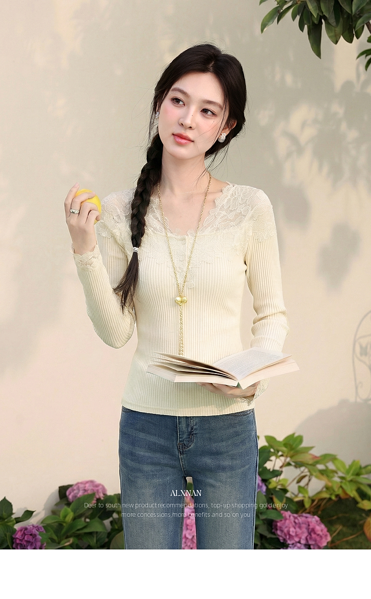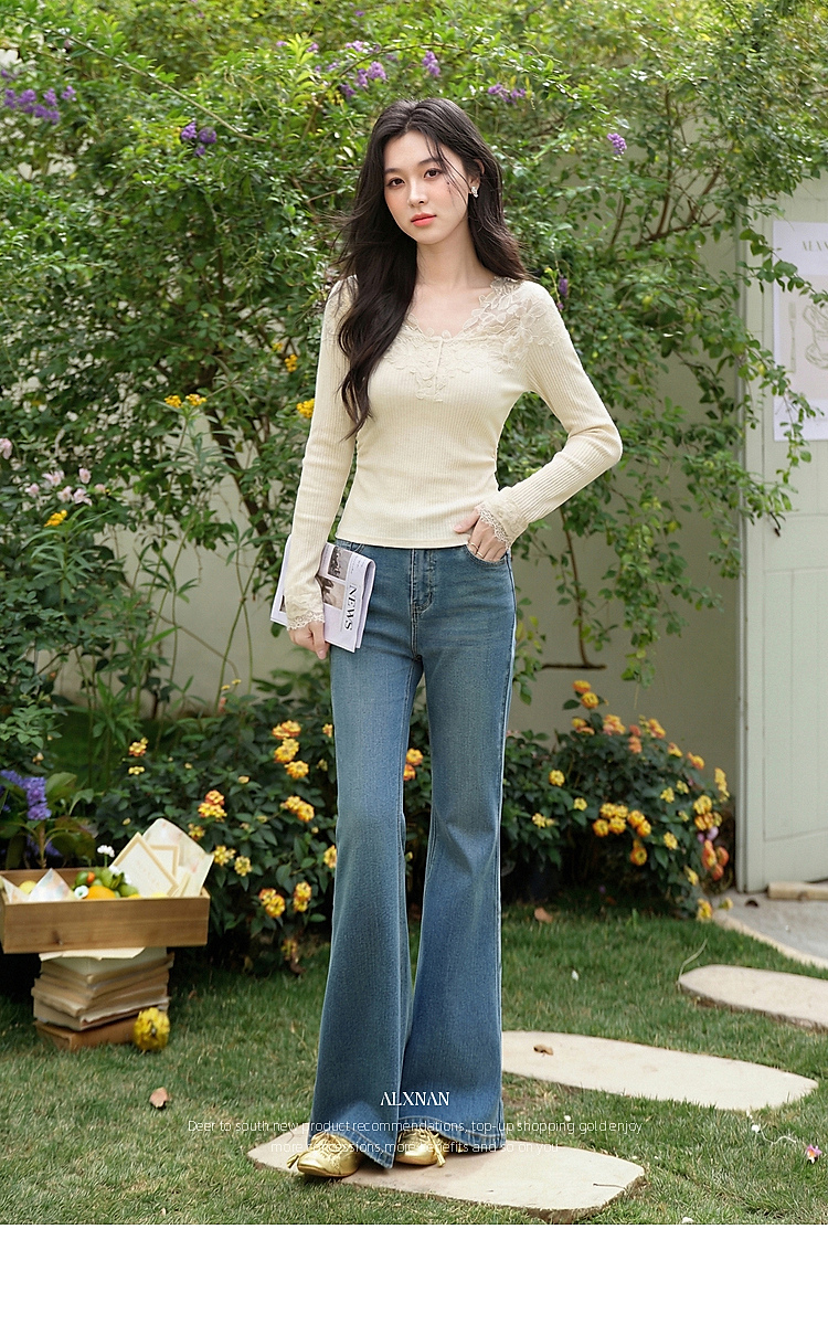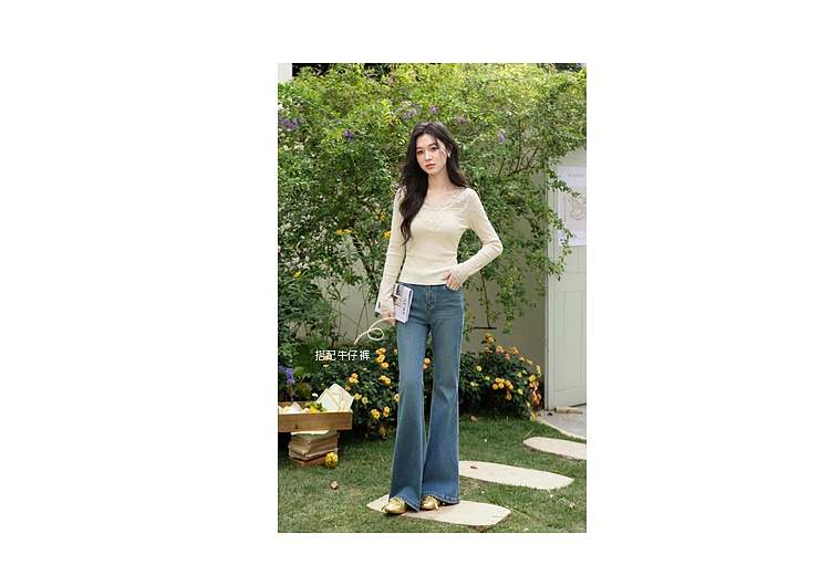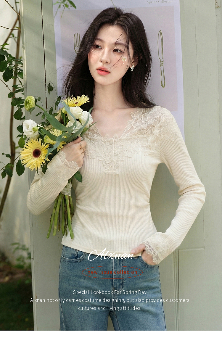 鹿向南「温柔花漾」杏色长袖T恤春季新款时尚短款收腰内搭上衣女