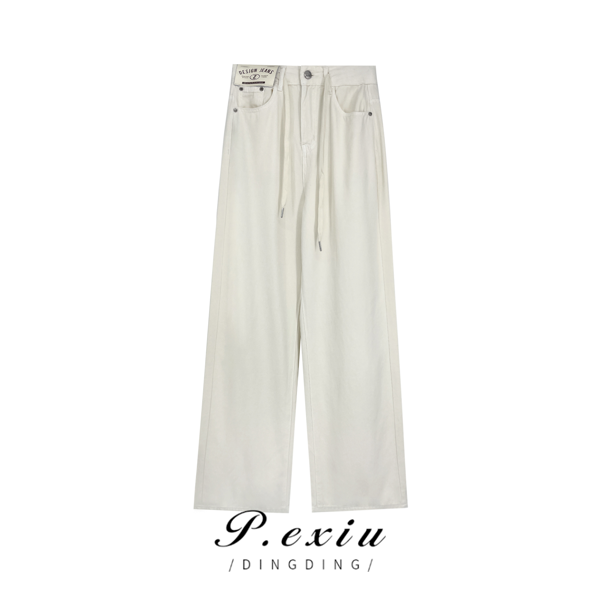 04-1潘依绣丁丁宠粉夏季新款水洗抽绳休闲百搭直筒牛仔长裤 20112