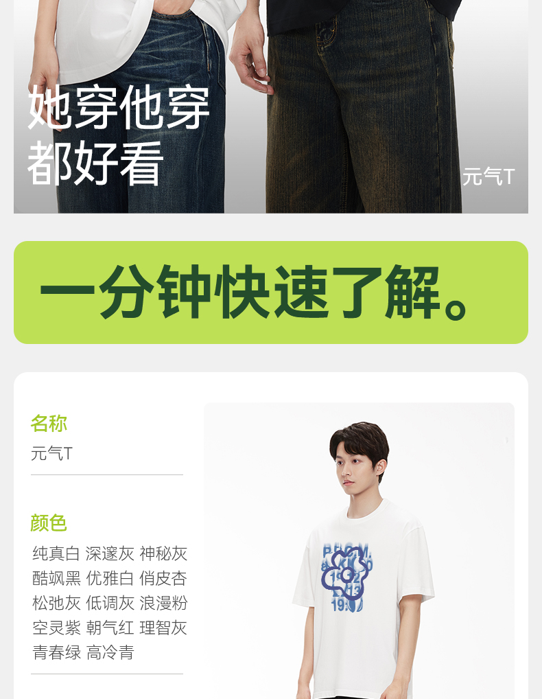 「棉的美学」潮牌多巴胺纯色短袖休闲重磅T恤女印花ins百搭宽松衣服