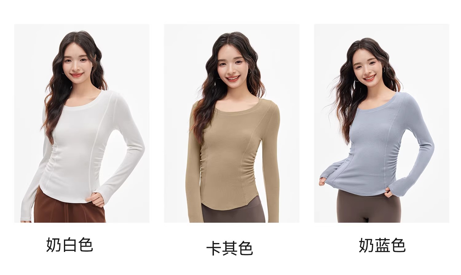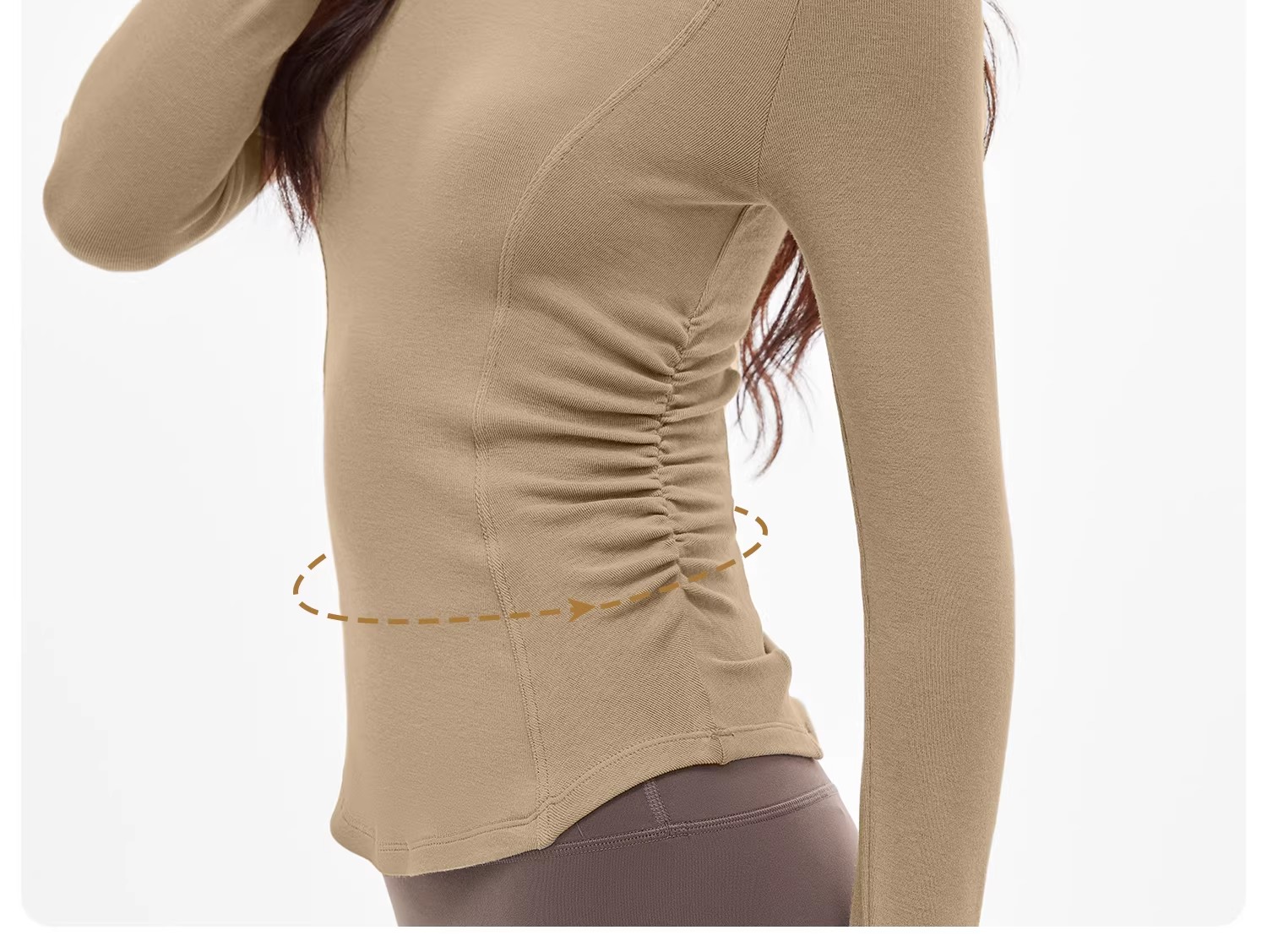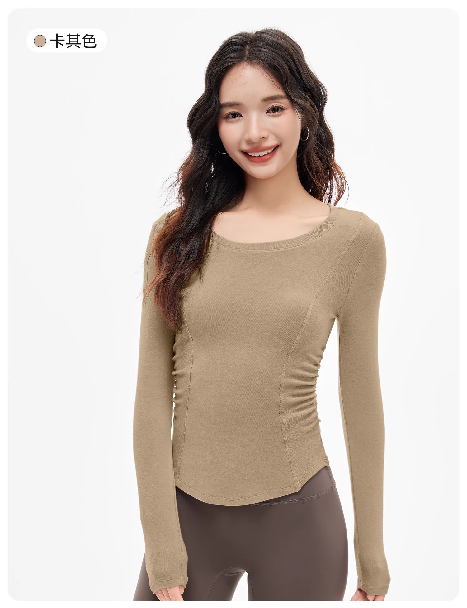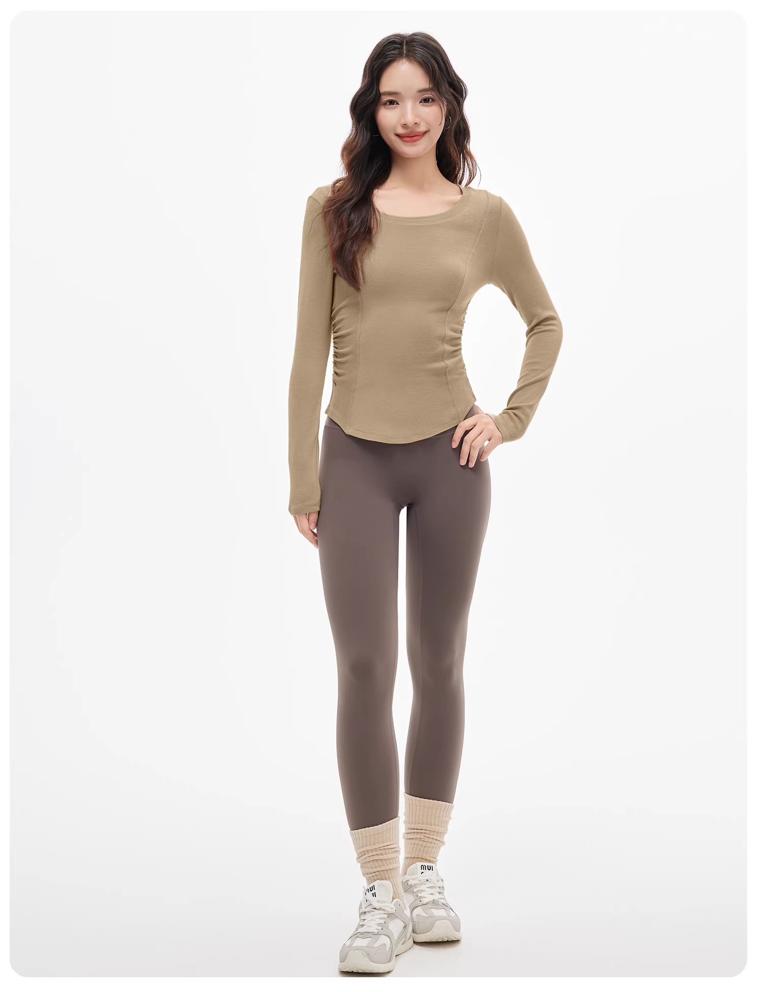 【Neverme】柔软缩褶修身瑜伽长袖ST6980
