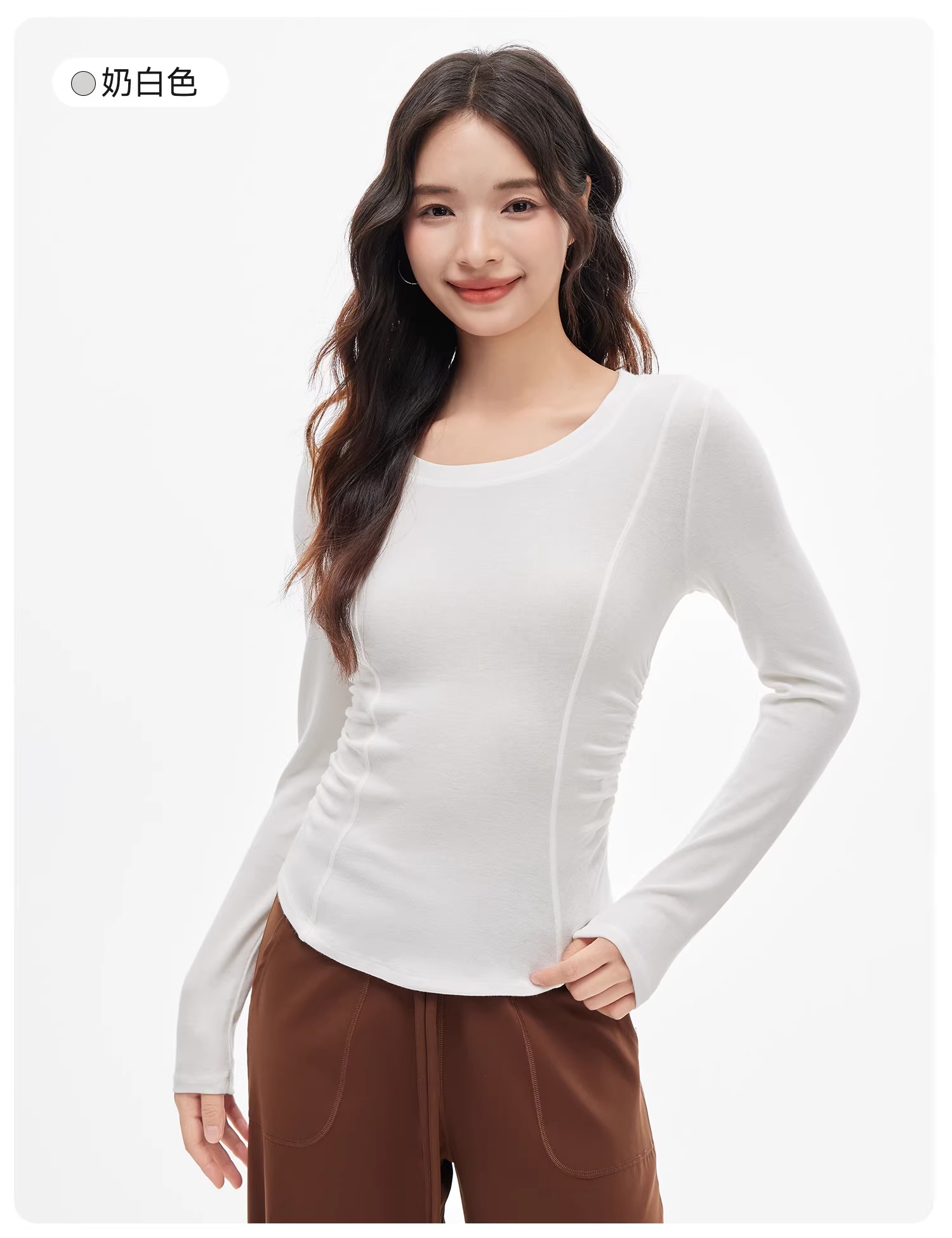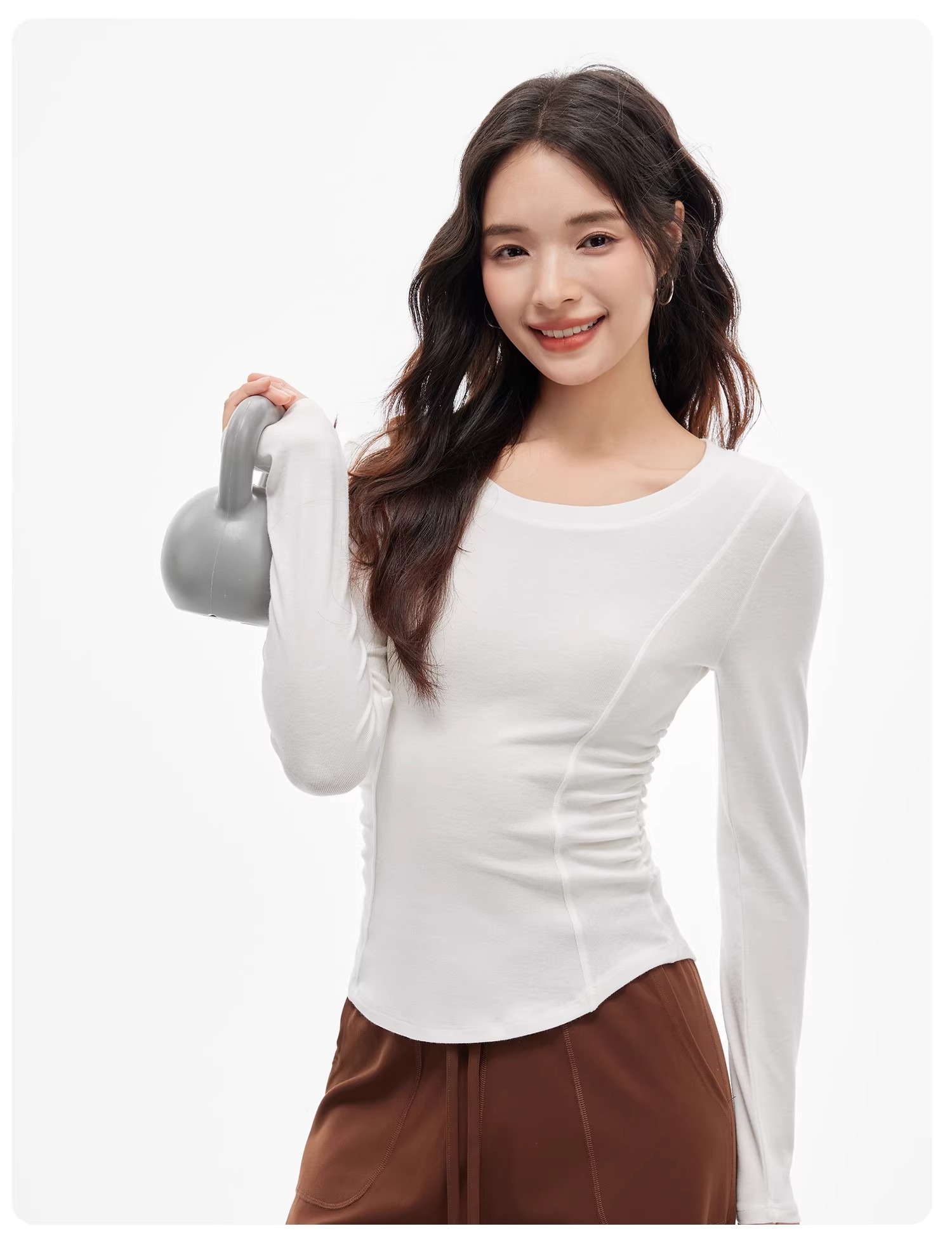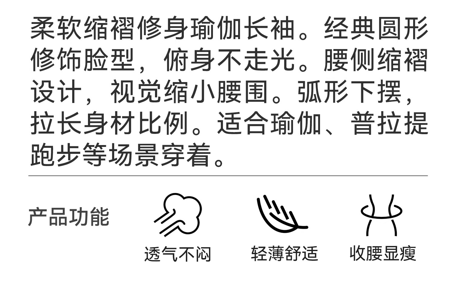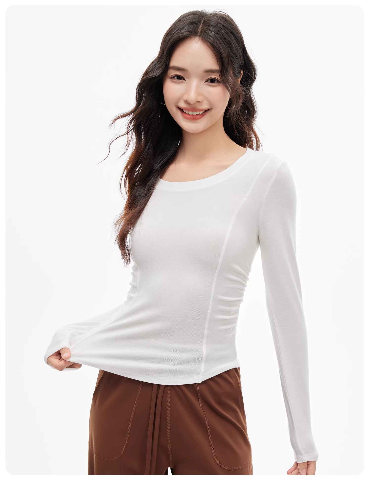 【Neverme】柔软缩褶修身瑜伽长袖ST6980
