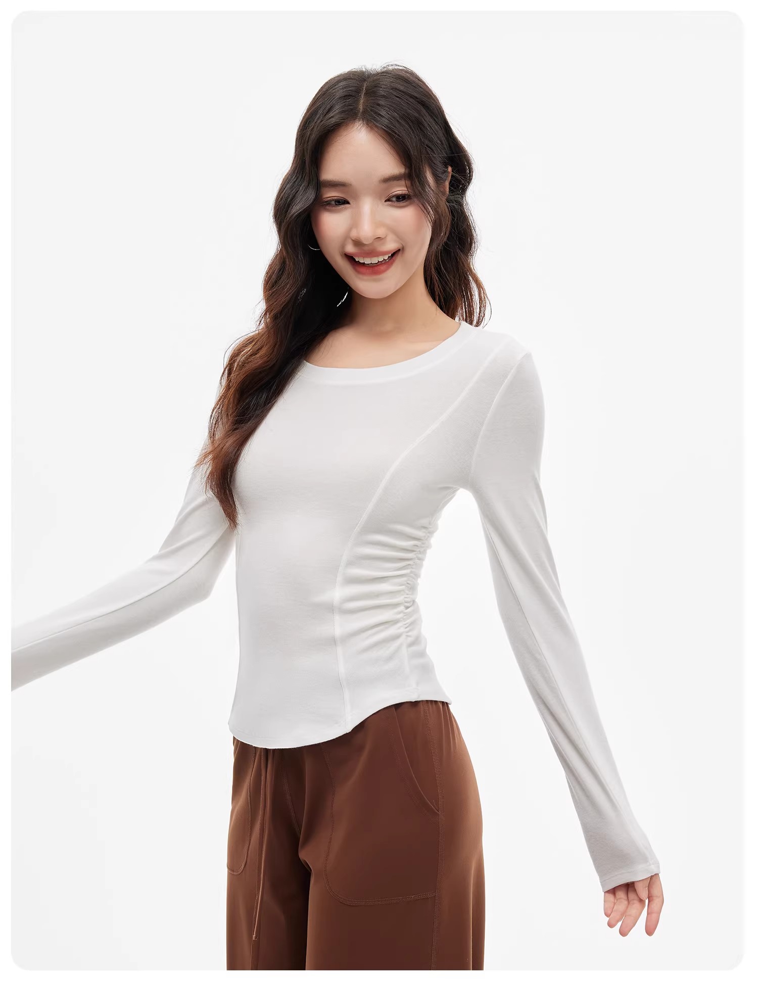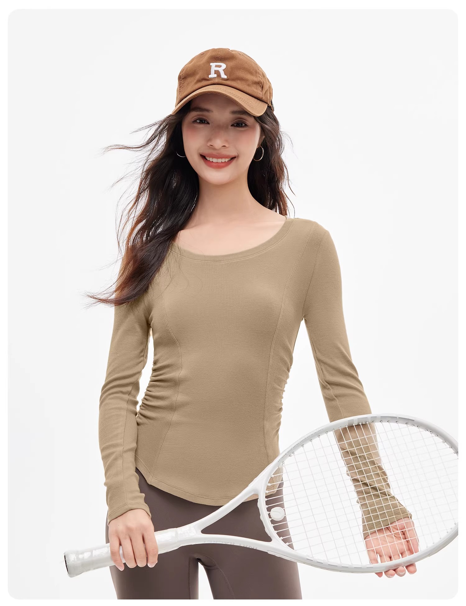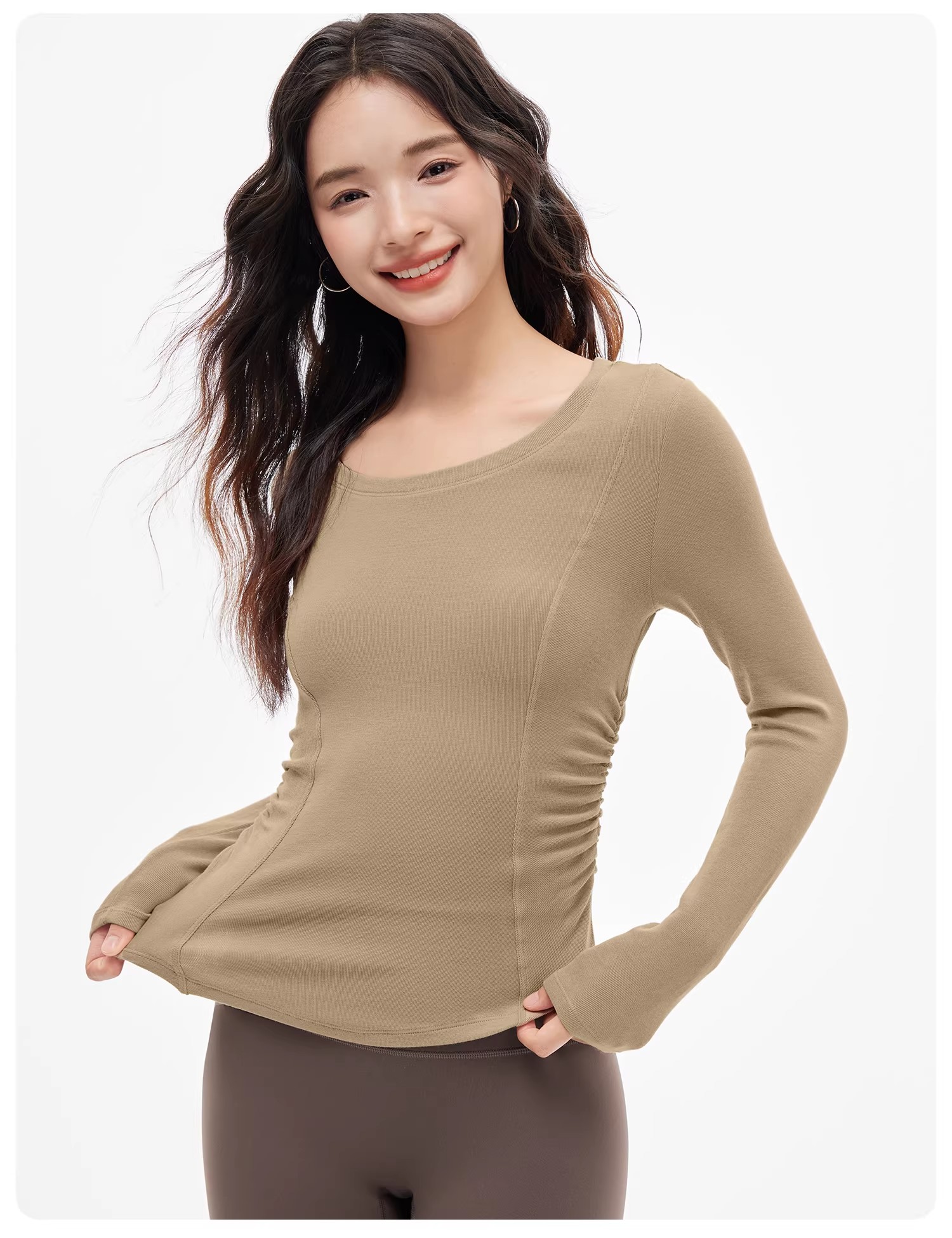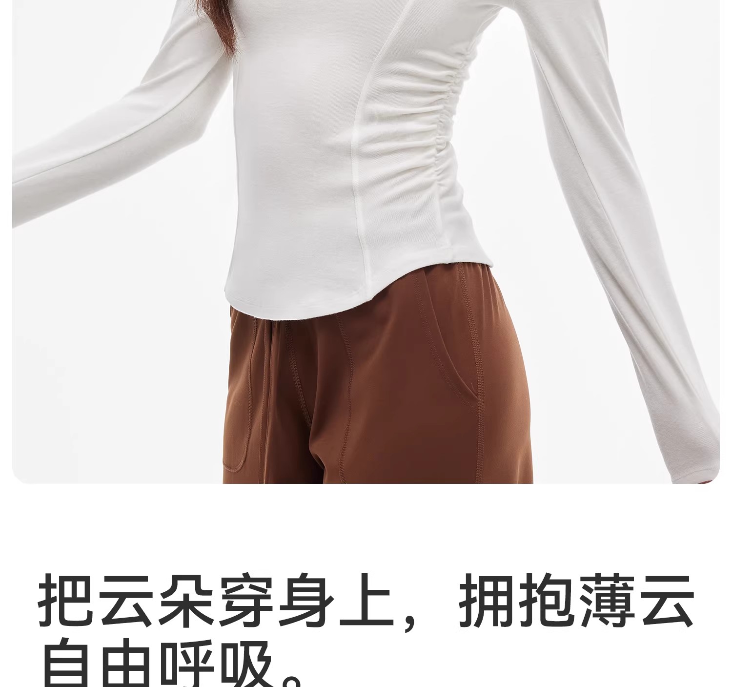 【Neverme】柔软缩褶修身瑜伽长袖ST6980