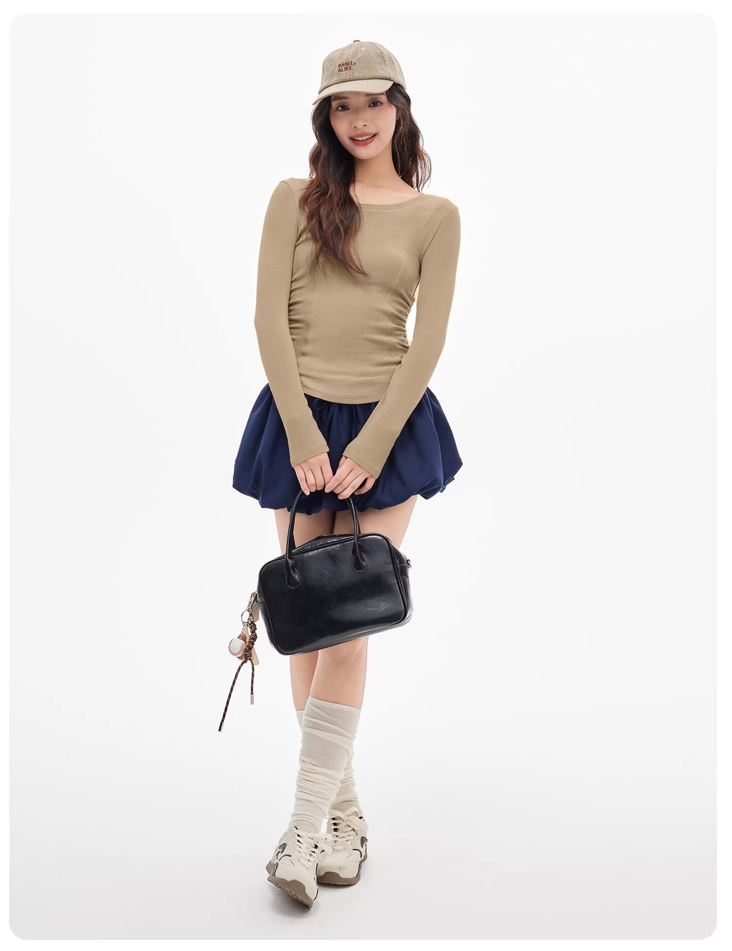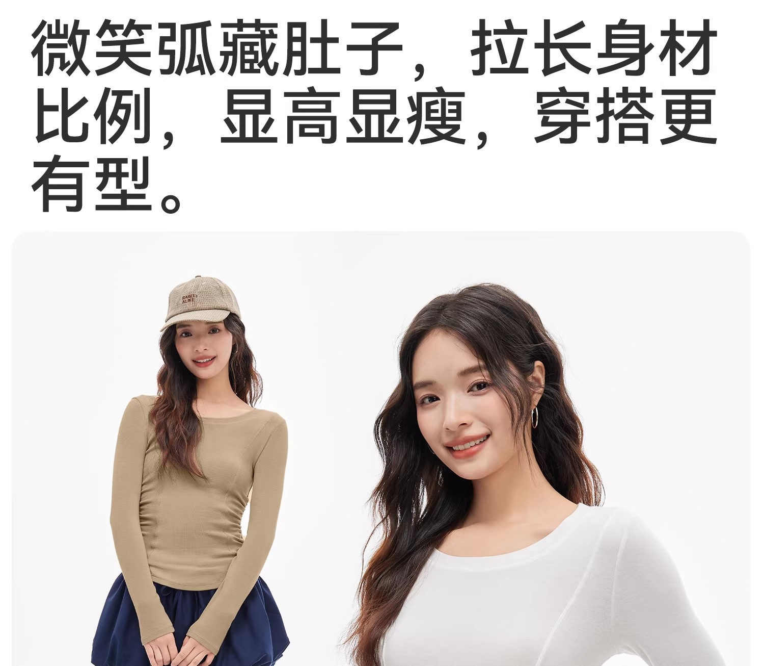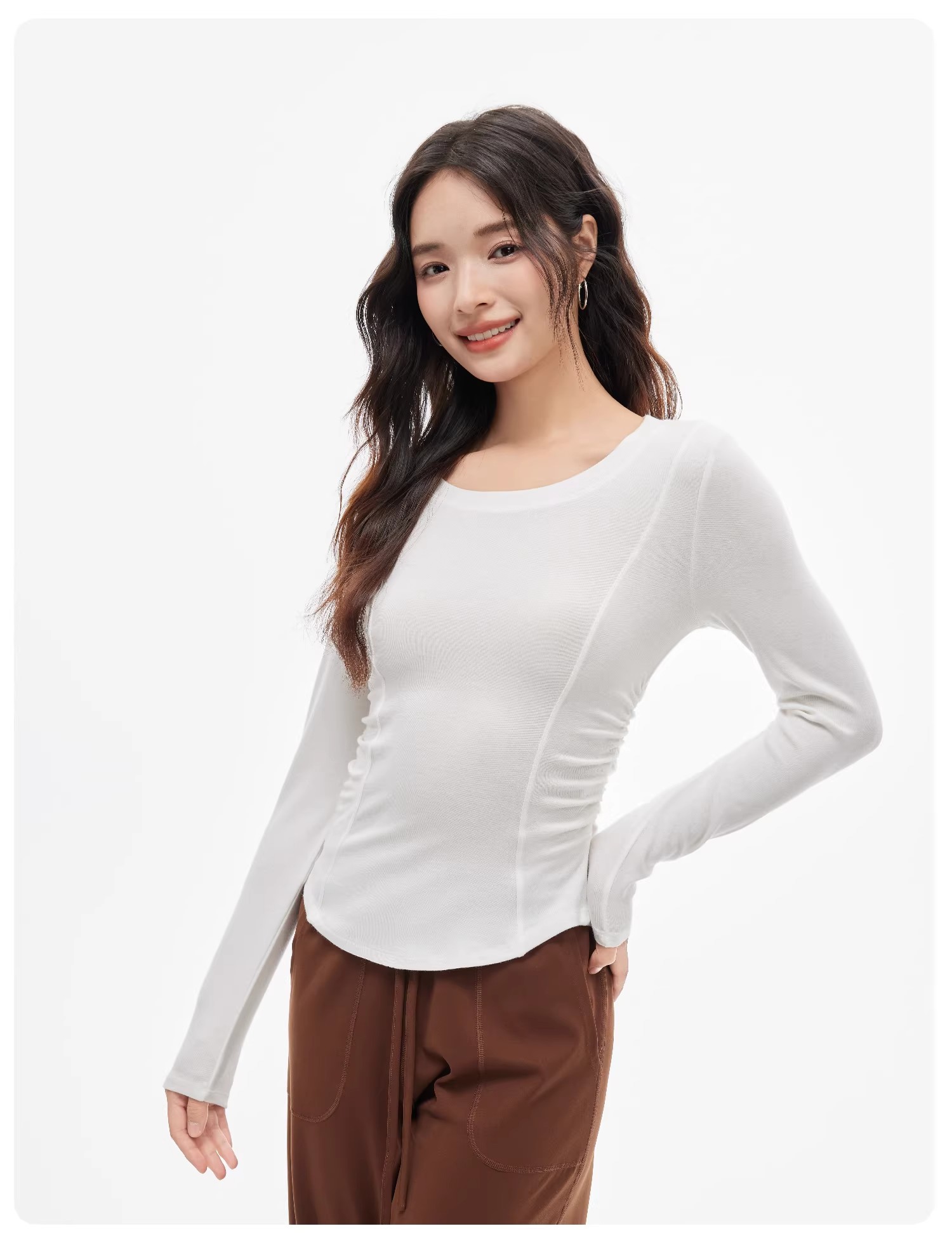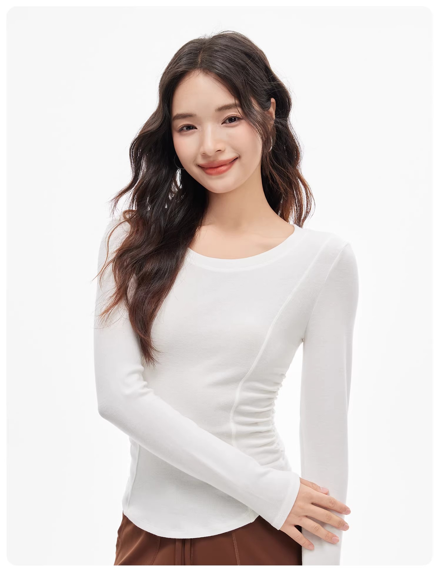 【Neverme】柔软缩褶修身瑜伽长袖ST6980
