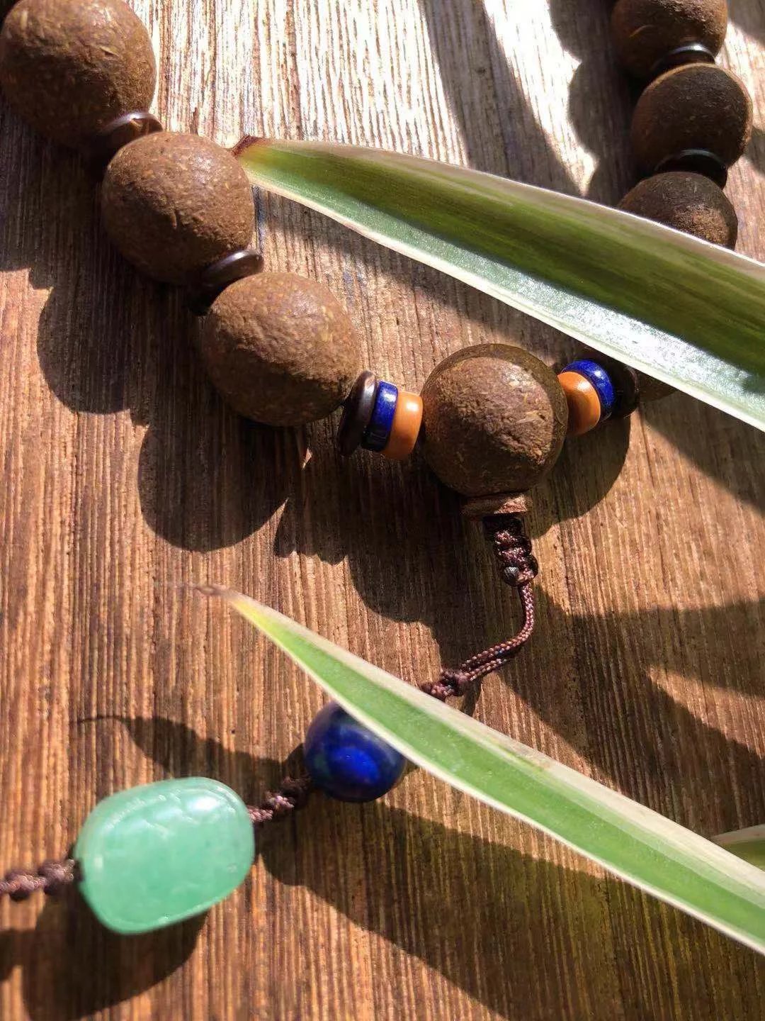 配珠则由天然阿富汗青金石担当,隔片为椰壳和橄榄核,背云是天然青金石和东陵玉富甲天下雕件,弟子珠为天然翡翠。
